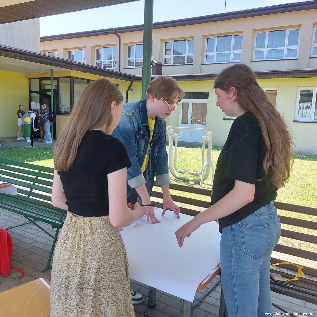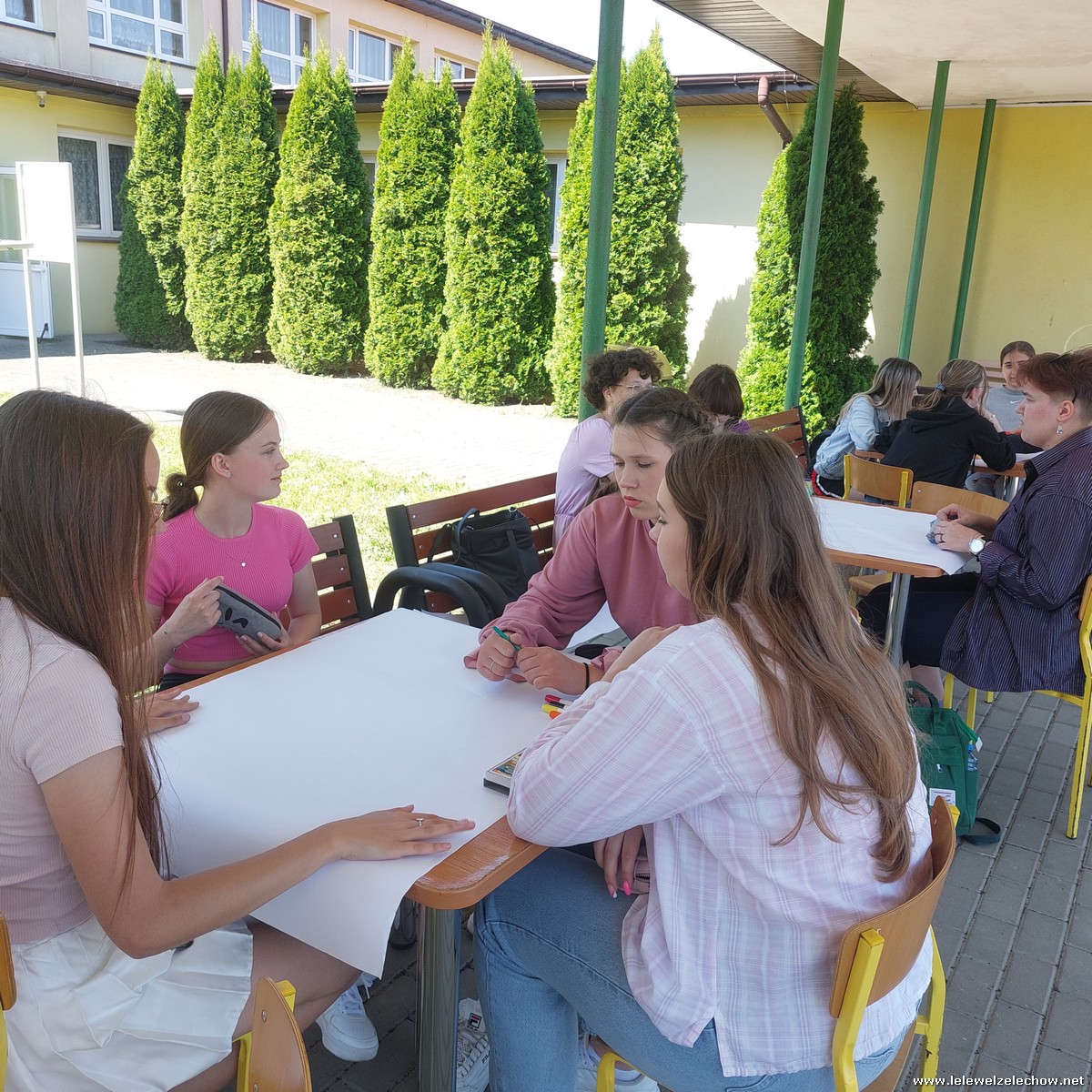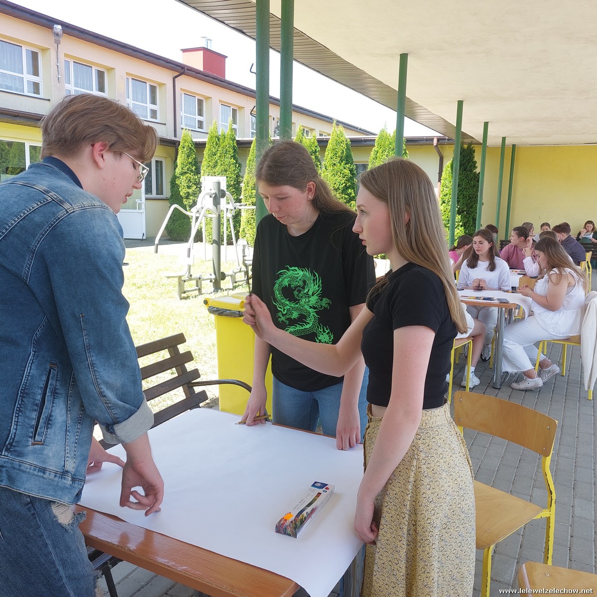 W międzyczasie zorganizowany został quiz o szkole, w którym uczniowie musieli wykazać się dużą spostrzegawczością, a kilkuosobowe grupy wykonywały plakaty - projekty muralu szkolnego.
