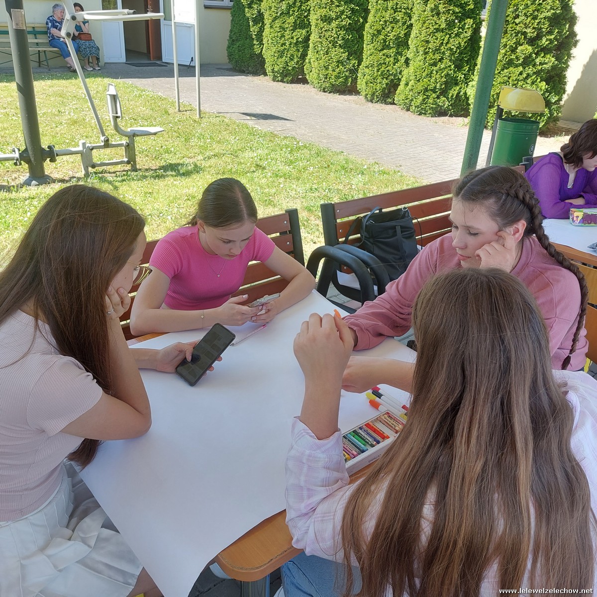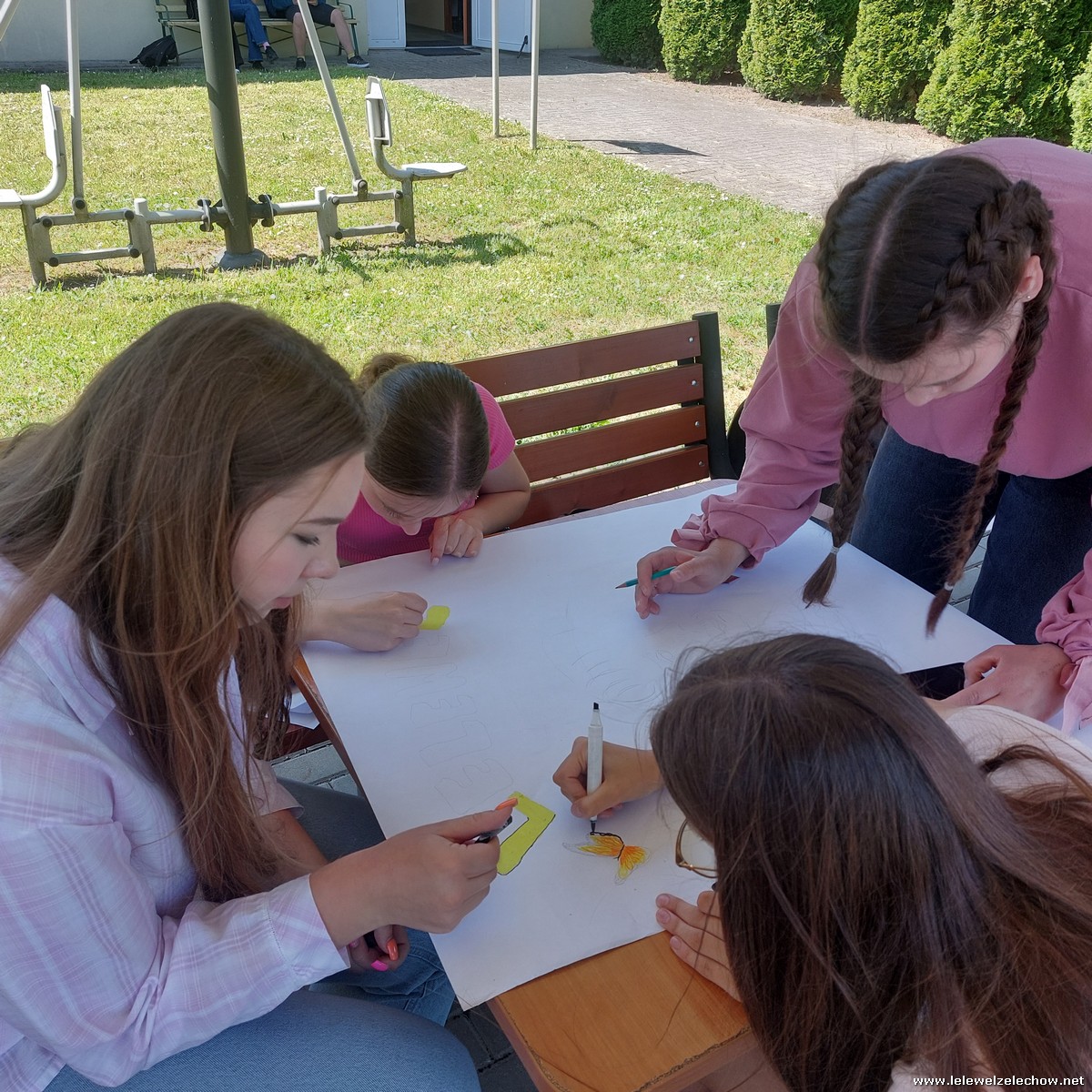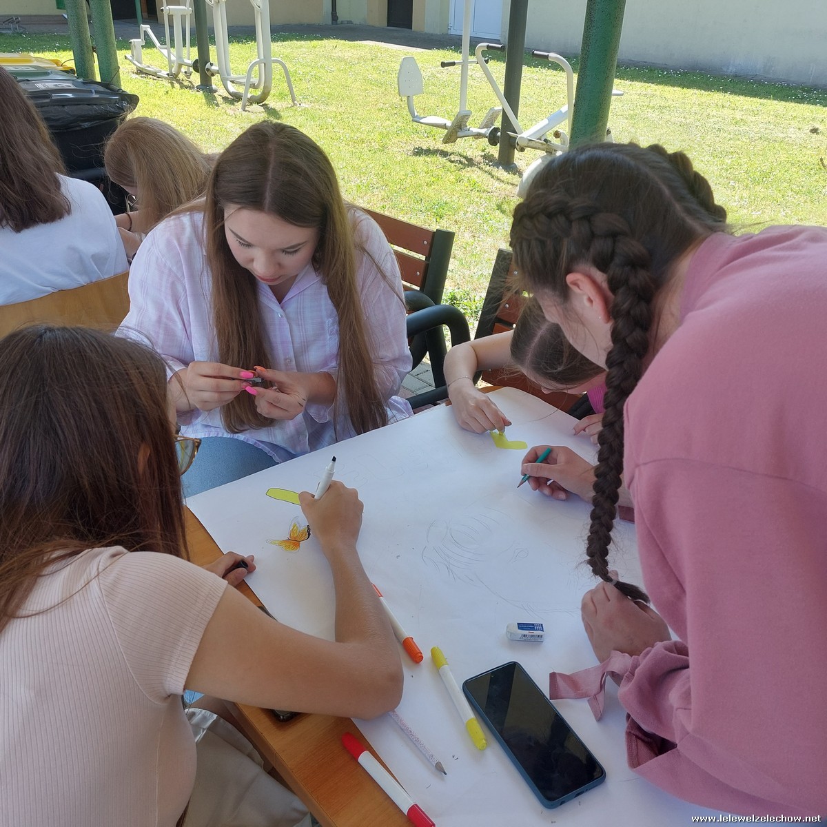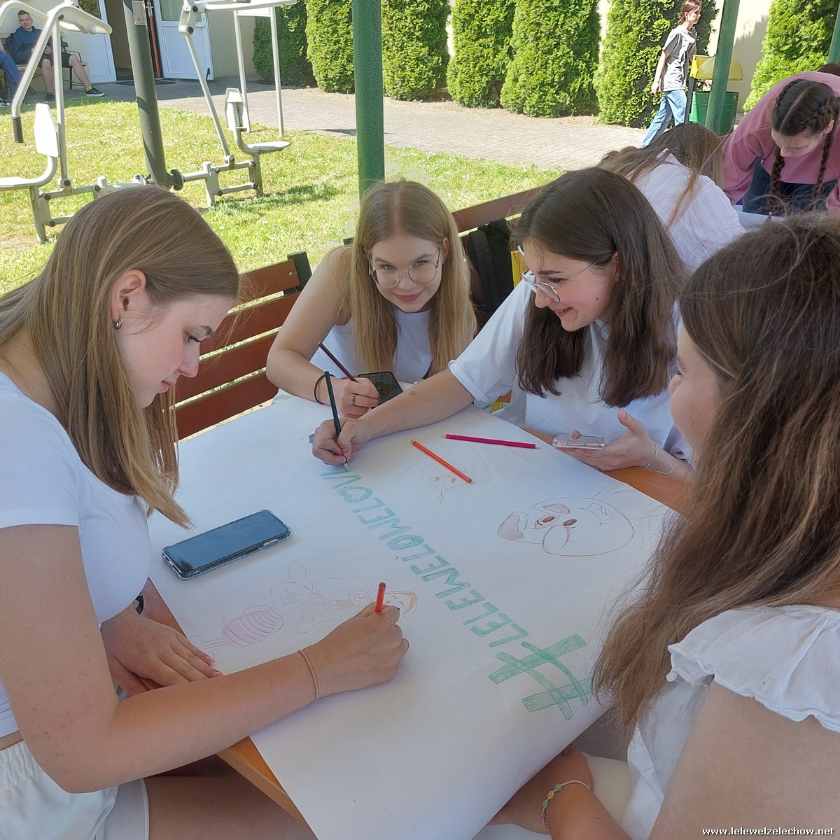 W międzyczasie zorganizowany został quiz o szkole, w którym uczniowie musieli wykazać się dużą spostrzegawczością, a kilkuosobowe grupy wykonywały plakaty - projekty muralu szkolnego.