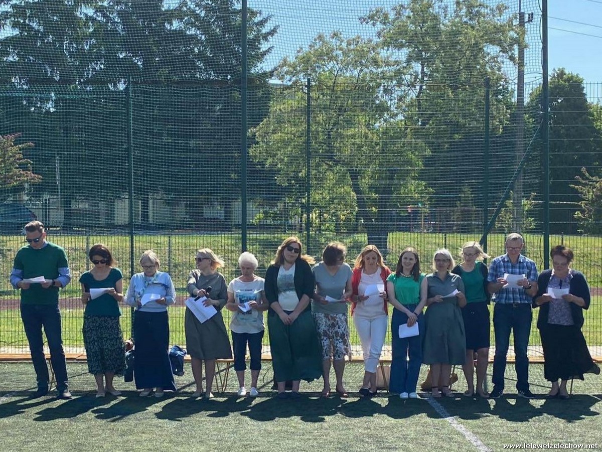 Niespodzianką okazał się występ kadry i pracowników szkoły, którzy odczytali wiersz ,,Na straganie" Jana Brzechwy. Uczniowie podziękowali kadrze zasłużonymi, gromkimi brawami.