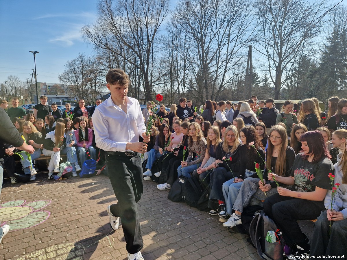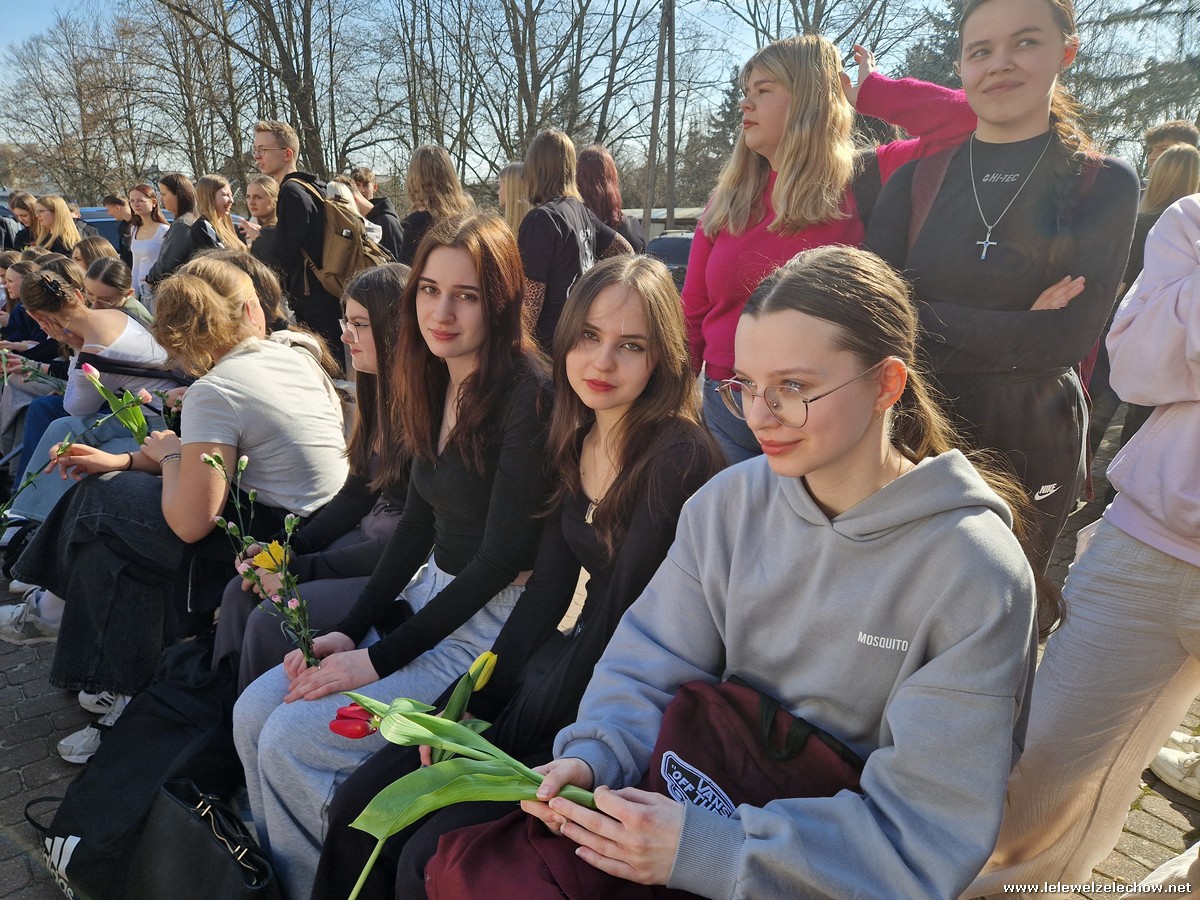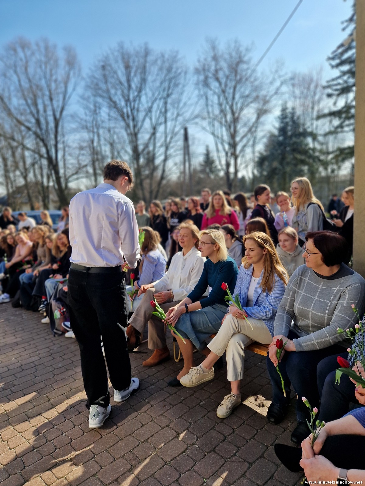 10 marca w naszym liceum obchodziliśmy święto wszystkich Pań, tradycyjny Dzień Kobiet. Wszyscy zgromadzeni na placu szkolnym chłopcy przywitali wchodzące dziewczęta gromkim 100 lat! a następnie rozdali kwiatyi złożyli życzenia.