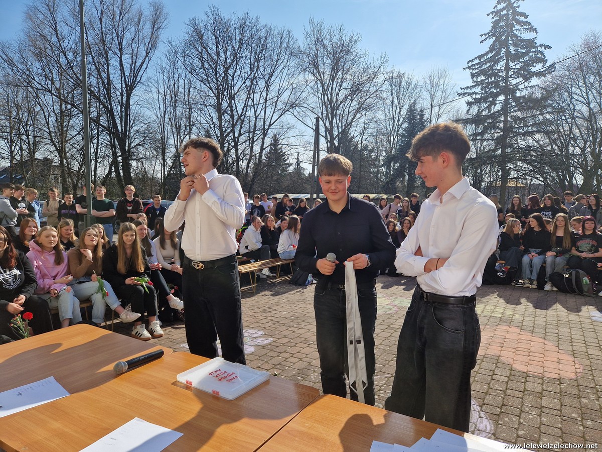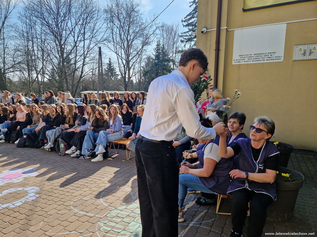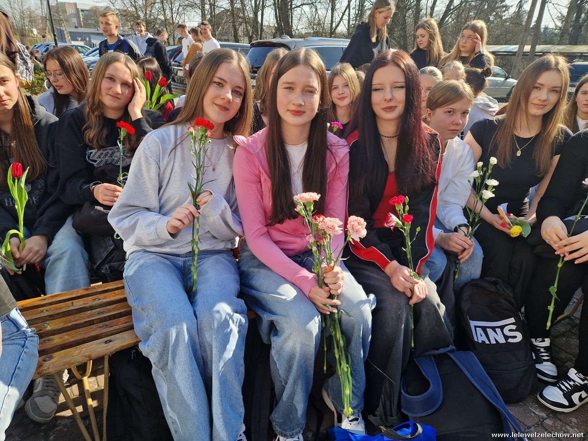 10 marca w naszym liceum obchodziliśmy święto wszystkich Pań, tradycyjny Dzień Kobiet. Wszyscy zgromadzeni na placu szkolnym chłopcy przywitali wchodzące dziewczęta gromkim 100 lat! a następnie rozdali kwiatyi złożyli życzenia.