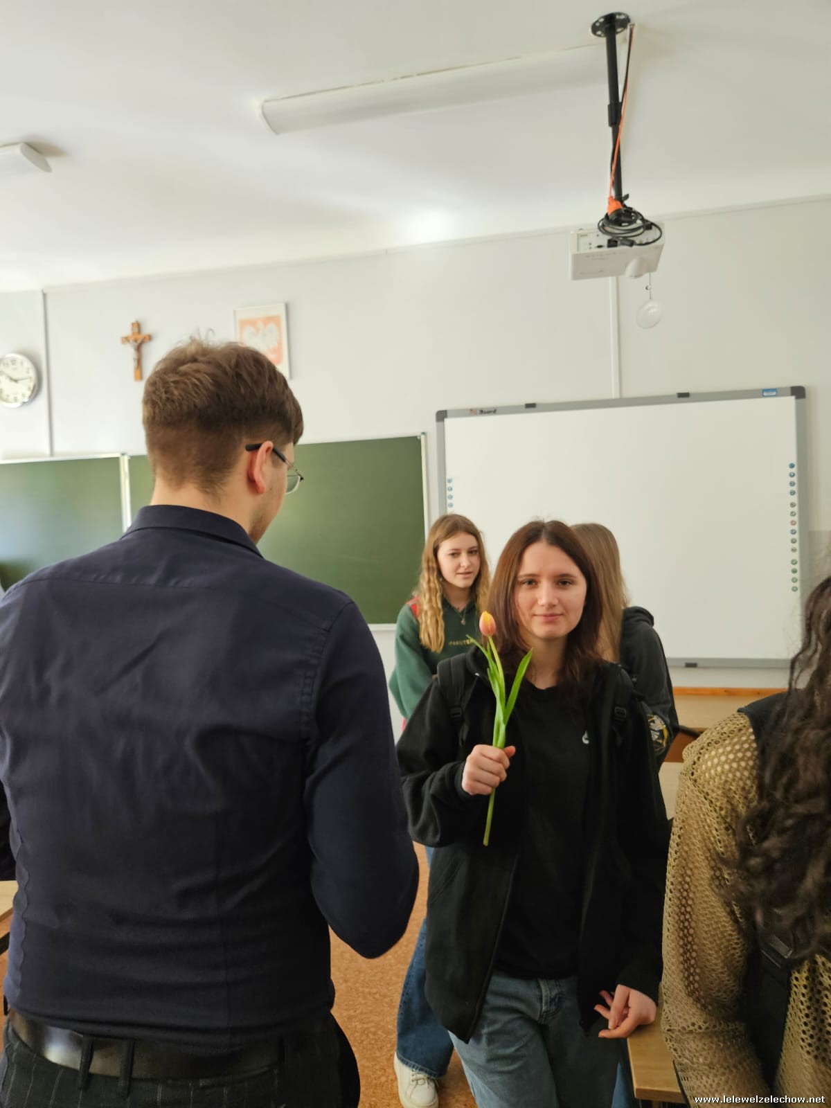 Każda kobieta zasługuje, aby docenić ją codziennie, nie tylko od święta, ale miłe słowa i gesty przyjmuje zawsze z wielką radością. Tak właśnie było dziś w ,,Lelewelu,, Chłopcy z SU zadbali aby wszystkie panie i dziewczęta otrzymały kwiaty i życzenia. Wybrano również Miss Lelewela uczennic i nauczycielek! To był bardzo sympatyczny dzień dla wszystkich! Dziękujemy Panowie!