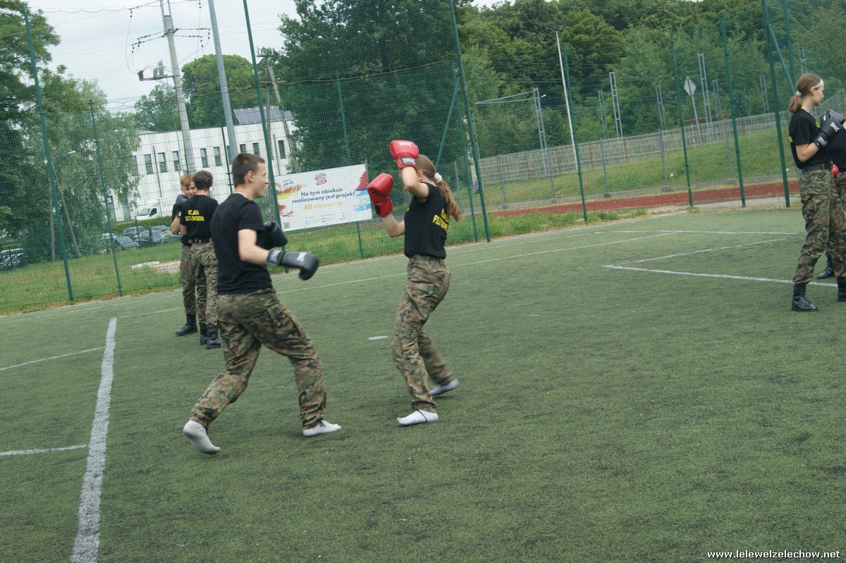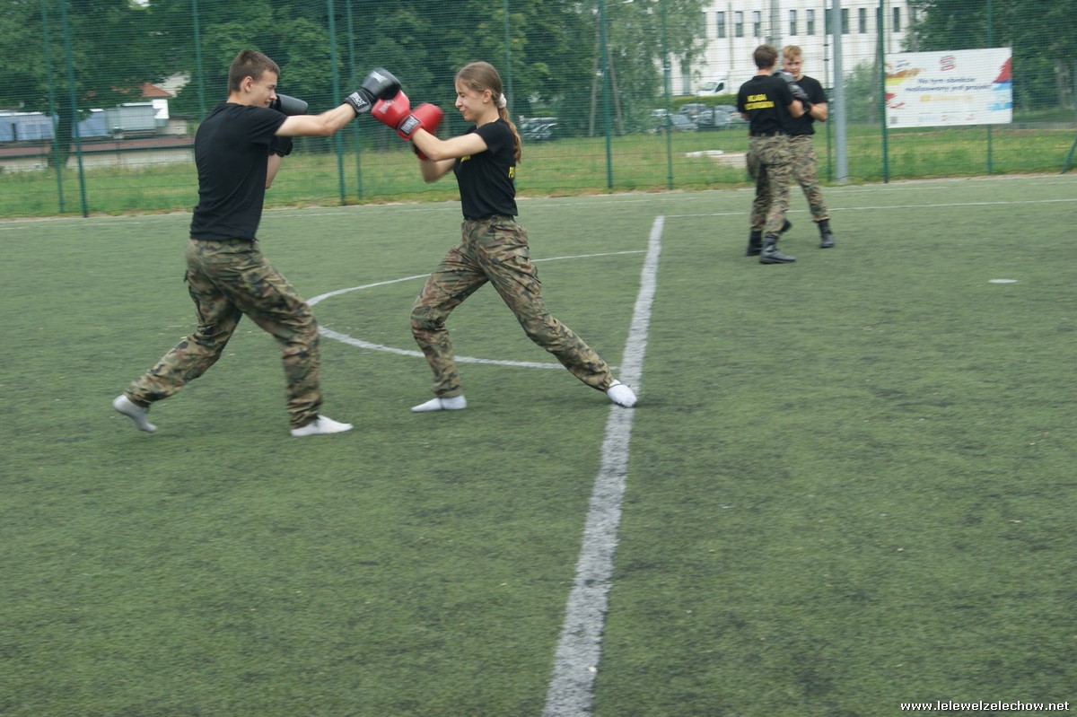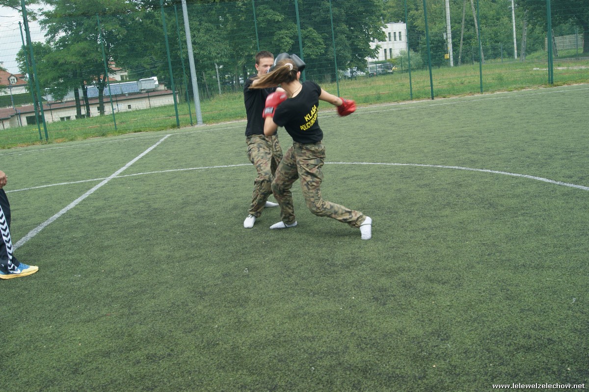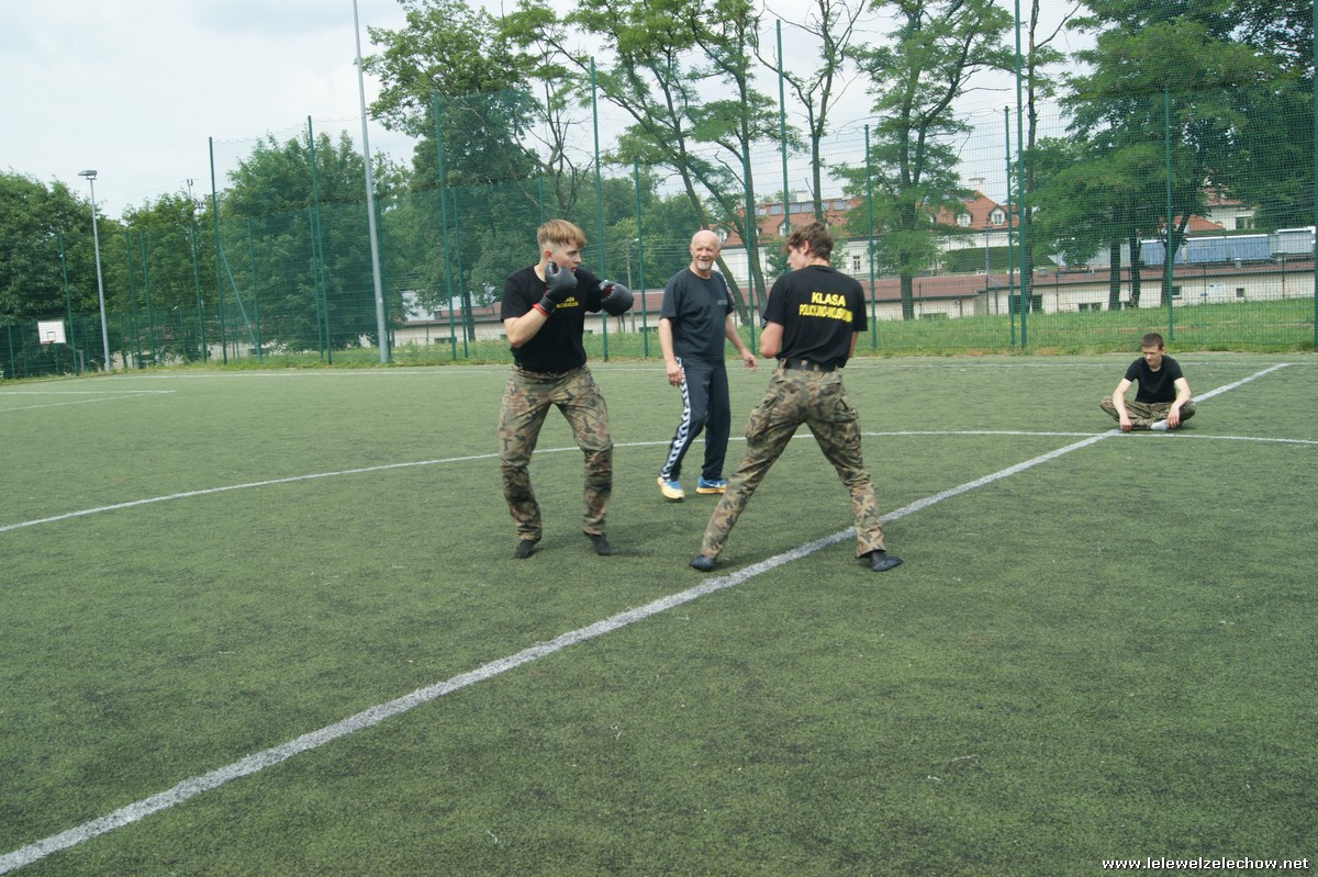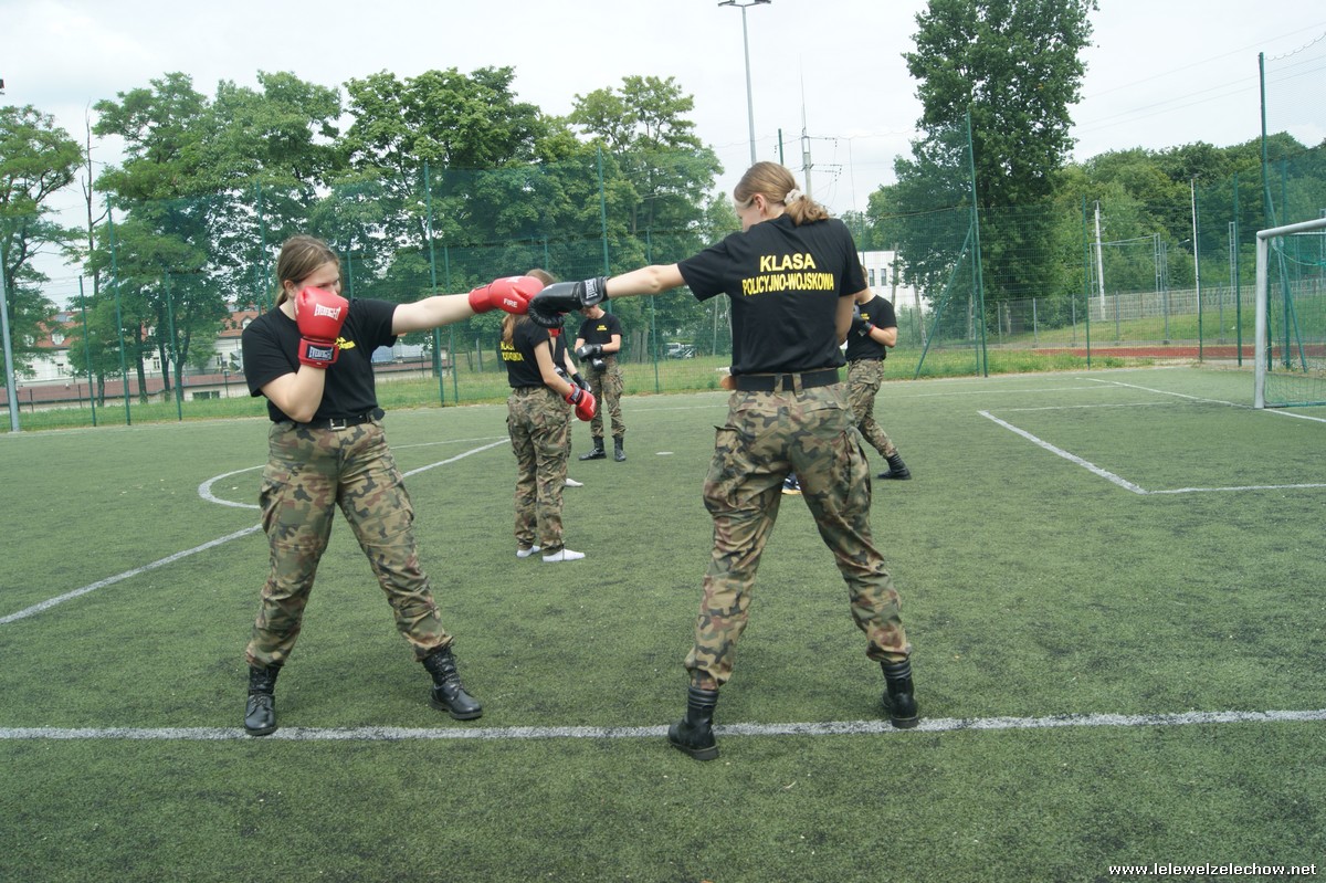16 czerwca, na ostatnich zajęciach mundurowych w tym roku szkolnym, dokonano podsumowania zajęć policyjno – wojskowych w zakresie prezentacji technik samoobrony i boksu.