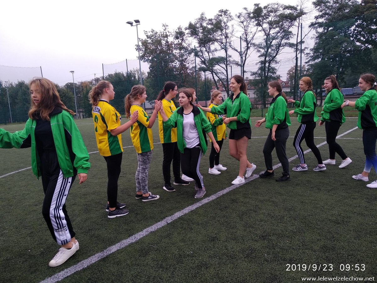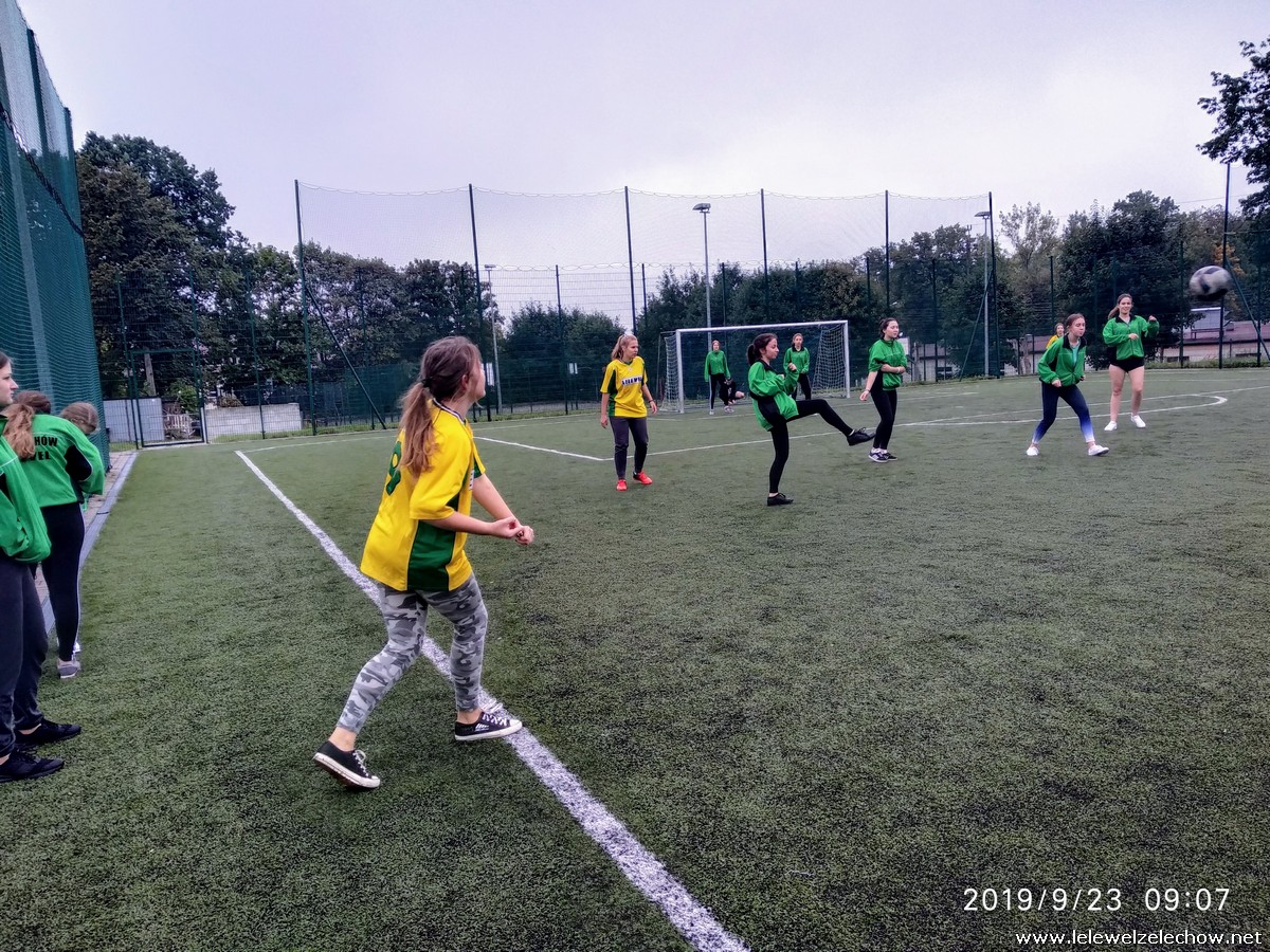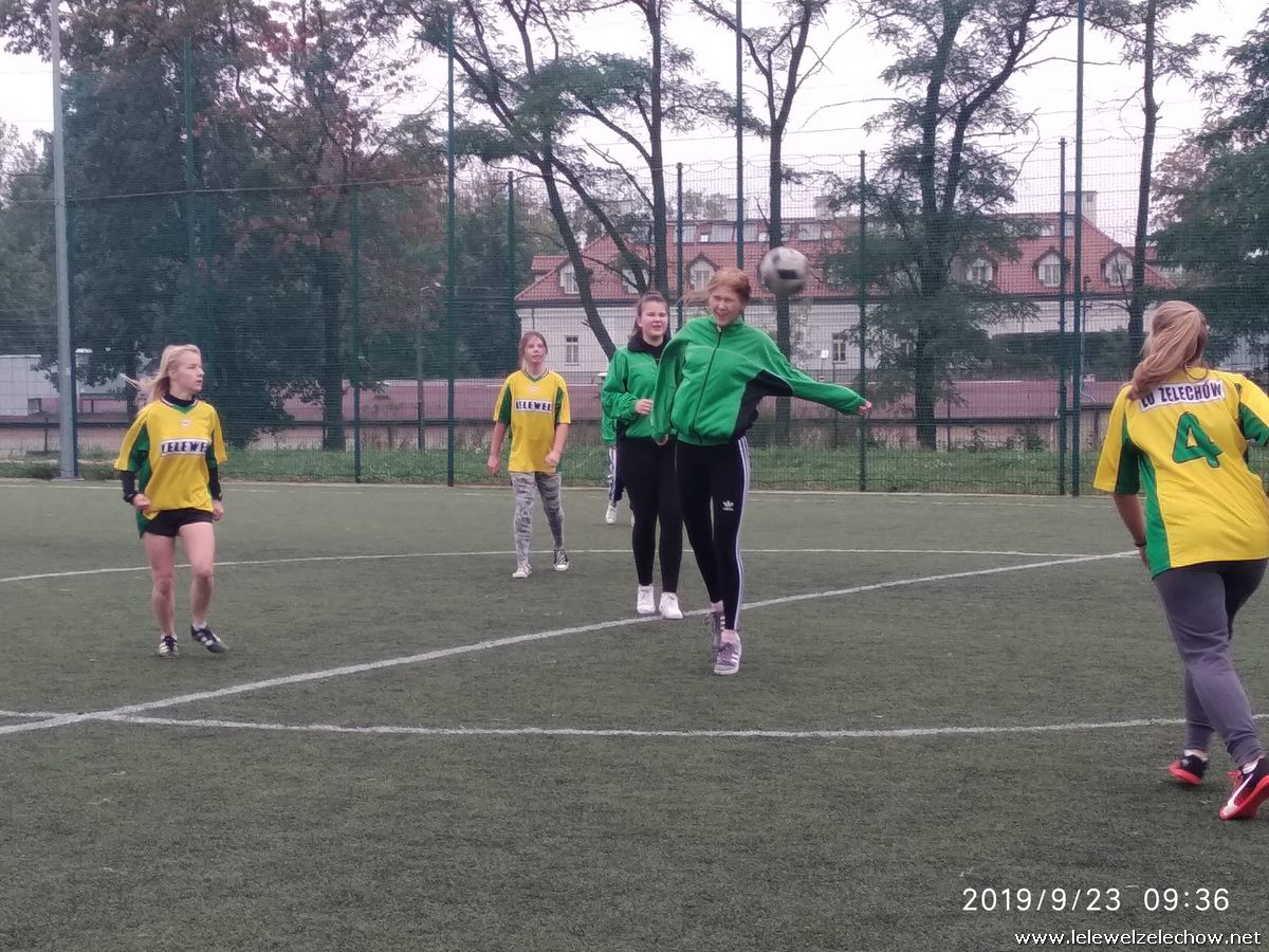 Mecz piłki nożnej dziewcząt. Gra zespół złożony z zawodniczek z klas pierwszych kontra klasy drugie i trzecie. Wyraźne, wysokie zwycięstwo odnosi drużyna starsza, a najwięcej bramek zdobywa Natalia Szostak i Amelia Bauman. Dziewczęta młodsze chcąc się odegrać proponują kolejny pojedynek, tym razem w piłkę ręczną.