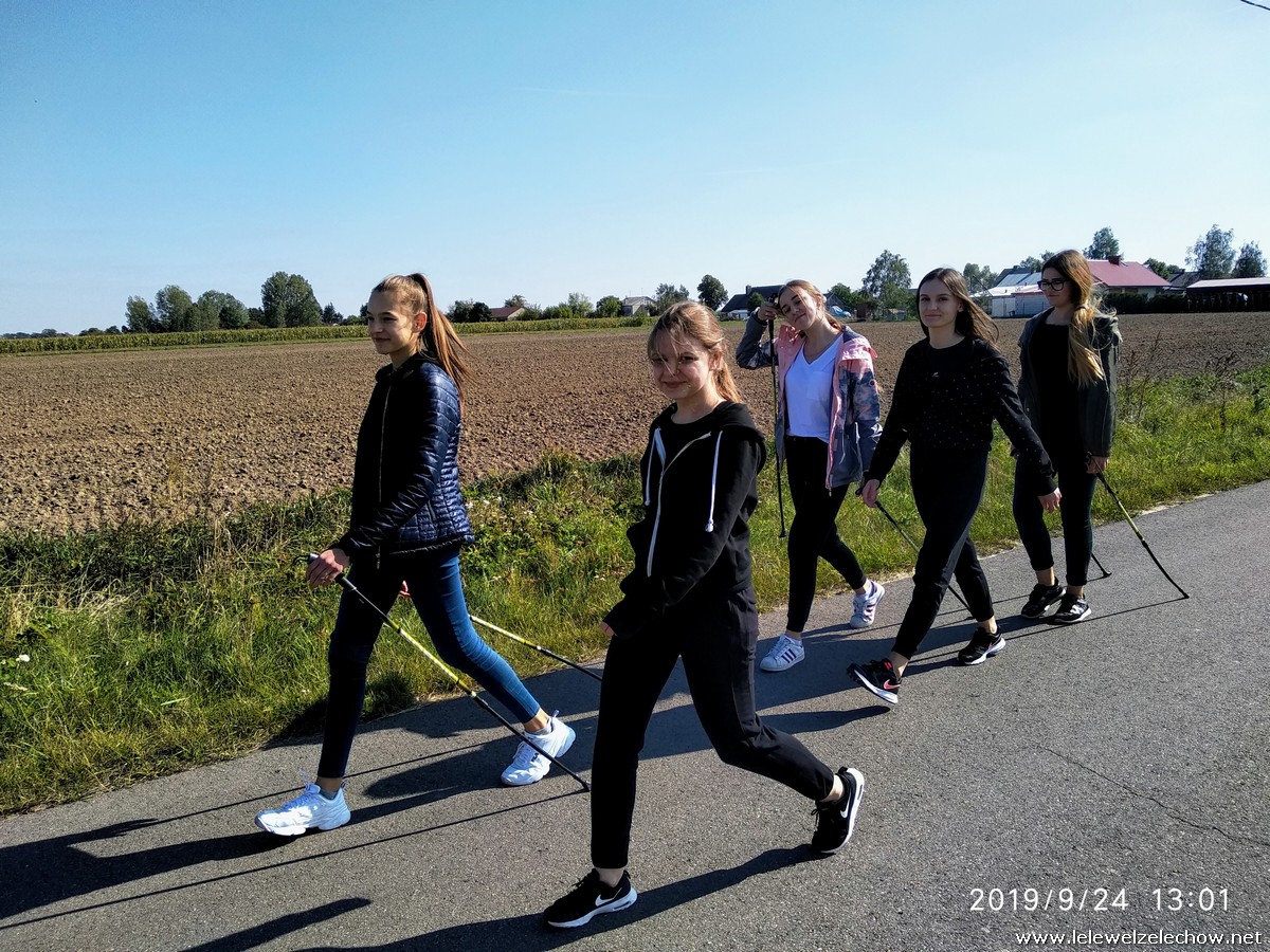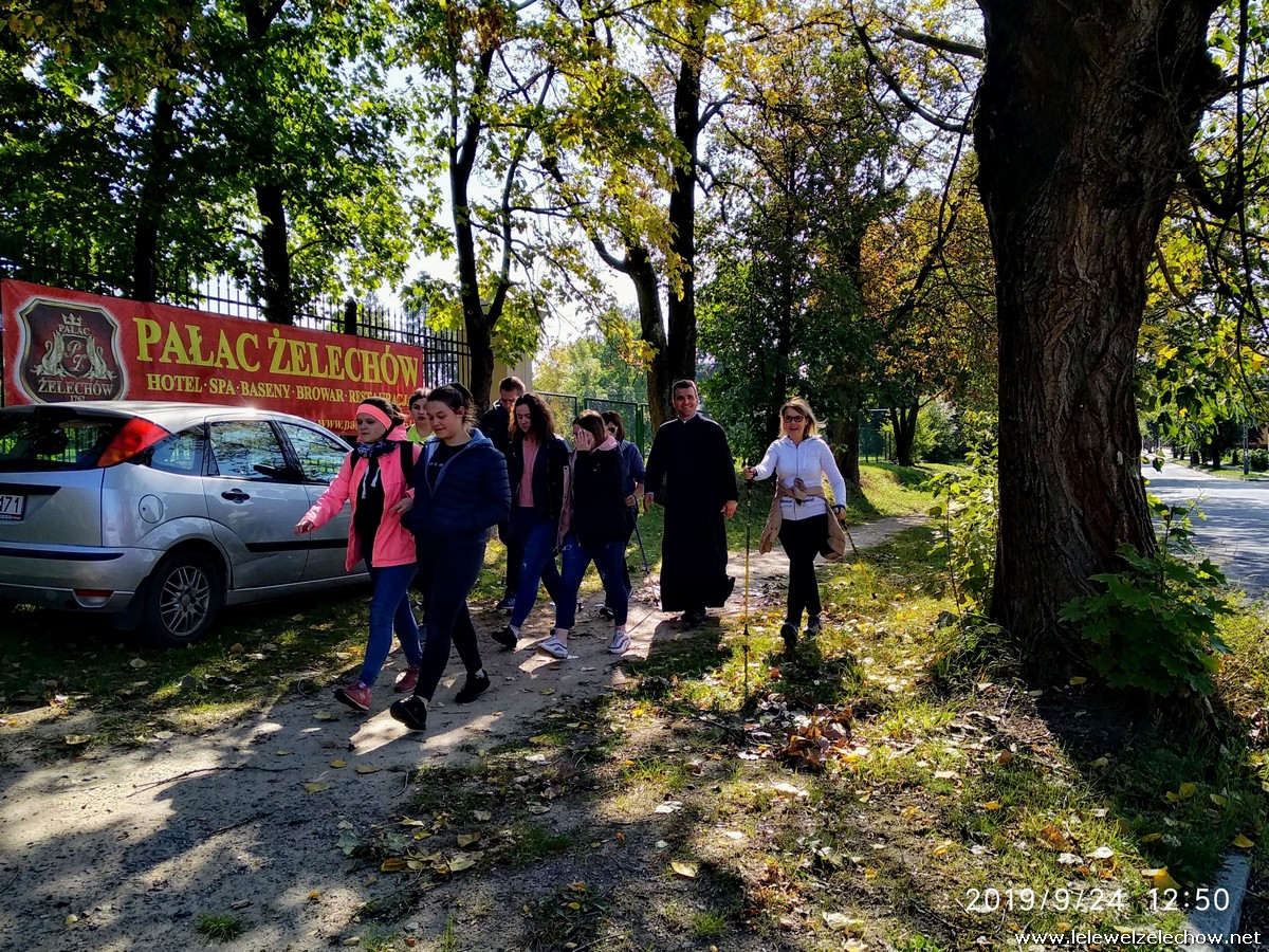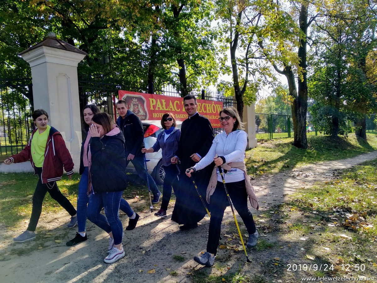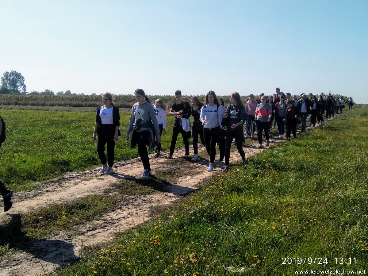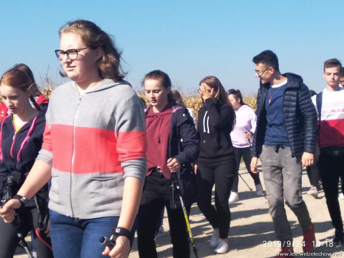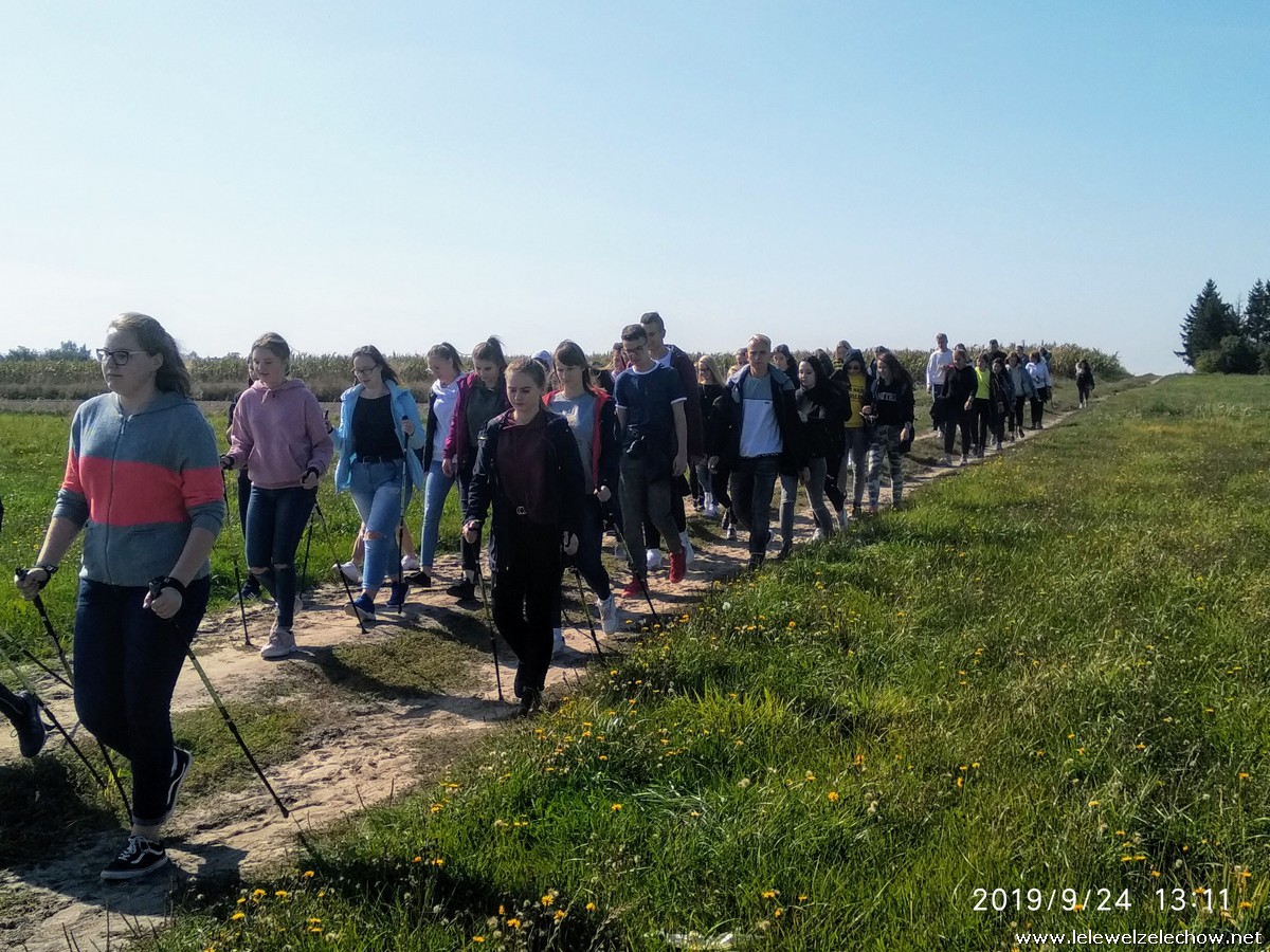 Marsz nordic walking, w trasę którego wyrusza ponad połowa szkoły. Ok. 100 uczniów pod opieką nauczycieli: Joanny Włodarczyk, Anetty Dziak, Joanny Baranieckiej, Andrzeja Głodka i ks. Leszka Mućki przemierza dystans 5 km. Kto nie miał kijów do nordic walkingu oczywiście mógł iść bez nich.