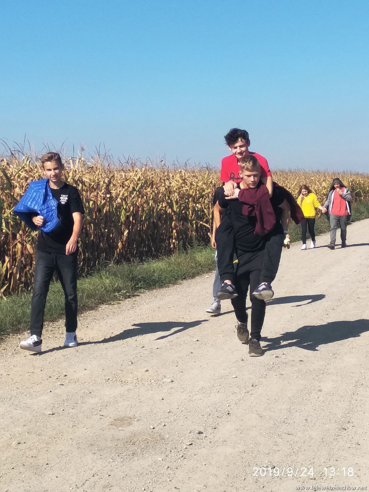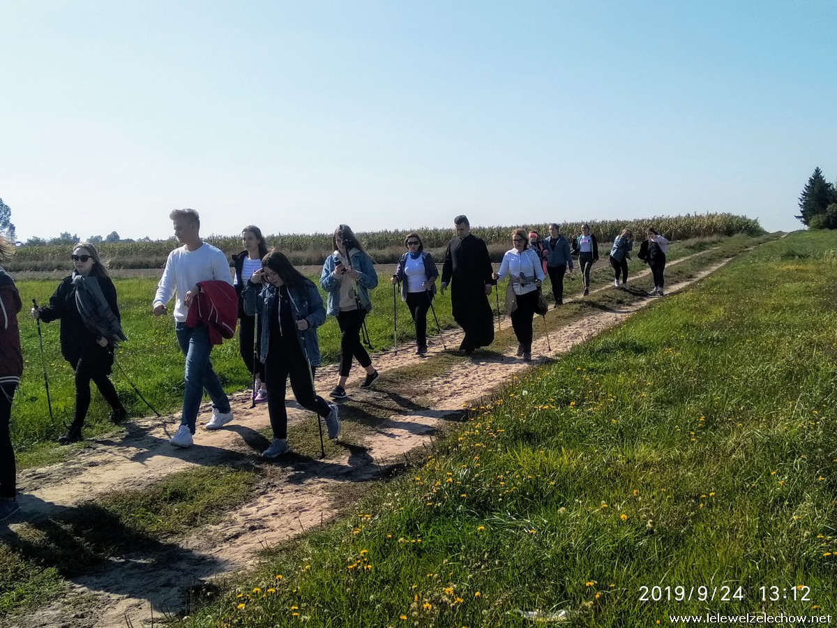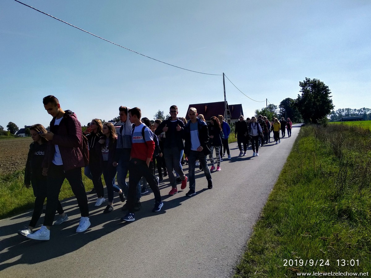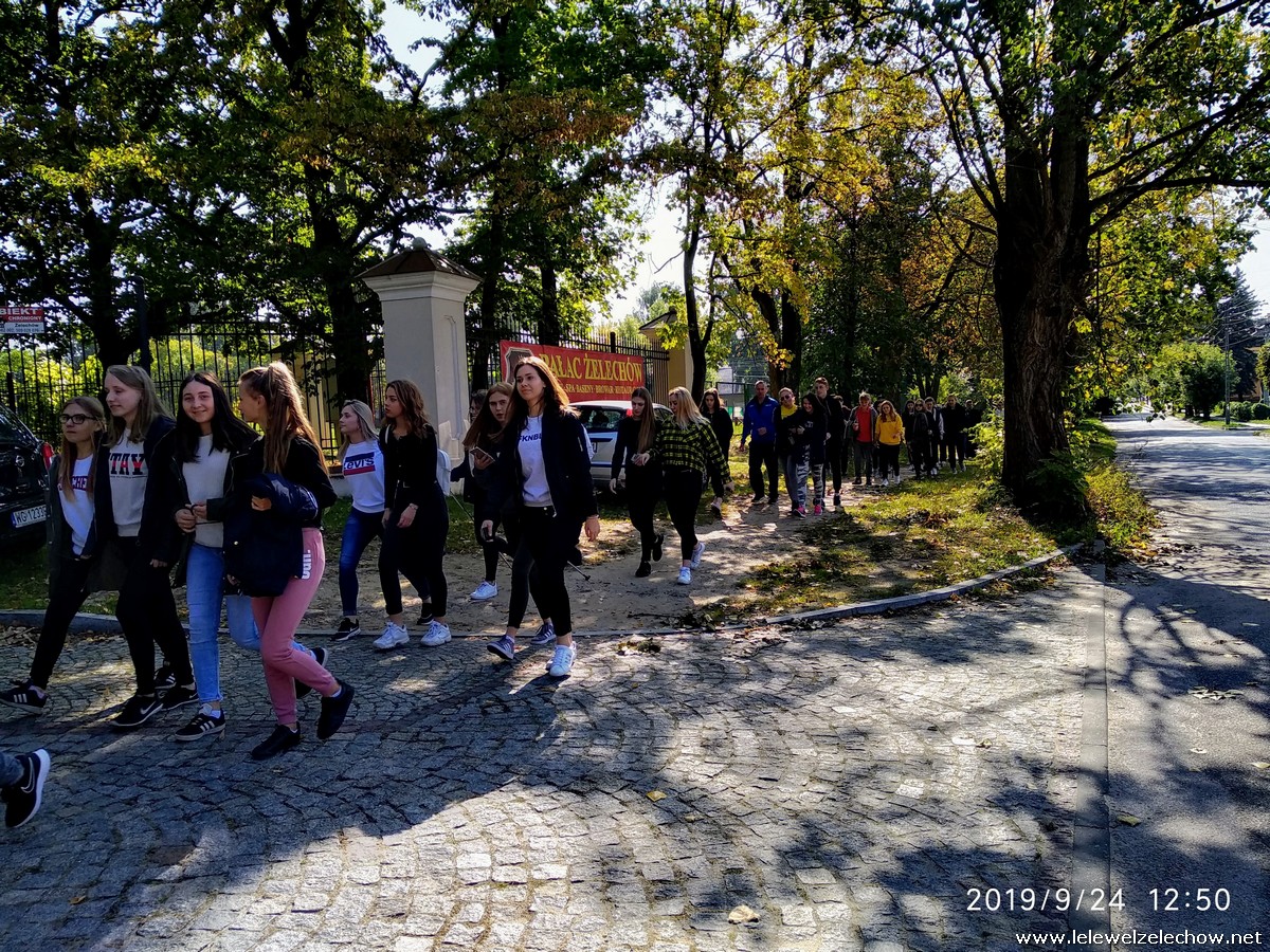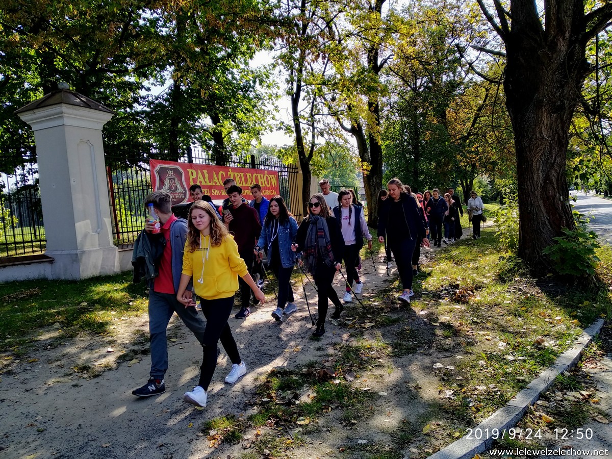 Marsz nordic walking, w trasę którego wyrusza ponad połowa szkoły. Ok. 100 uczniów pod opieką nauczycieli: Joanny Włodarczyk, Anetty Dziak, Joanny Baranieckiej, Andrzeja Głodka i ks. Leszka Mućki przemierza dystans 5 km. Kto nie miał kijów do nordic walkingu oczywiście mógł iść bez nich.