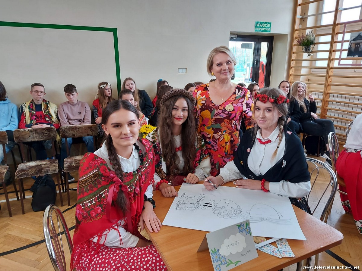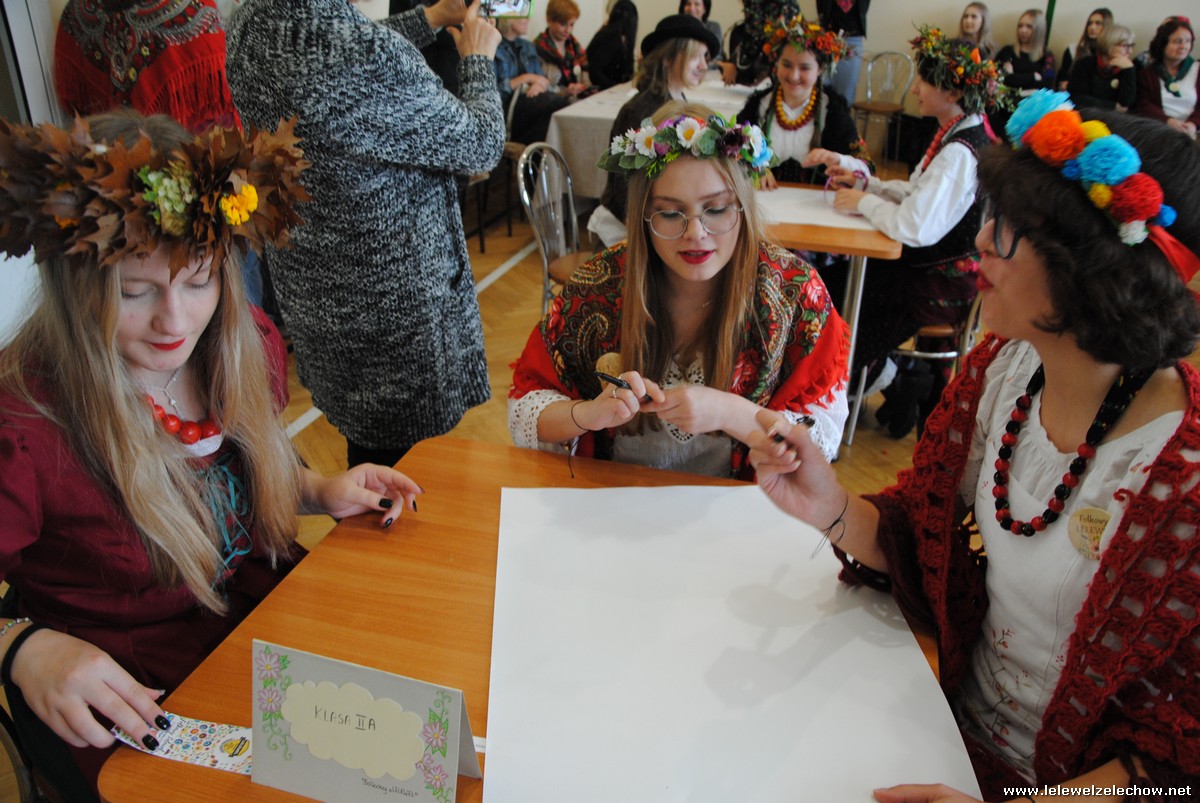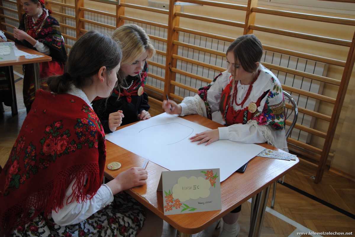 Nasza impreza była pełna atrakcji - zespół wokalny bawił publiczność znanymi i lubianymi piosenkami folkowo - ludowymi, uczniowie jak również nasi Goście rysowali przysłowia (efekty tych prac następnie przedstawiono ogółowi zebranych na sali). Wiele pozytywnych emocji przyniosło także odczytanie fragmentu powieści ”Chłopi” Władysława Reymonta przez naszych Gości :)