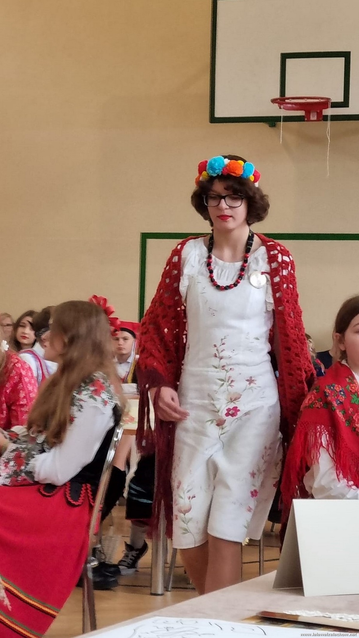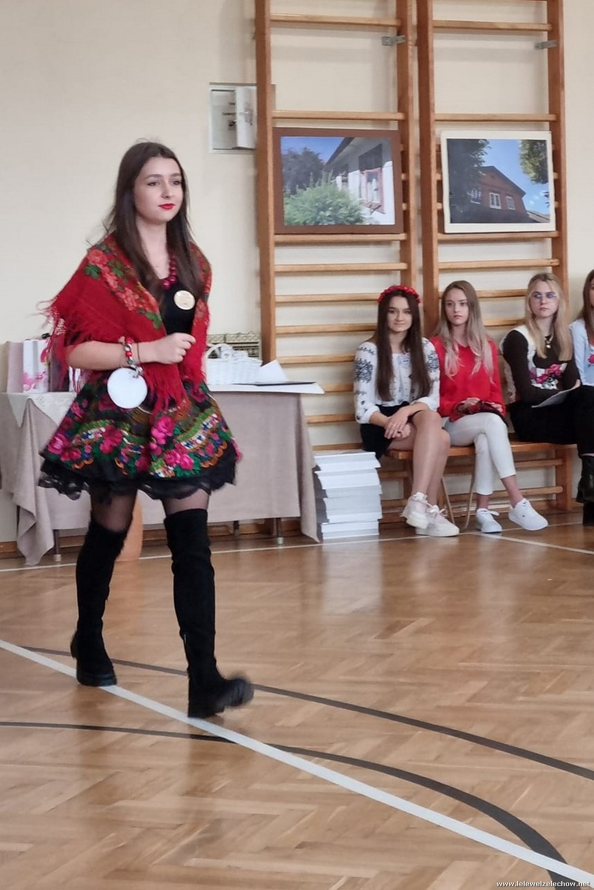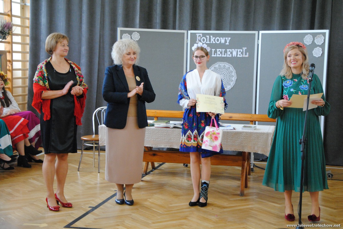 Pokaz mody folkowej to kolejny punkt w naszym programie ,,Folkowego LELEWELA”:) Do rywalizacji stanęły przedstawicielki ze szkół podstawowych oraz nasze licealistki z poszczególnych klas. Jury złożone z Gości oceniło prezentacje w dwu kategoriach: szkół podstawowych oraz liceum, przy czym uczennice LO musiały dodatkowo w swoim stroju połączyć elementy ludowe ze współczesnymi oraz ręcznie wykonanymi.