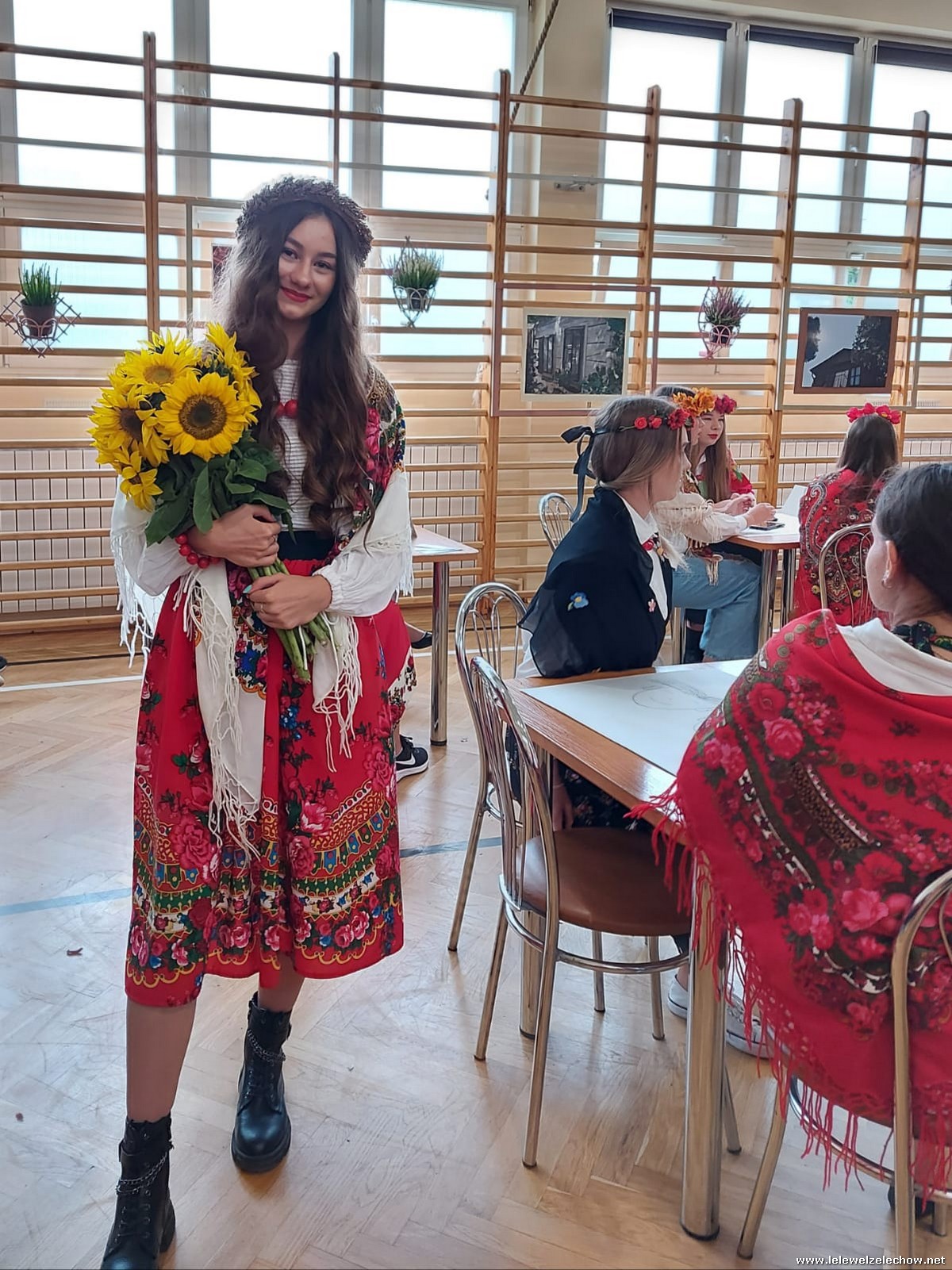 Na zakończenie pokazu pani Senator Maria Koc pogratulowała wspaniałego pomysłu zorganizowania w naszej szkole tak cennego edukacyjnie wydarzenia jakim był “Folkowy LELEWEL”.