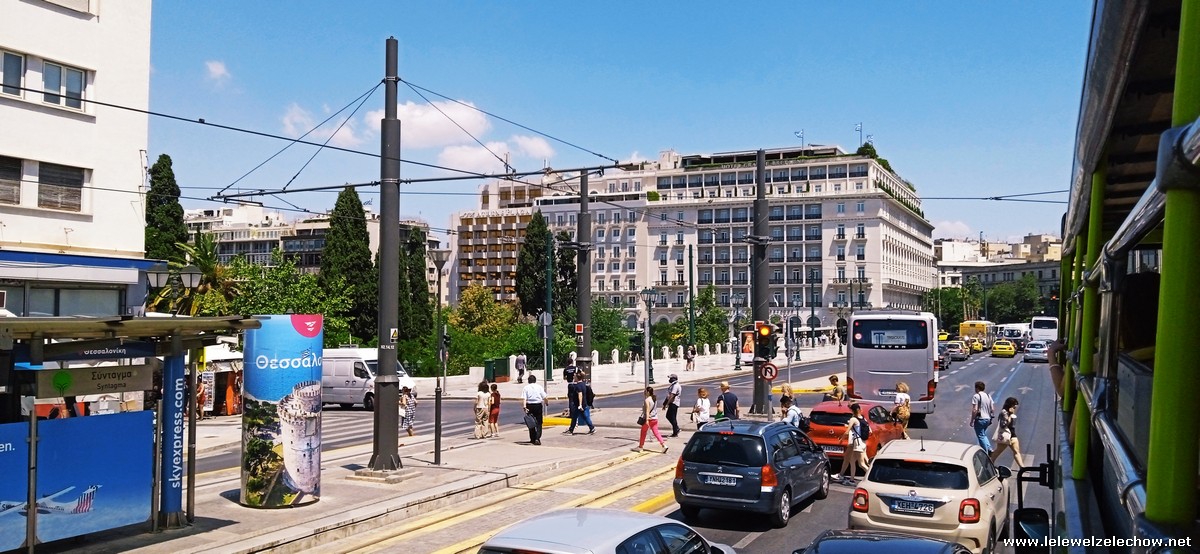 Przedsmakiem naszego pobytu w Grecji było zwiedzanie Pireusu i Aten z okien autobusu. Tu po raz pierwszy doświadczyliśmy znaczących podmuchów wiatru bo oczywiście wszyscy usiedliśmy na górnym, odkrytym piętrze autokaru. Z góry, przemieszczając się wąskimi i często krętymi uliczkami, podziwialiśmy Pireus. Następnie przejechaliśmy kilka kilometrów i już byliśmy w Atenach. Tu zobaczyliśmy parlament, Akropol, stadion oraz wiele innych charakterystycznych dla stolicy Grecji miejsc.