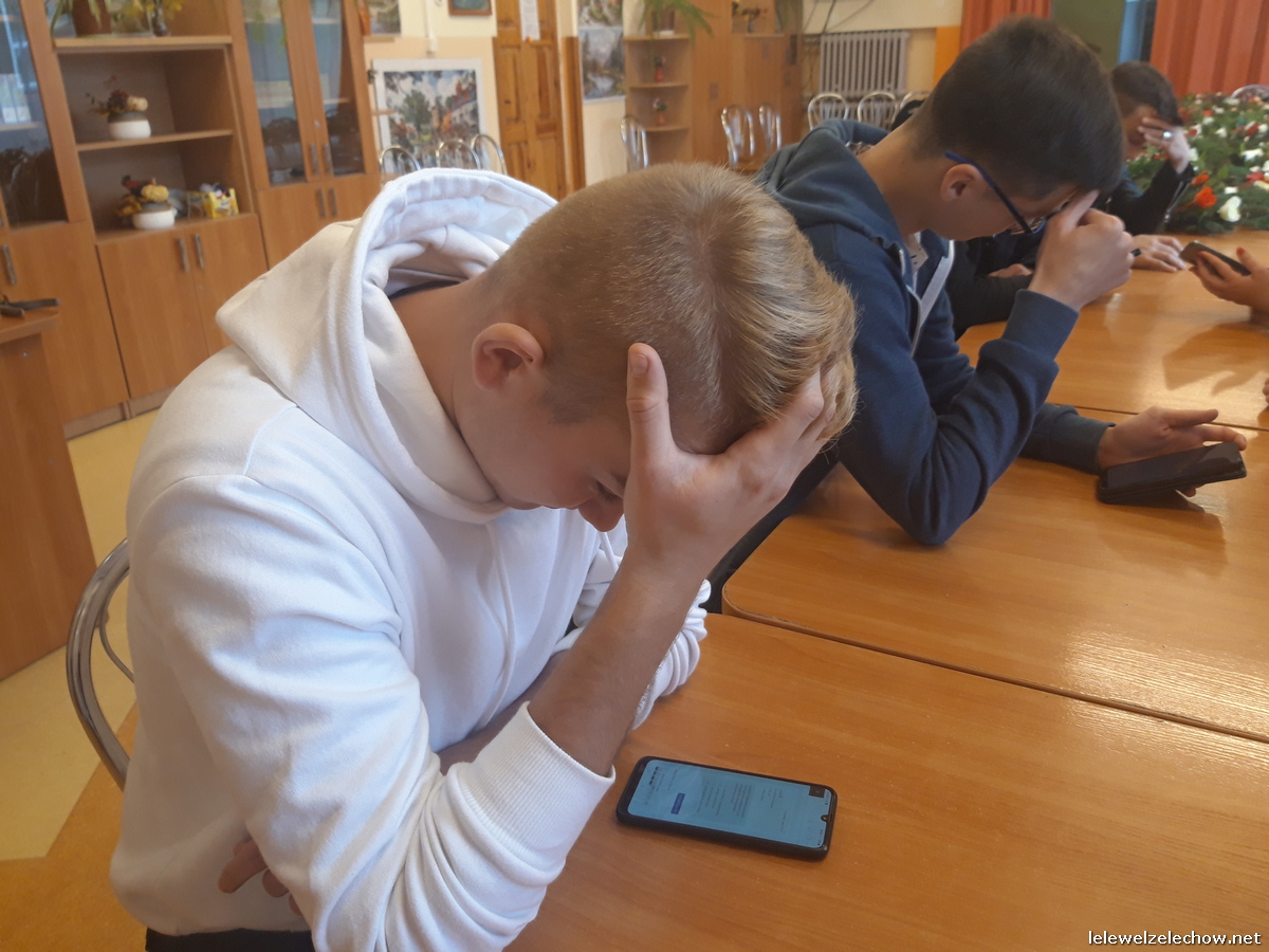 I etap (eliminacyjny) został przeprowadzony w dniu 29 października i polegał na rozwiązaniu testu online na platformie Moodle Szkoły Wyższej Wymiaru Sprawiedliwości w Warszawie przez wszystkich uczestników jednocześnie. Na rozwiązanie testu uczestnicy mieli 40 minut. Do testu przystąpili uczniowie z klas 3ab realizujący wiedzę o społeczeństwie na poziomie rozszerzonym. Dzień wcześniej wykonali obowiązkowy dla uczestników test próbny (zdj. ze świetlicy).
