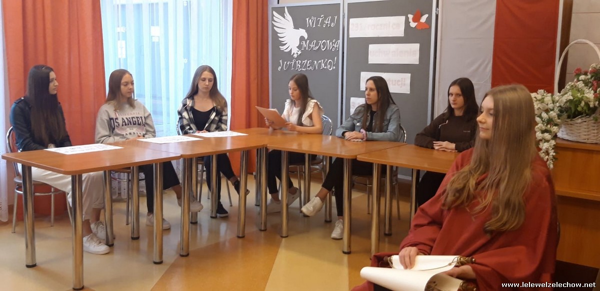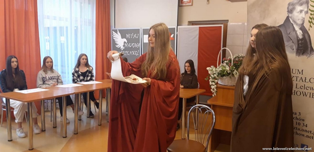 Inscenizacja przygotowana przez uczennice klasy 2a, przypominająca wydarzenia związane z uchwaleniem Konstytucji 3 Maja. Krótki program został zaprezentowany klasom pierwszym.