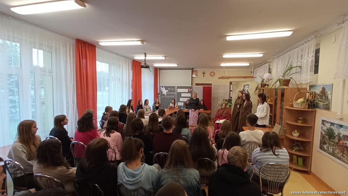 Na zakończenie nauczyciel historii- pani Urszula Kobielus przeprowadziła krótki quiz wśród oglądających oraz podziękowała uczennicom klasy 2a za przygotowanie inscenizacji.