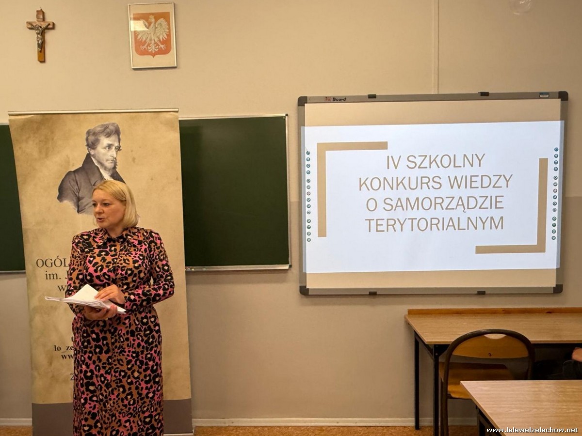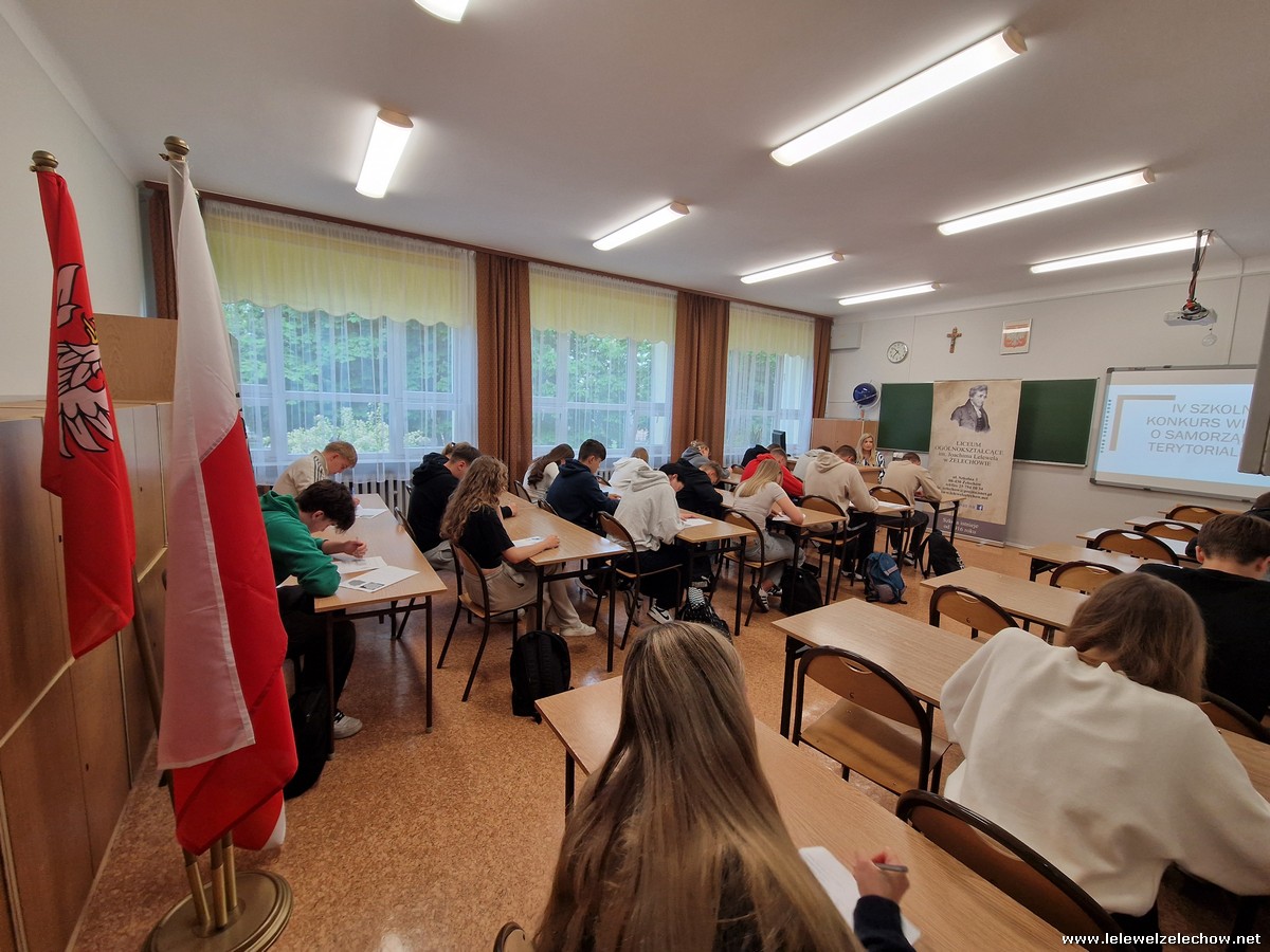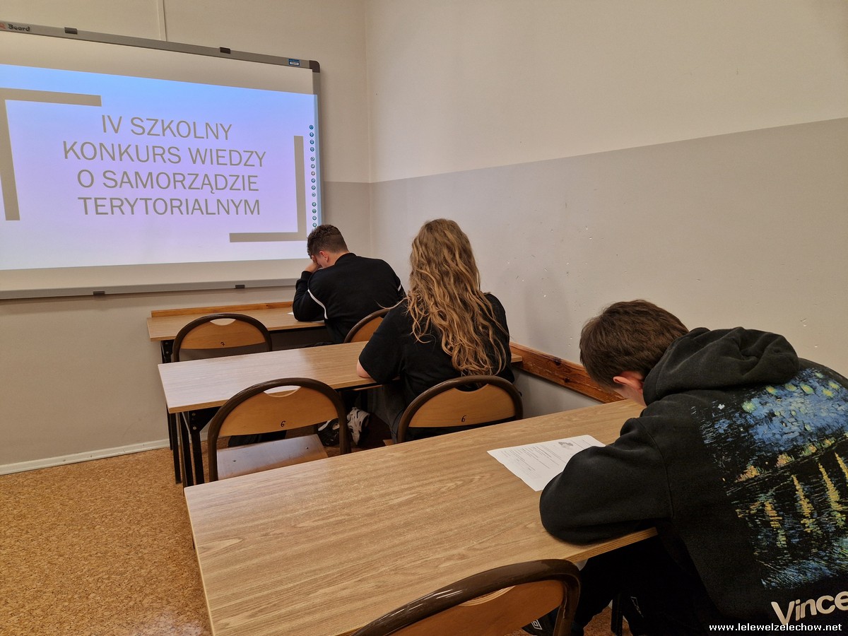 29 maja odbył się w naszej szkole IV Konkurs wiedzy o samorządzie terytorialnym. Do konkursu przystąpiło 24 uczniów ze wszystkich klas. Niektórzy uczestniczyli w nim już w poprzednich edycjach, znaczna część to nowi uczestnicy. Test konkursowy zawierał zadania zamknięte i otwarte, mapy oraz fragmenty aktów prawnych. Czas na rozwiązanie testu wynosił 45 min. Po tym czasie organizatorki konkursu, nauczycielki wos- pani Lidia Soćko i pani Urszula Kobielus przystąpiły do sprawdzenia odpowiedzi.