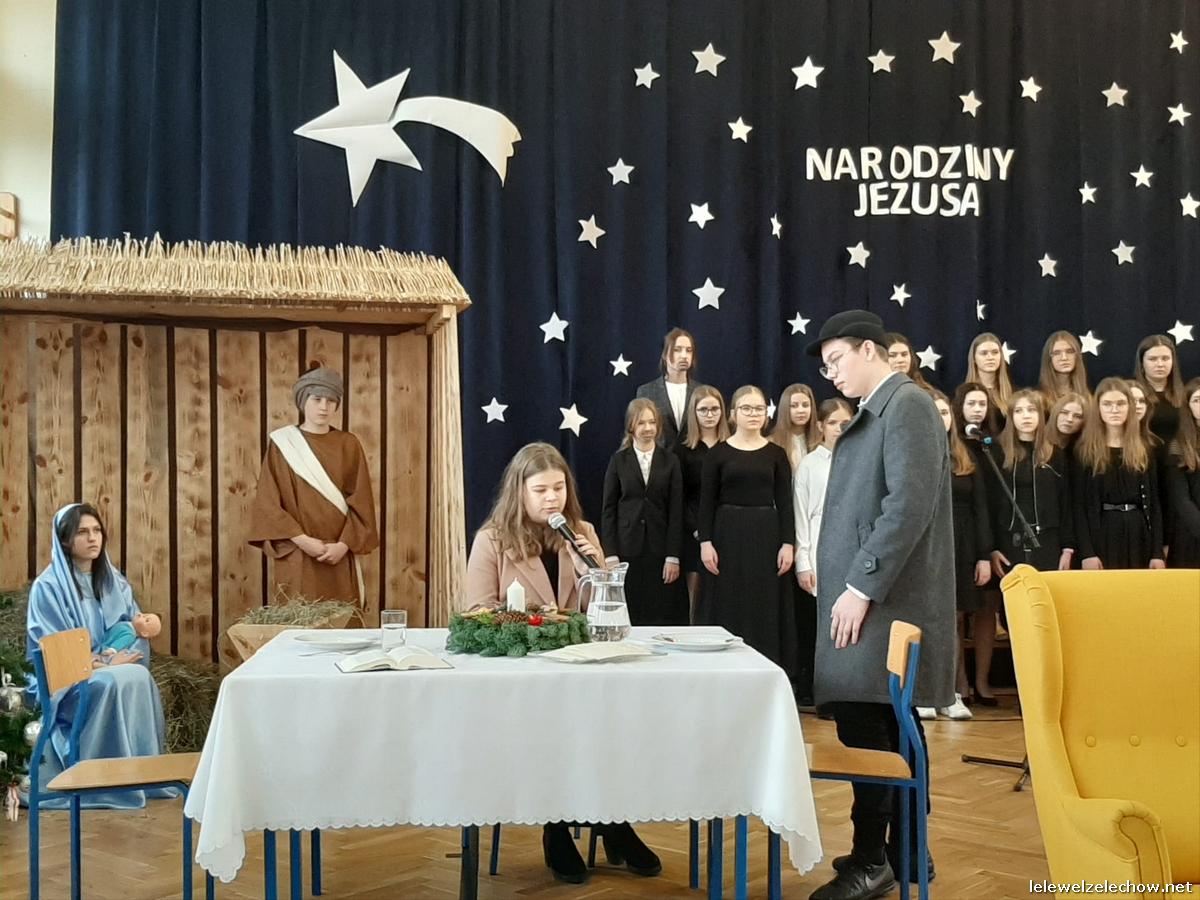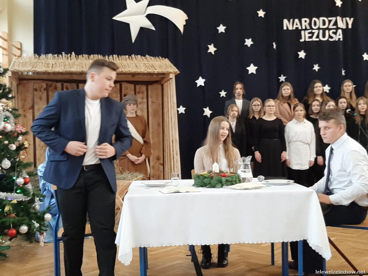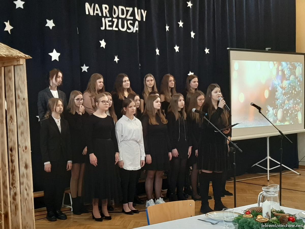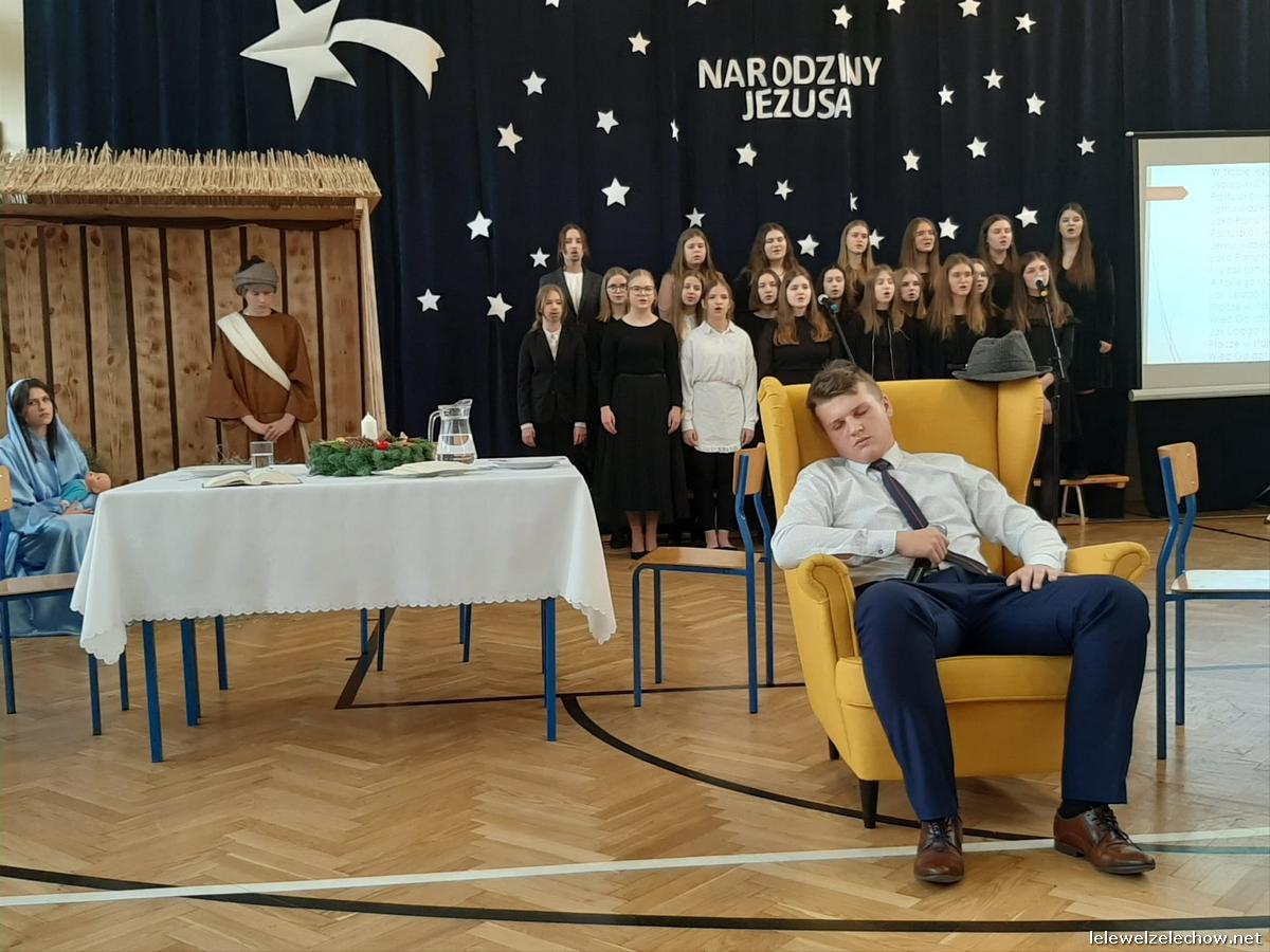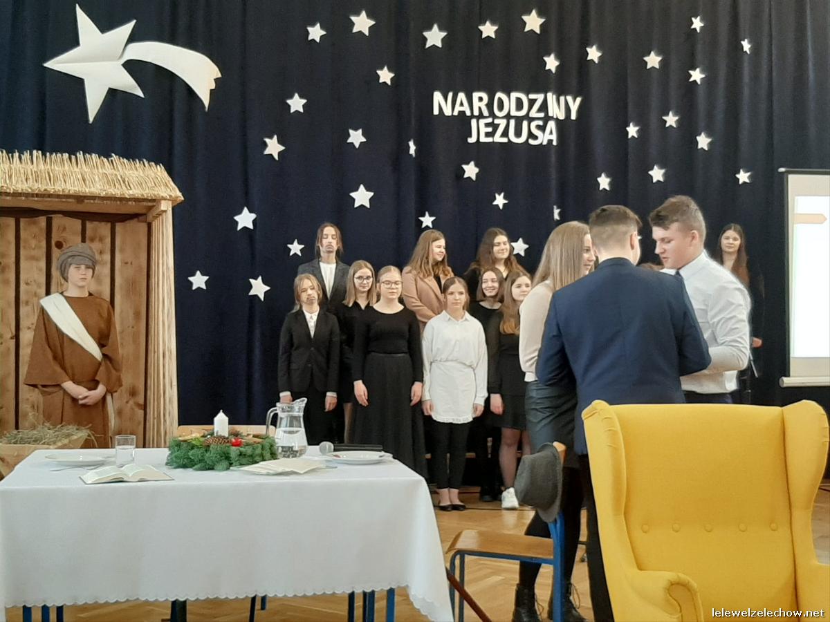 Przedstawienie dopełniały kolędy w niezwykłym wykonaniu Chóru Szkolnego oraz solistki Natalii Krawczyk. Zarówno pełne zaangażowania dialogi jak i przygotowana scenografia "wskazywały nam na to, co rzeczywiście jest najważniejsze w okresie świątecznym" jak powiedziała p. Dyrektor po przedstawieniu. Były również głębokie w swej treści życzenia dla uczniów, ich rodzin oraz pracowników szkoły od pani Dyrektor Sylwii Tomaszek oraz przewodniczącej Samorządu Uczniowskiego Patrycji Babiniec