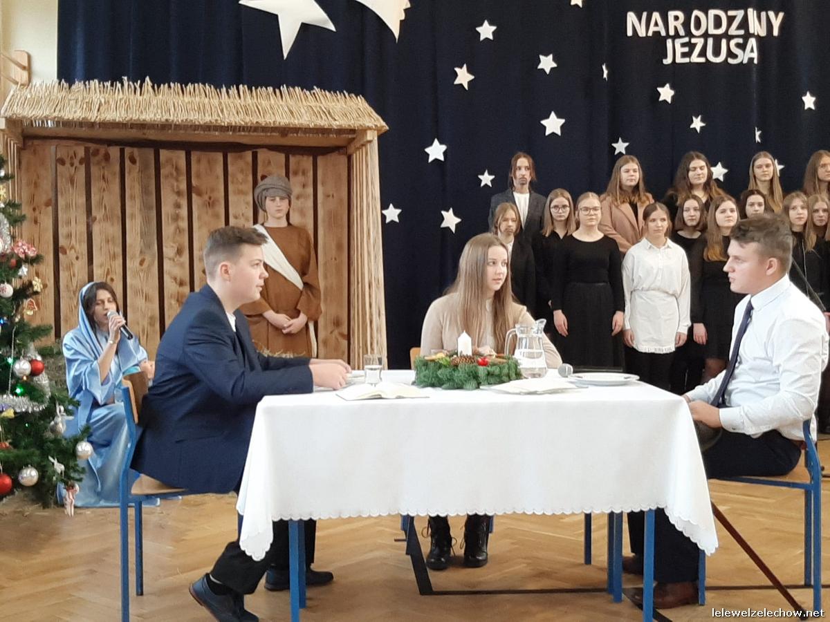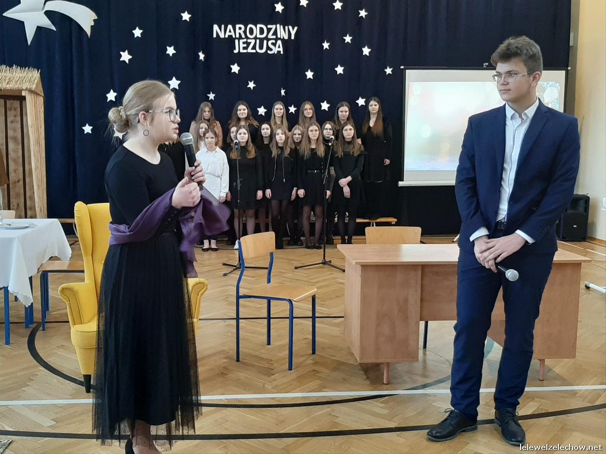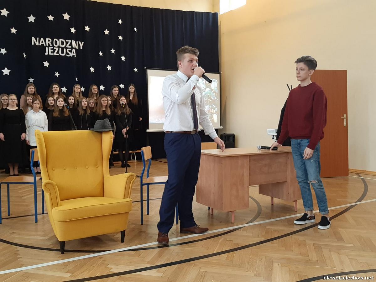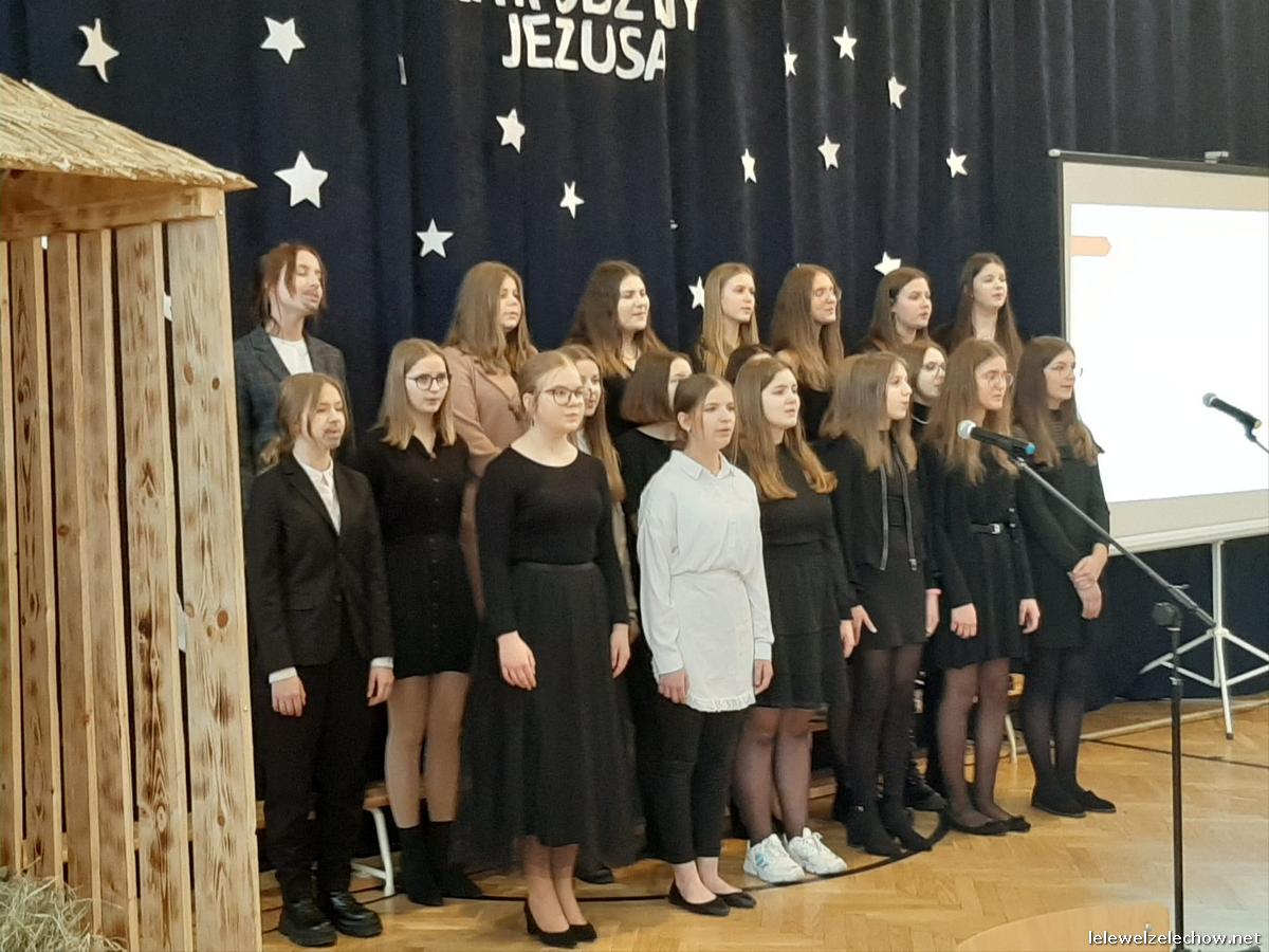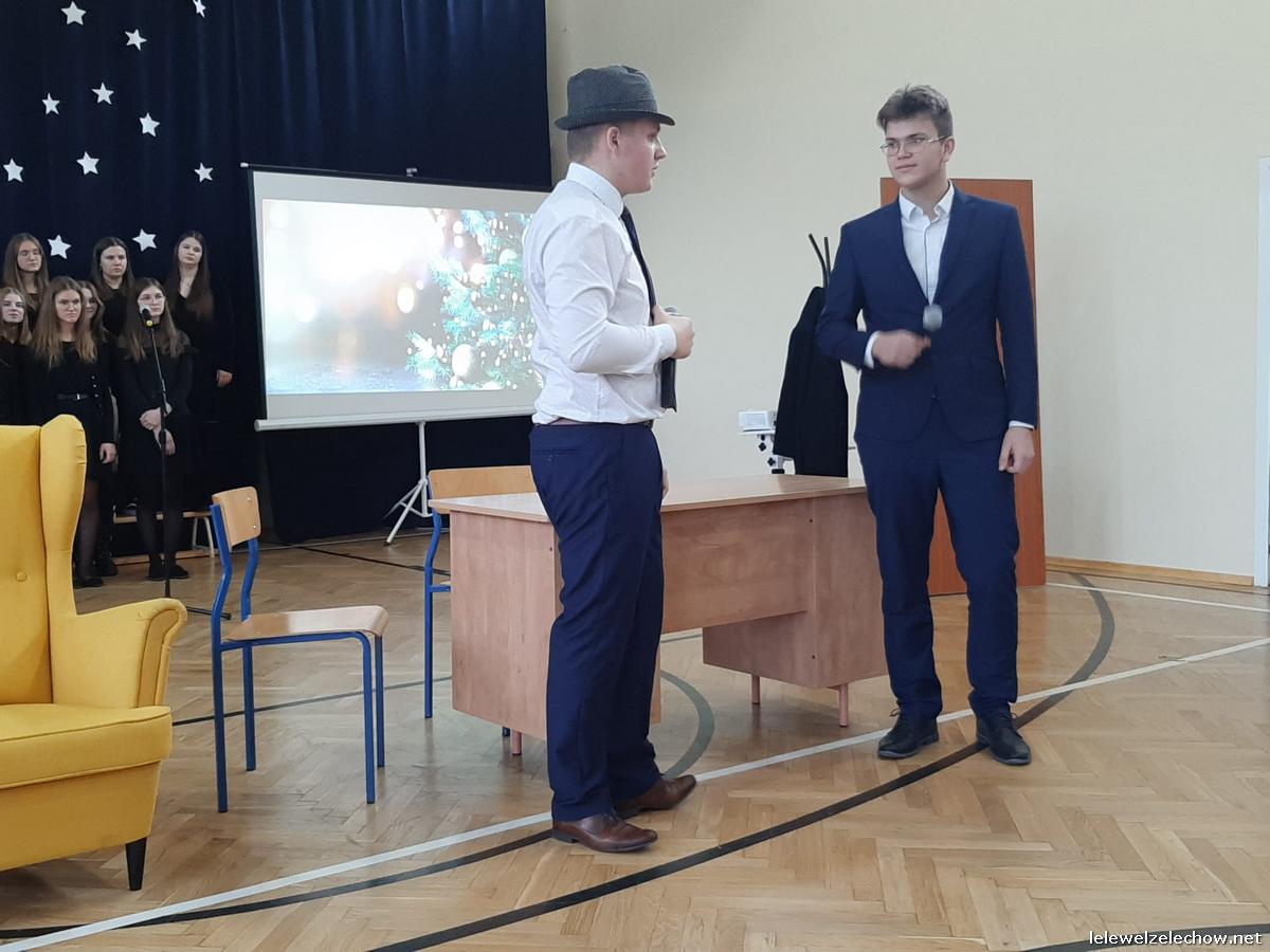 Przedstawienie dopełniały kolędy w niezwykłym wykonaniu Chóru Szkolnego oraz solistki Natalii Krawczyk. Zarówno pełne zaangażowania dialogi jak i przygotowana scenografia "wskazywały nam na to, co rzeczywiście jest najważniejsze w okresie świątecznym" jak powiedziała p. Dyrektor po przedstawieniu. Były również głębokie w swej treści życzenia dla uczniów, ich rodzin oraz pracowników szkoły od pani Dyrektor Sylwii Tomaszek oraz przewodniczącej Samorządu Uczniowskiego Patrycji Babiniec
