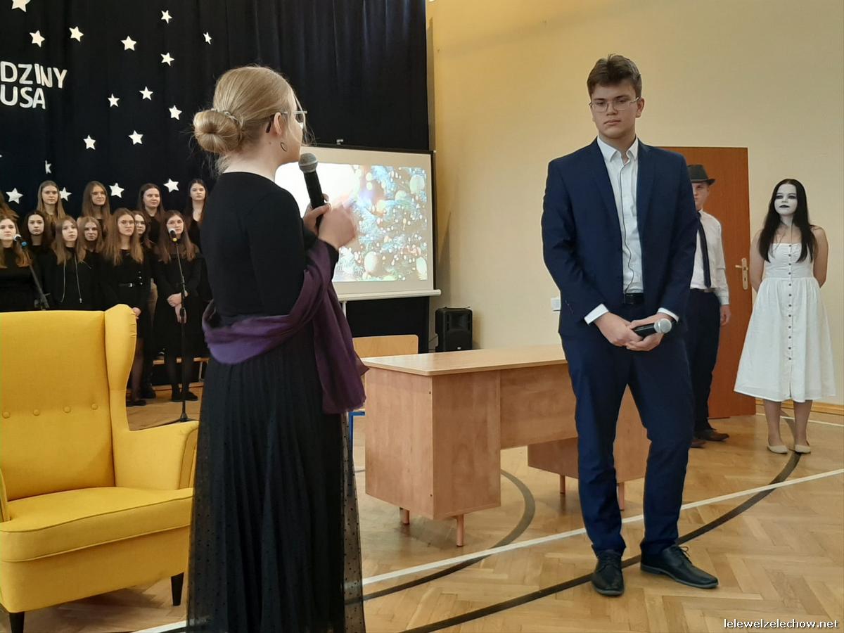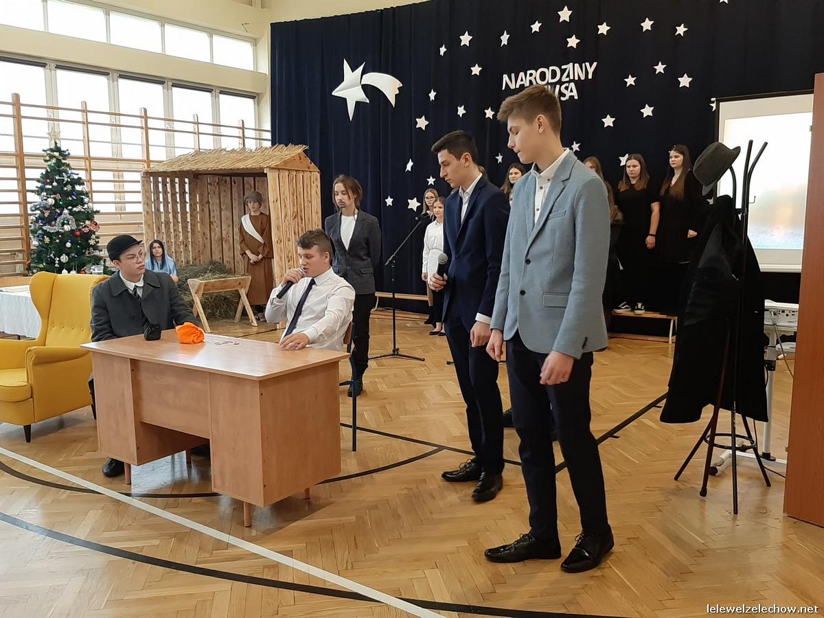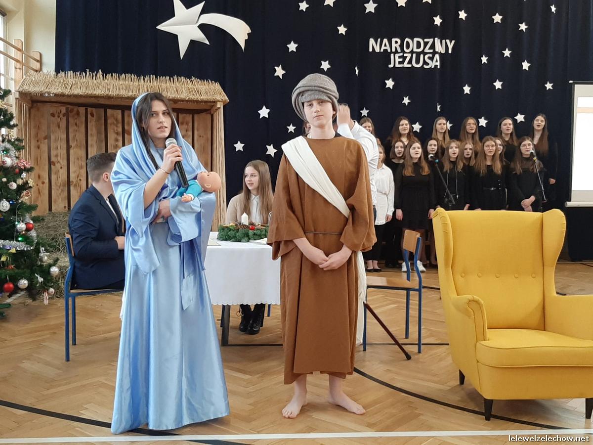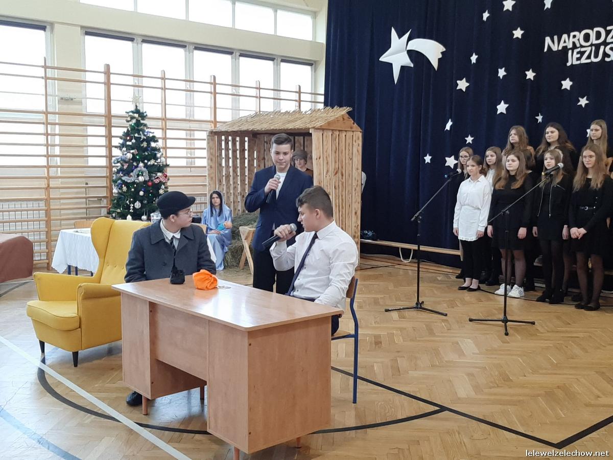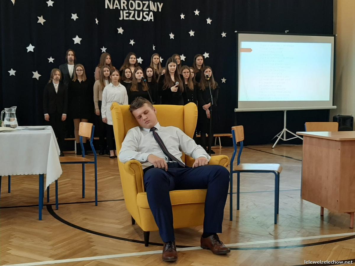 Przedstawienie dopełniały kolędy w niezwykłym wykonaniu Chóru Szkolnego oraz solistki Natalii Krawczyk. Zarówno pełne zaangażowania dialogi jak i przygotowana scenografia "wskazywały nam na to, co rzeczywiście jest najważniejsze w okresie świątecznym" jak powiedziała p. Dyrektor po przedstawieniu. Były również głębokie w swej treści życzenia dla uczniów, ich rodzin oraz pracowników szkoły od pani Dyrektor Sylwii Tomaszek oraz przewodniczącej Samorządu Uczniowskiego Patrycji Babiniec
