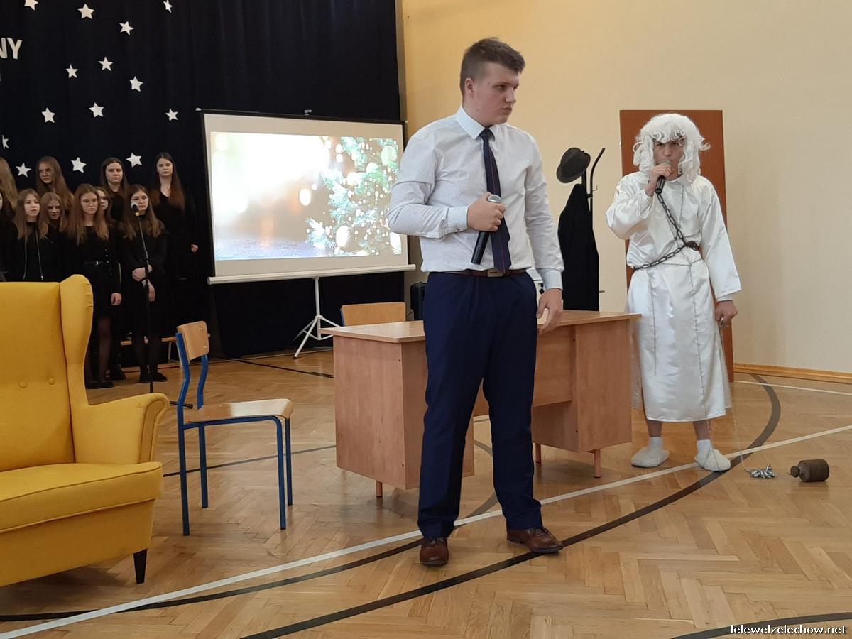 Piątek był dniem wyjątkowym w naszej szkole. A to dzięki inscenizacji Opowieści Wigilijnej Karola Dickensa przygotowanej przez naszą młodzież pod kierunkiem księdza Leszka Mućki.