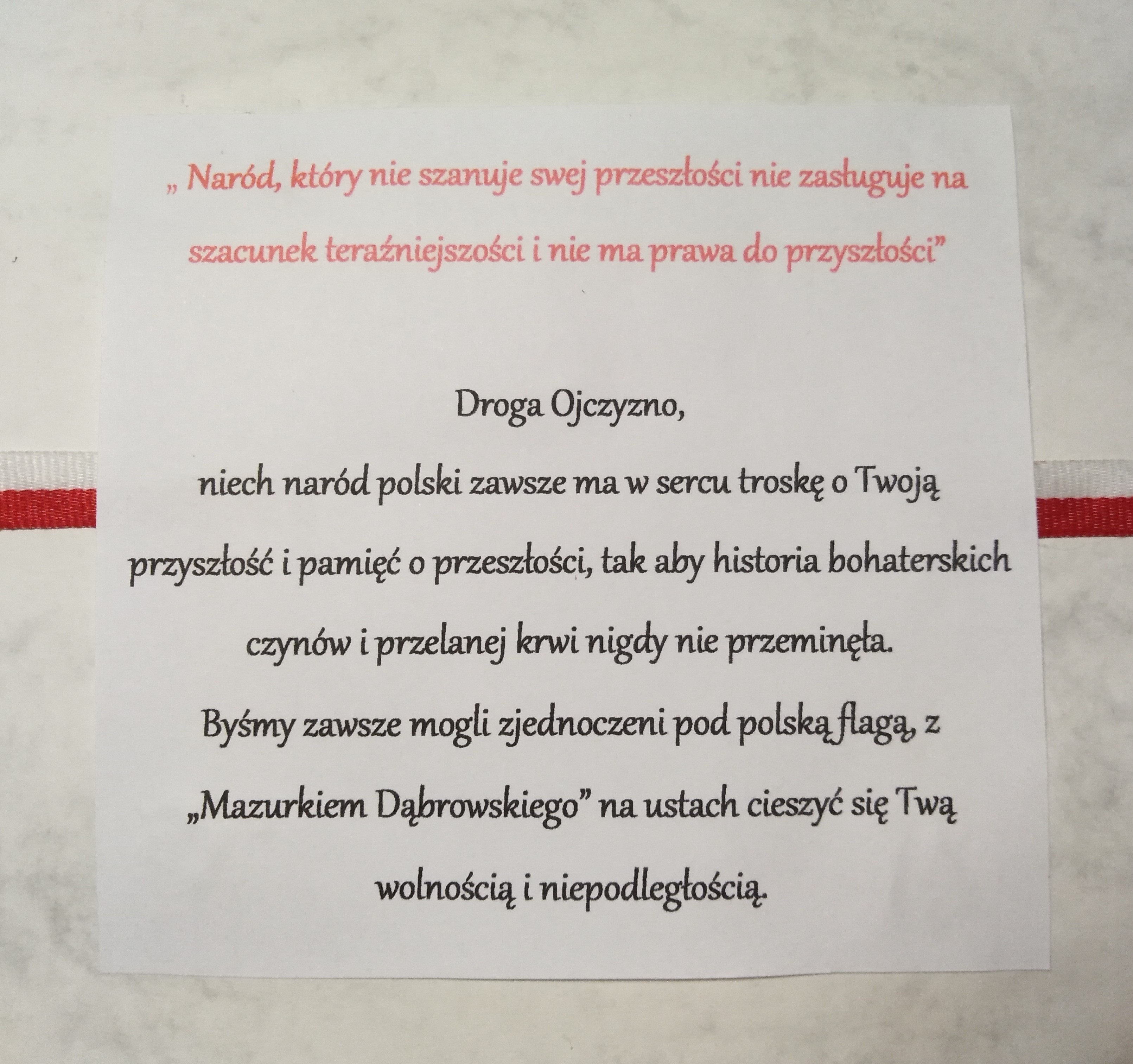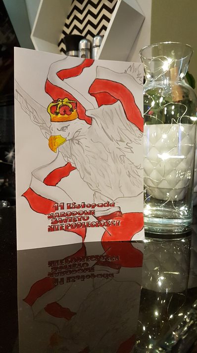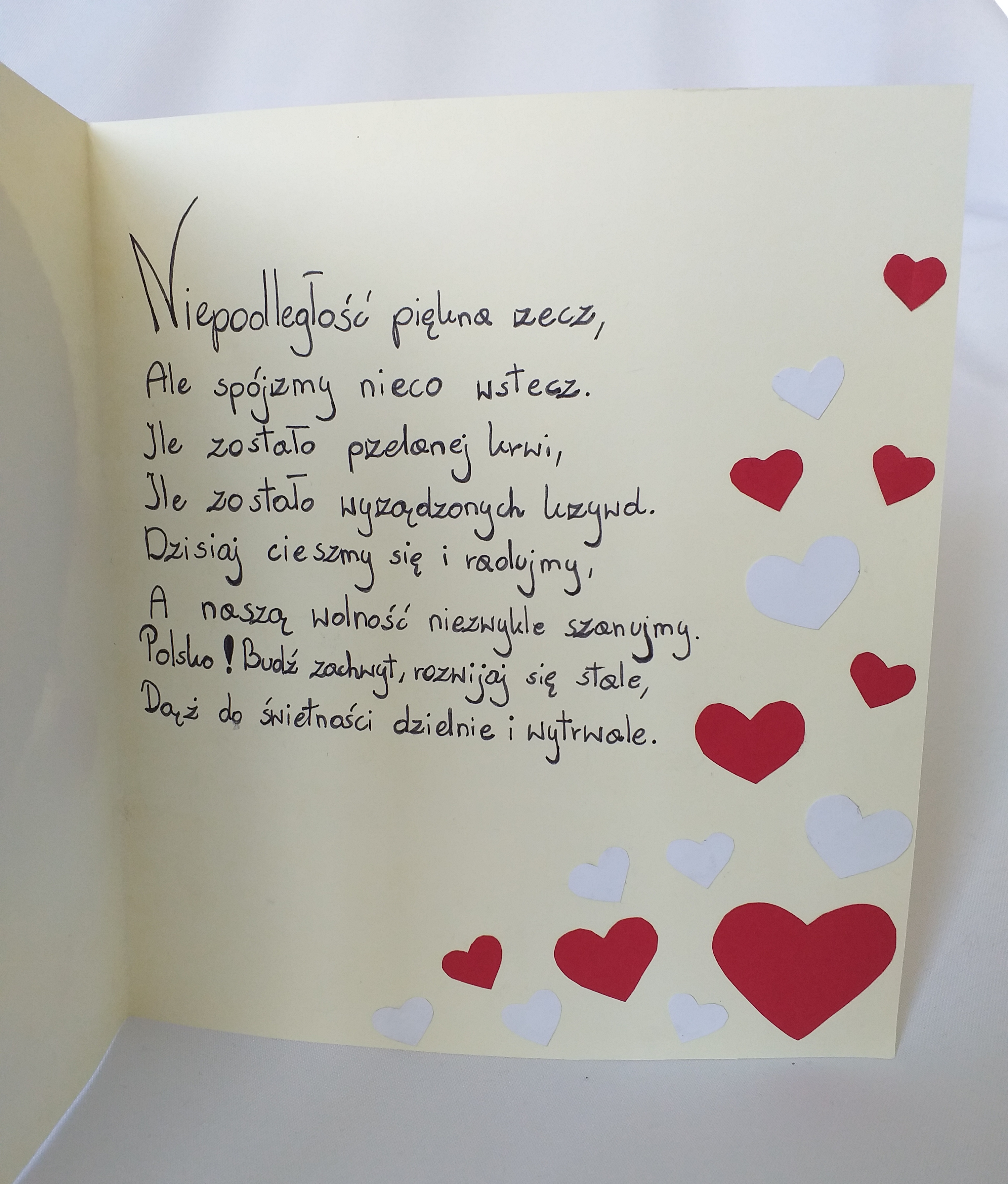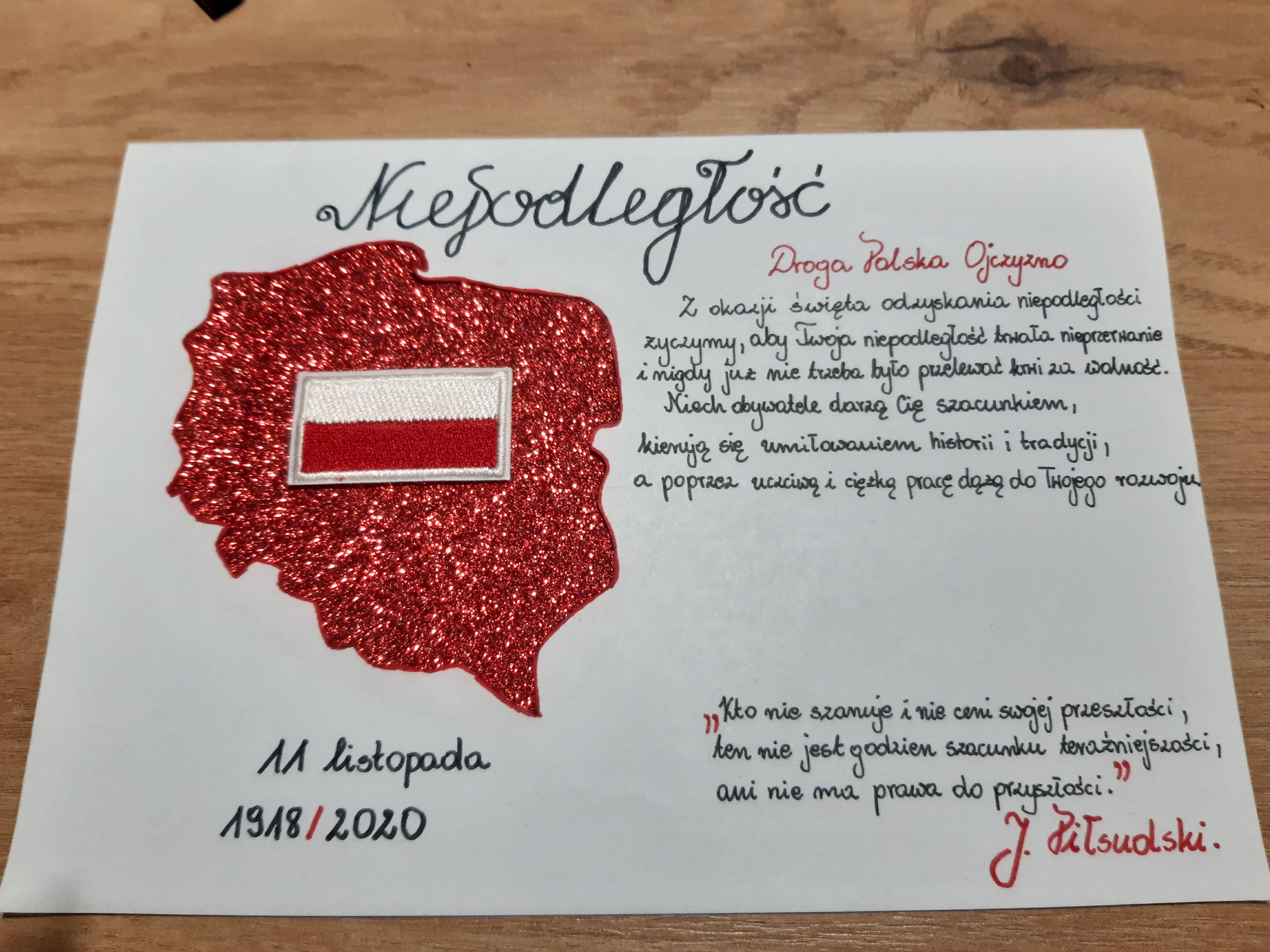 Nasi uczniowie w ramach konkursu organizowanego przez MGOK Żelechów przygotowali ponad 40 kartek z okazji 102. rocznicy odzyskania przez Polskę Niepodległości.