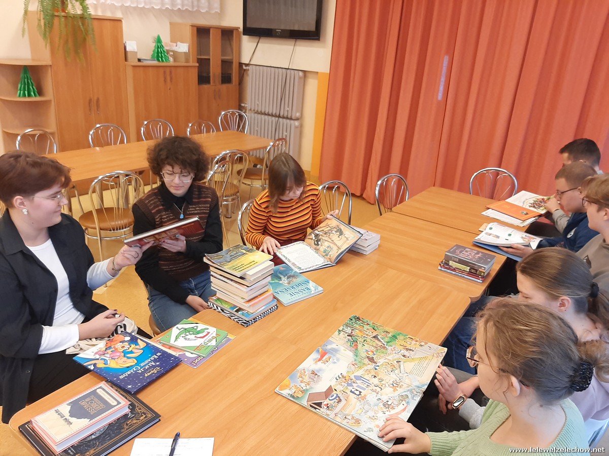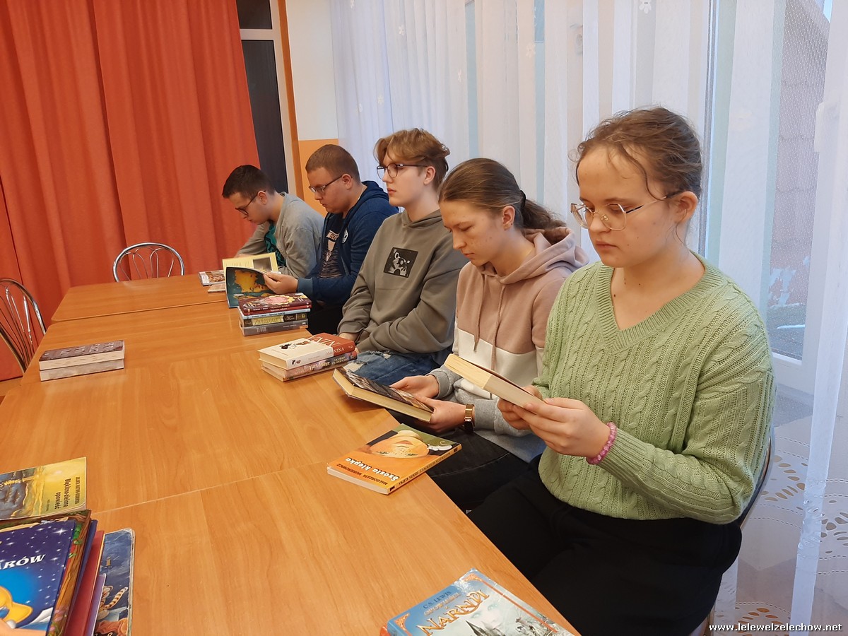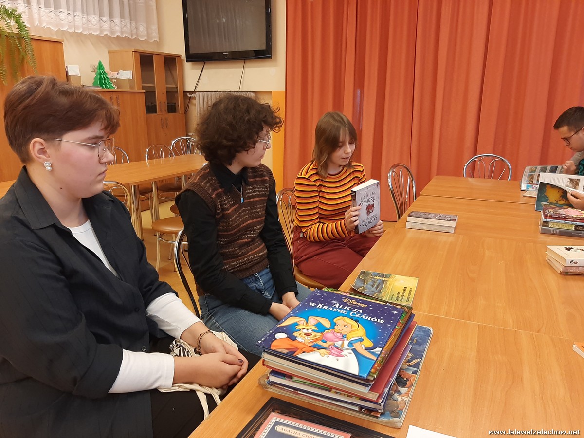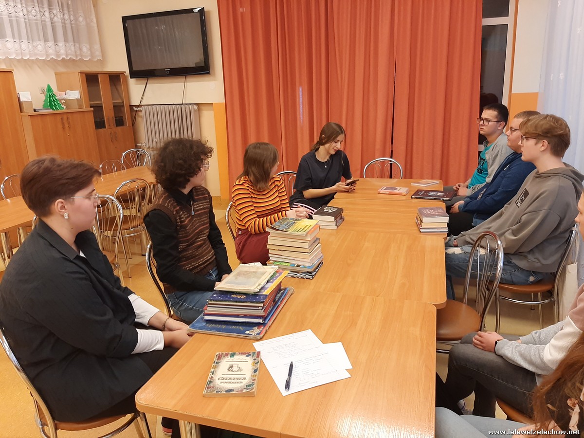W zajmujący sposób o literaturze rozmawiali: Piotr Chmielewski, Natalia Goźlińska, Anna Gula, Dominika Król, Krystian Miszkurka, Kacper Miszta, Agata Rutkowska, Anita Osińska, Wiktoria Siarkiewicz, Wiktoria Turkowska i opiekunka koła p. Magdalena Woźniak.