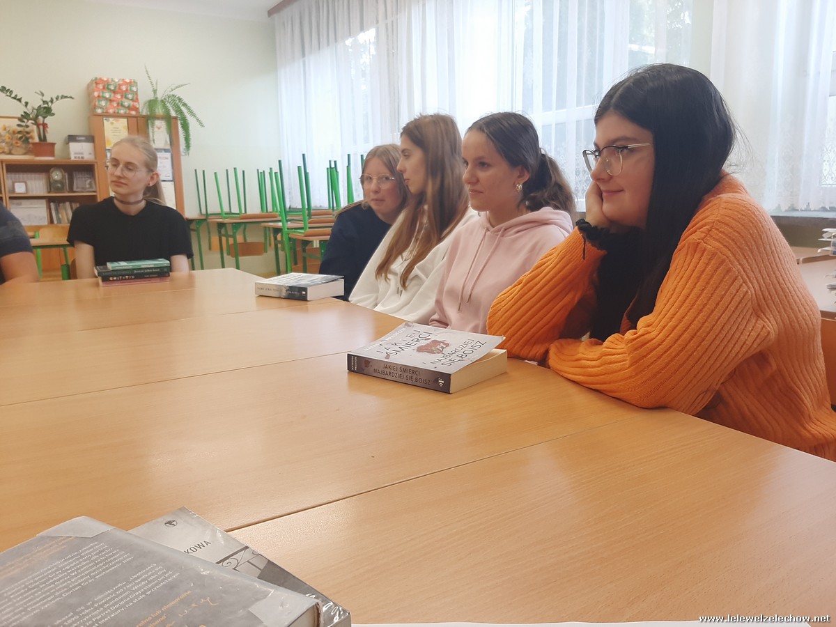Mottem naszego spotkania były słowa Umberta Eco: „Nie zdajemy sobie z tego sprawy, ale nasz skarb – w porównaniu z analfabetą (…) – to fakt, że on przeżywa i przeżyje tylko swoje życie, a my przeżyliśmy ich mnóstwo.” O książkach rozmawiali: Aleksandra Kołodziejek, Klaudia Misiak, Krystian Miszkurka, Kacper Miszta, Filip Osial, Katarzyna Osińska, Agata Rutkowska, Klaudia Rzeska i Zofia Woźniak.