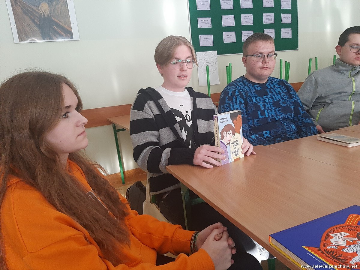 Jak widać, nasi uczniowie przeczą powszechnej opinii, że młodzi ludzie nie czytają. Na każdym spotkaniu prezentują wiele interesujących dzieł literackich, o których potrafią w zajmujący sposób opowiadać. Kolejne szansa na porozmawianie o książkach już w marcu. Zapraszamy.