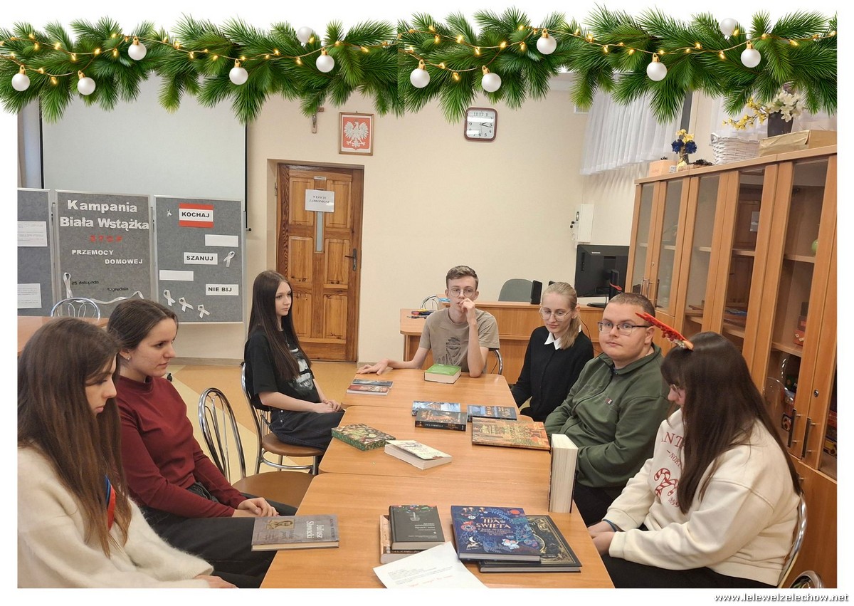 Grudniowe Spotkanie Koła Miłośników Czytania przebiegało w wyjątkowo ciepłym, świątecznym klimacie. Wśród prezentowanych tytułów szczególne miejsce zajęły wypożyczone z biblioteki szkolnej książki o tematyce bożonarodzeniowej, które zakupione zostały dzięki realizowanemu przez szkołę Narodowemu Programowi Rozwoju Czytelnictwa.