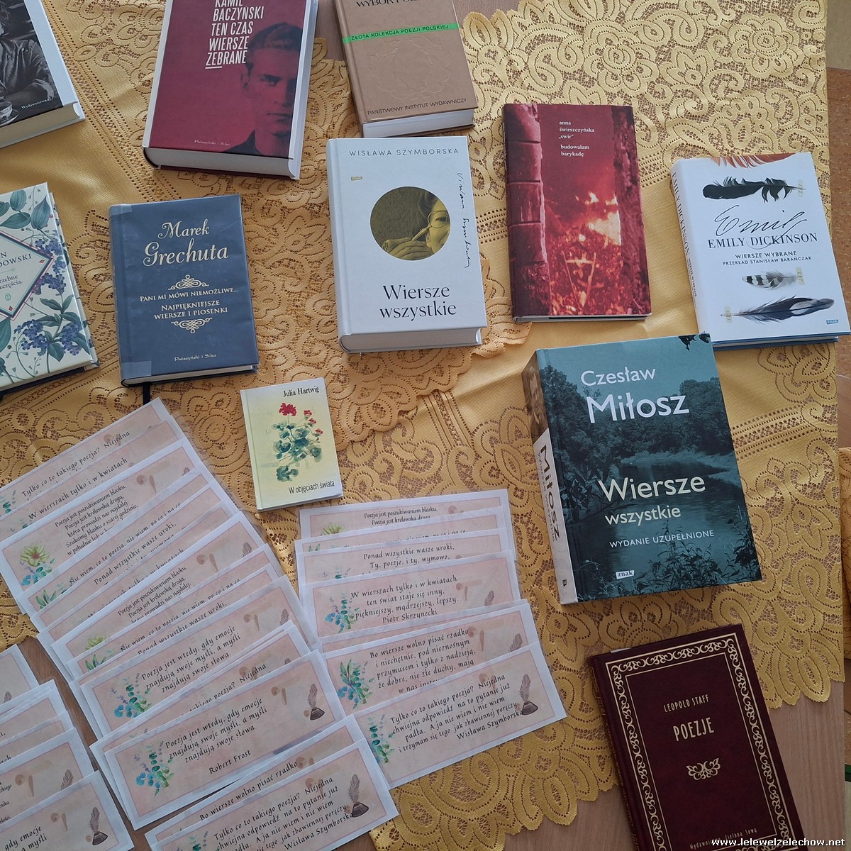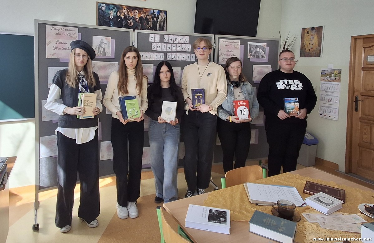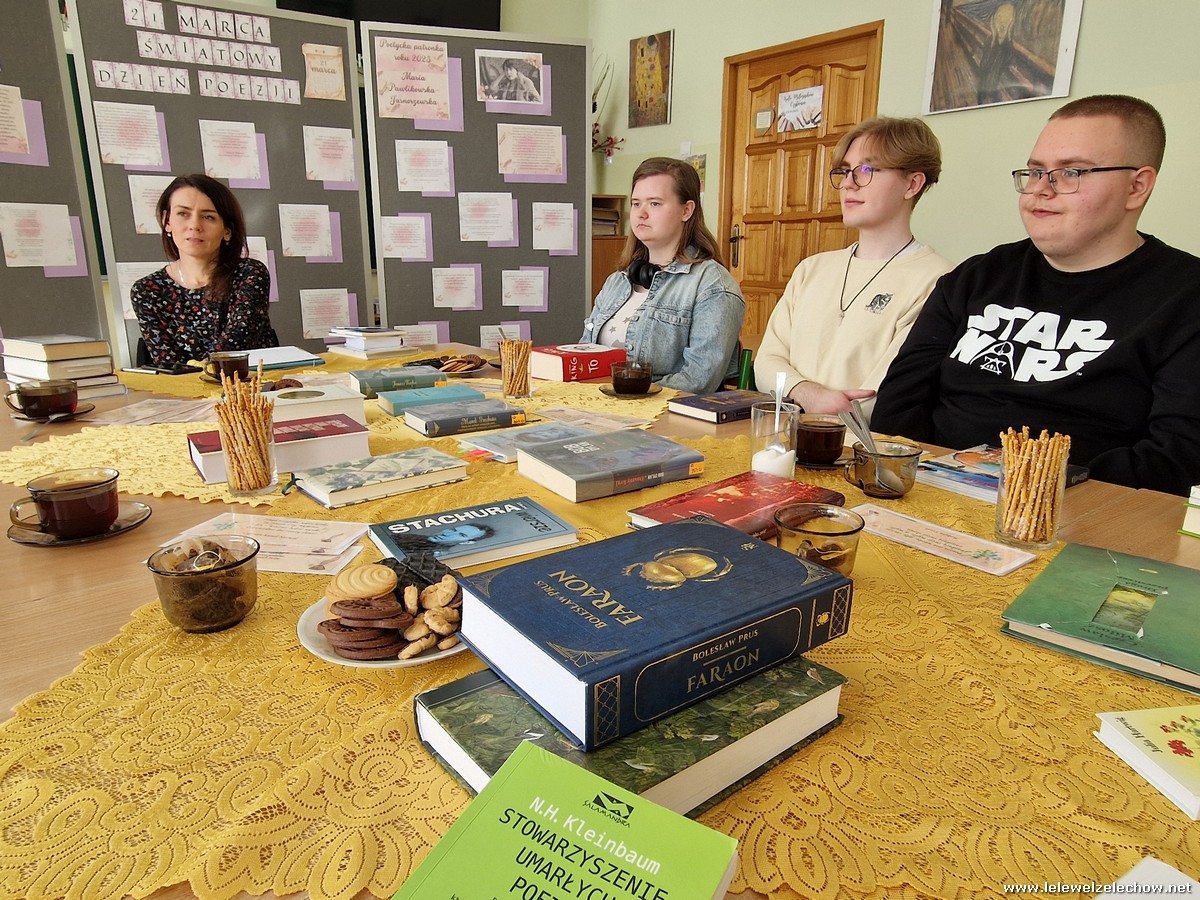 Nancy H. Kleinbaum w „Stowarzyszeniu umarłych poetów” napisała: „Zdradzę wam tajemnicę: nie czytamy poezji dlatego, że jest ładna. Czytamy ją, bo należymy do gatunku ludzkiego, a człowiek ma uczucia. Medycyna, prawo, finanse czy technika to wspaniałe dziedziny, ale żyjemy dla poezji, piękna, miłości”. 21 marca, w Światowym Dniu Poezji, spotkało się nasze szkolne koło czytelnicze , aby rozmawiać o ostatnio przeczytanych książkach, ale przede wszystkim, by zwrócić uwagę na bliską naszym sercom poezję. Poeci, których tomiki przeglądaliśmy i czytaliśmy wybrane wiersze to m.in.: Wisława Szymborska, Anna Świrszczyńska, Sylwia Błękit, Urszula Kozioł, Emily Dickinson, Rupi Kaur, Adam Asnyk, , Bob Dylan, Zbigniew Herbert, Krzysztof Kamil Baczyński, Leopold Staff, Julian Tuwim, Czesław Miłosz, Władysław Bratecki. Wspomnieliśmy też o twórczości poetyckich patronów trwającego roku: Marii Pawlikowskiej-Jasnorzewskiej i Antonim Słonimskim. Gabrysia, podobnie