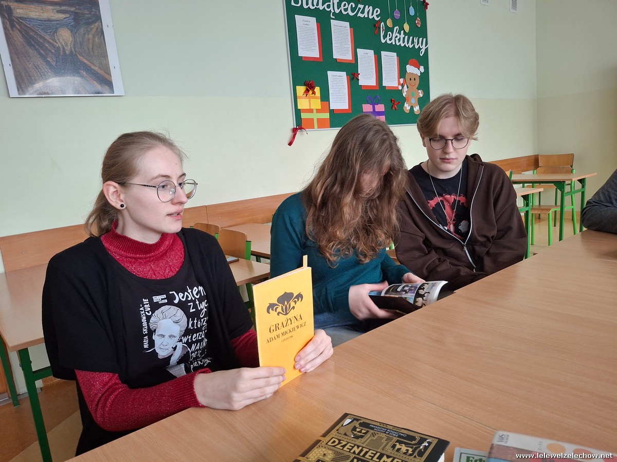 „W książkach jest wszystko. Czytajcie książki, bo uszlachetniają serca, kształcą rozum, hartują wolę i kształtują charakter. Słuchajcie za pośrednictwem książek ludzi mądrych, im częściej, tym lepiej” – słowami Jana Wantuły rozpoczęliśmy kolejne spotkanie szkolnego koła czytelniczego, które odbyło się 22 stycznia 2025 r.