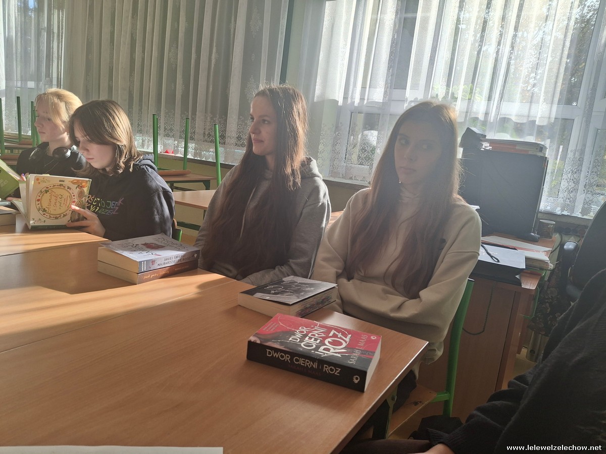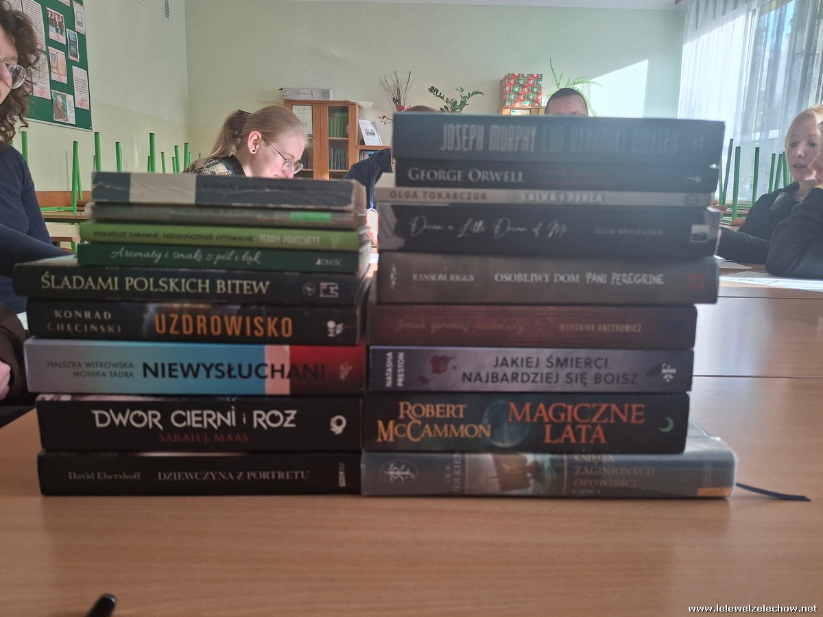 Przyglądaliśmy się również liście ulubionych książek dla młodzieży, która powstała w wyniku Ogólnopolskich Wyborów Książek przeprowadzonych wiosną. Nasza szkoła brała udział w tej ankiecie w ramach współpracy z Miejsko-Gminną Biblioteką Publiczną w Żelechowie. Niektóre utwory umieszczone w tym spisie bardzo nas zdziwiły, z większością jednak się zgodziliśmy i potwierdzamy, że warto po nie sięgnąć.