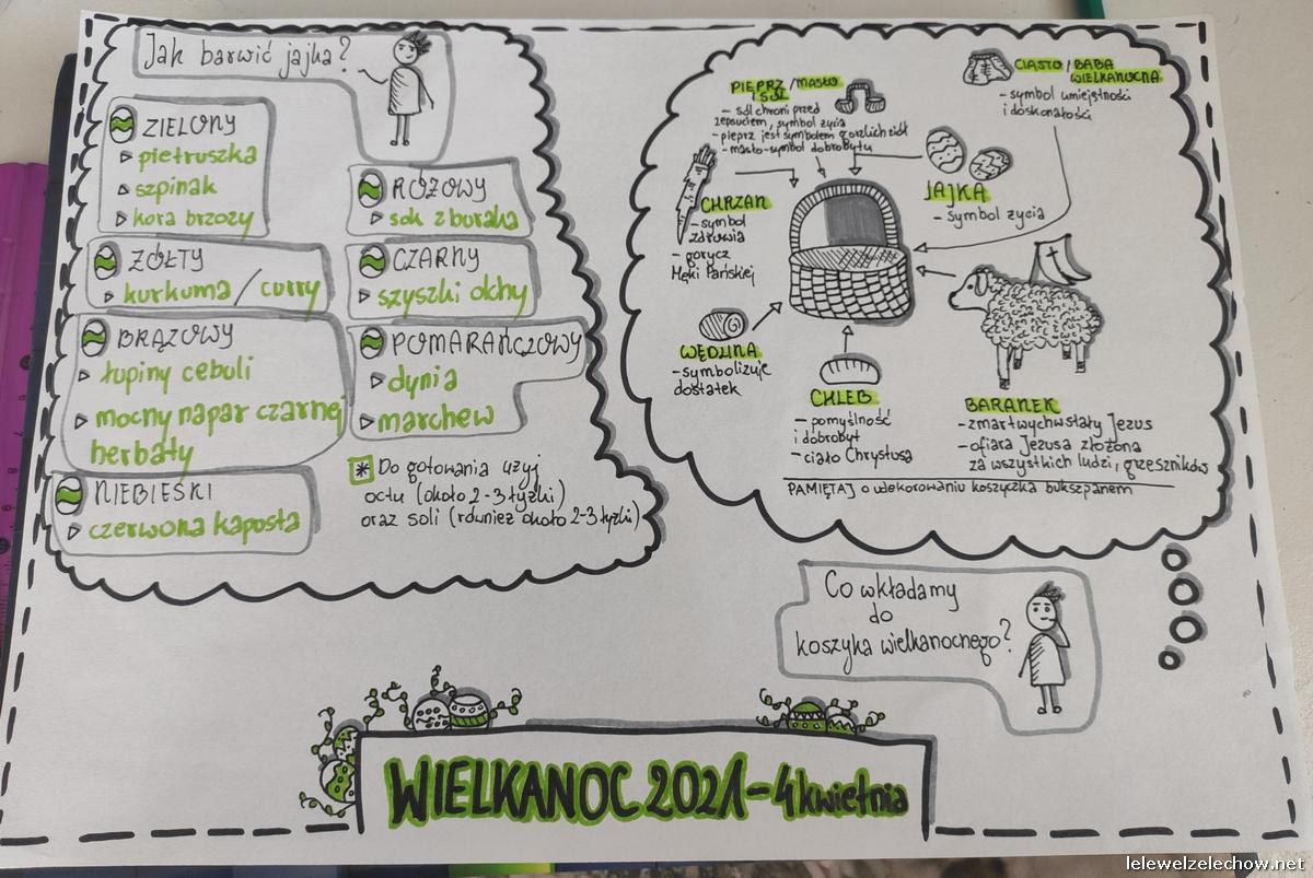 W naszej szkole od października działa Koło Myślograficzne. Zrzesza osoby z różnych klas, które chcą się nauczyć oraz doskonalić umiejętność tworzenia notatek graficznych / wizualnych. Kierujemy się zasadą podwójnego kodowania i najnowszymi trendami w neurodydaktyce. W czasie zajęć (początkowo stacjonarnych w świetlicy szkolnej, a w czasie zdalnego nauczania w specjalnym zespole w aplikacji MS Teams) poznajemy różne składowe sketchnotek i ćwiczymy je. Od czasu do czasu pojawia się też temat liternictwa. Zastanawiamy się, jak wyróżnić słowa lub fragmenty tekstu notatki tak, aby były atrakcyjne dla ludzkiego mózgu, a co za tym idzie- aby je łatwo zapamiętał. Uczymy się też, przedstawiać w formie notatki wizualnej tekstów/ artykułów. Zdobyte umiejętności stosujemy następnie w notatkach przedmiotowych, w planerach czy też w tworzeniu atrakcyjnych materiałów okolicznościowych. Koło prowadzi p. Agnieszka Osial.