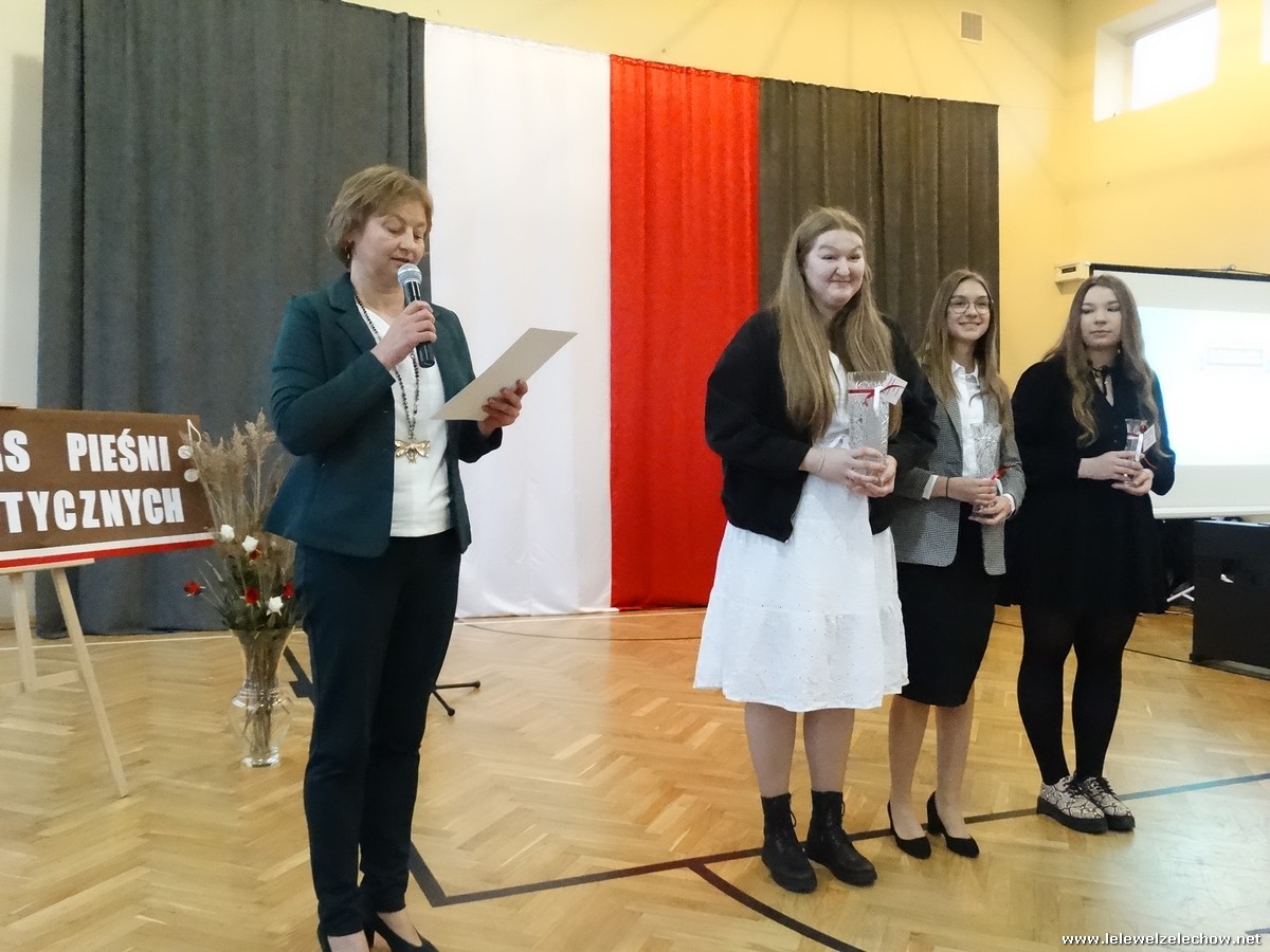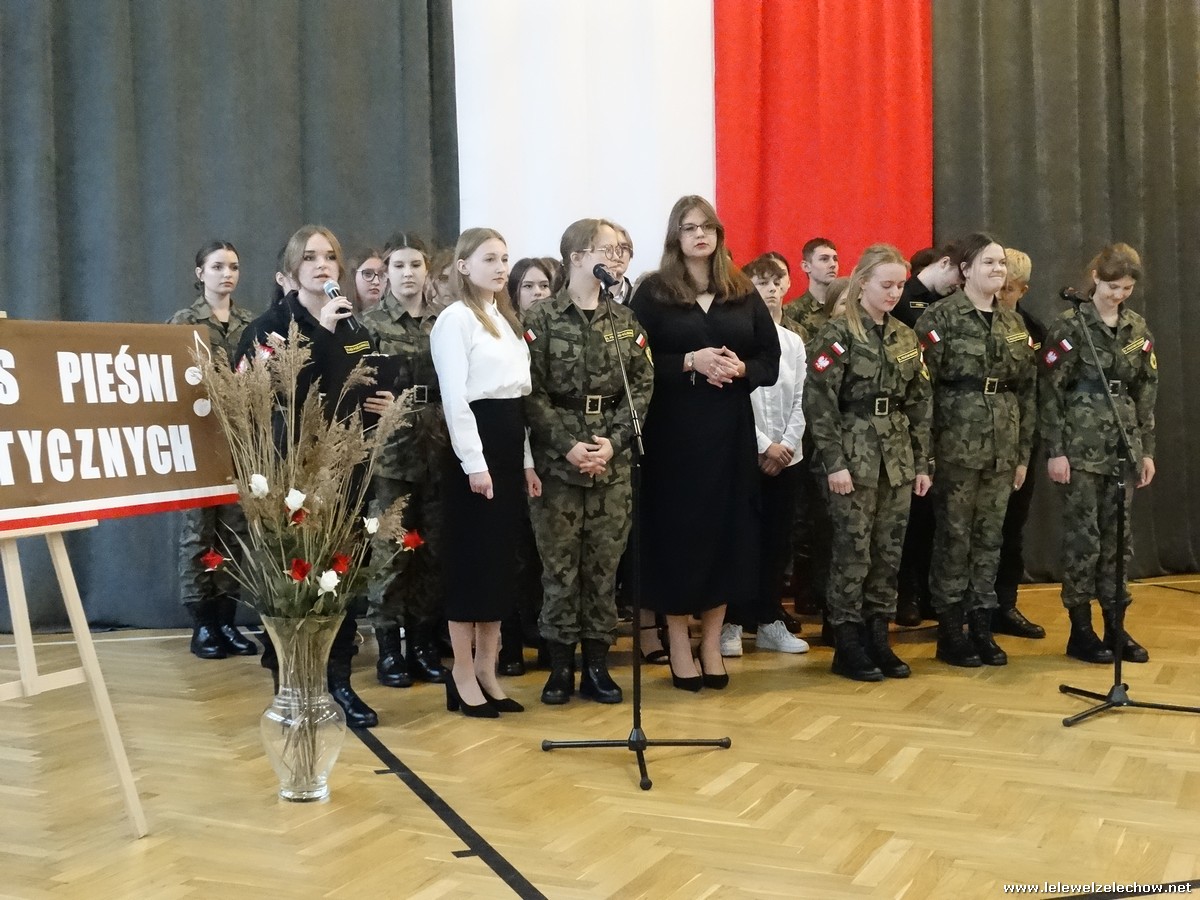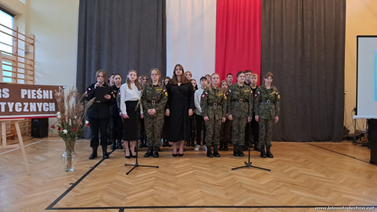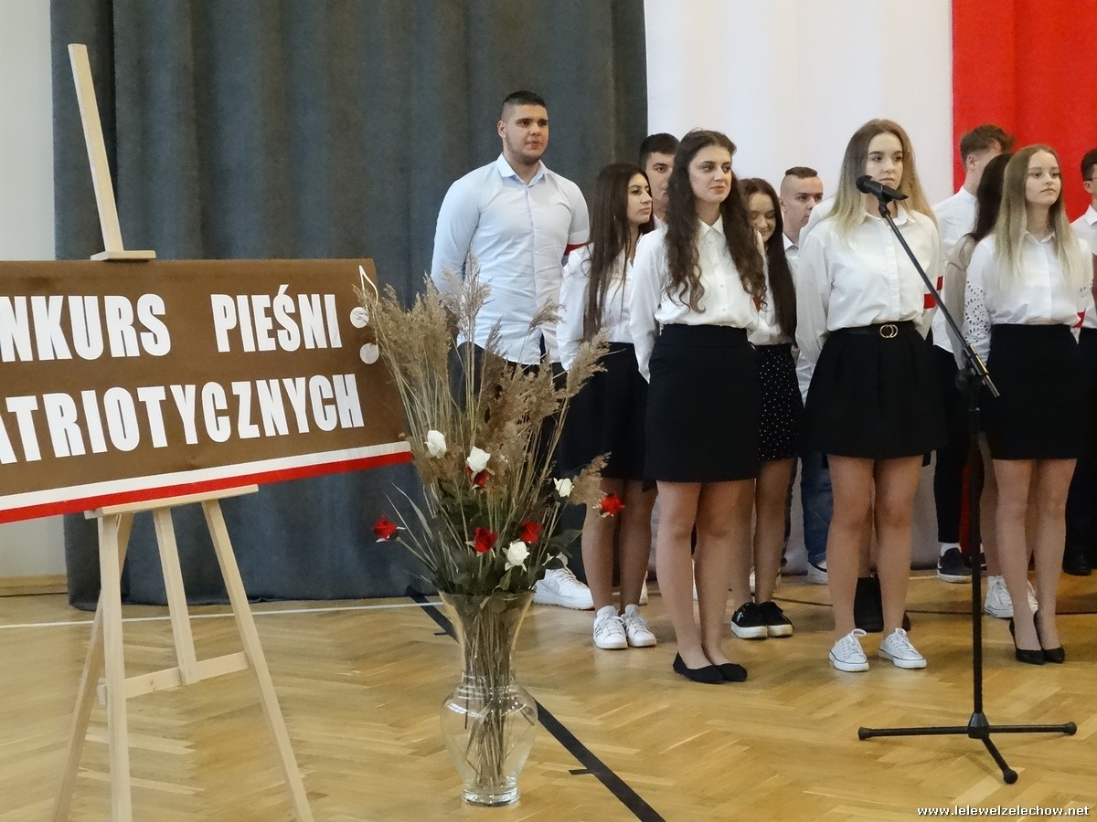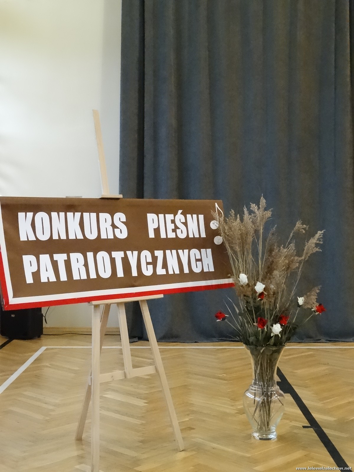 Konkurs Pieśni Patriotycznych to wieloletnia tradycja naszej szkoły. Jest nawet starszy od Święta Szkoły, bo odnotowano tego typu konkurs już w roku 1980! Po krótkiej przerwie został przywrócony przez Samorząd Uczniowski i od tej pory jest przez niego organizowany. Podobnie było w tym roku. Nad sprawnym przebiegiem i organizacją całości wydarzenia czuwały Patrycja, Oliwia D. i Oliwia J. przy nieocenionym wsparciu chłopców z 3b zajmujących się nagłośnieniem.