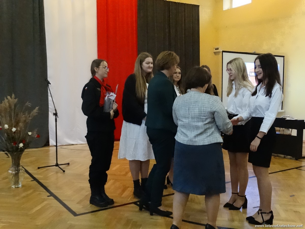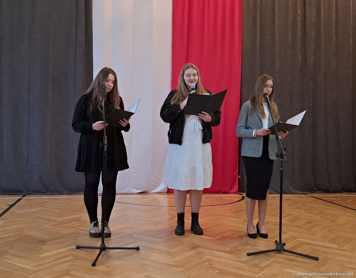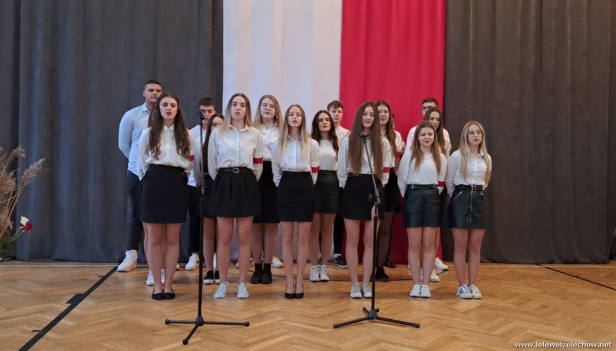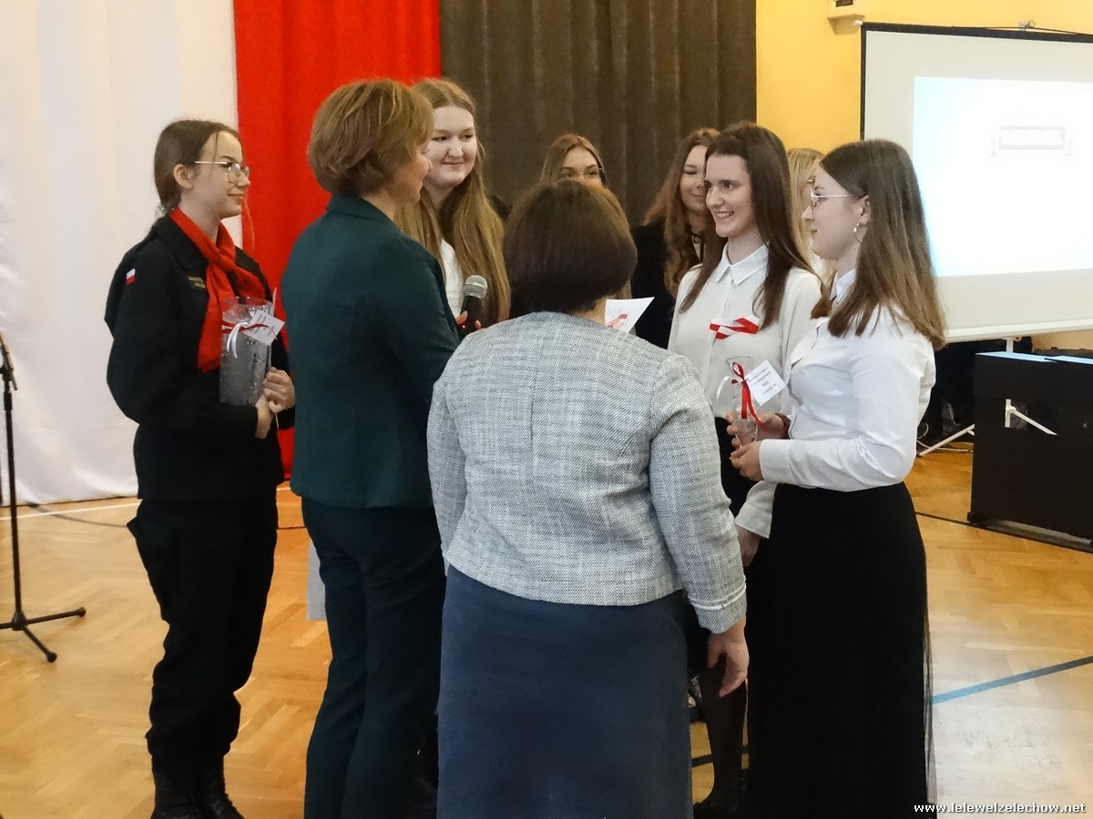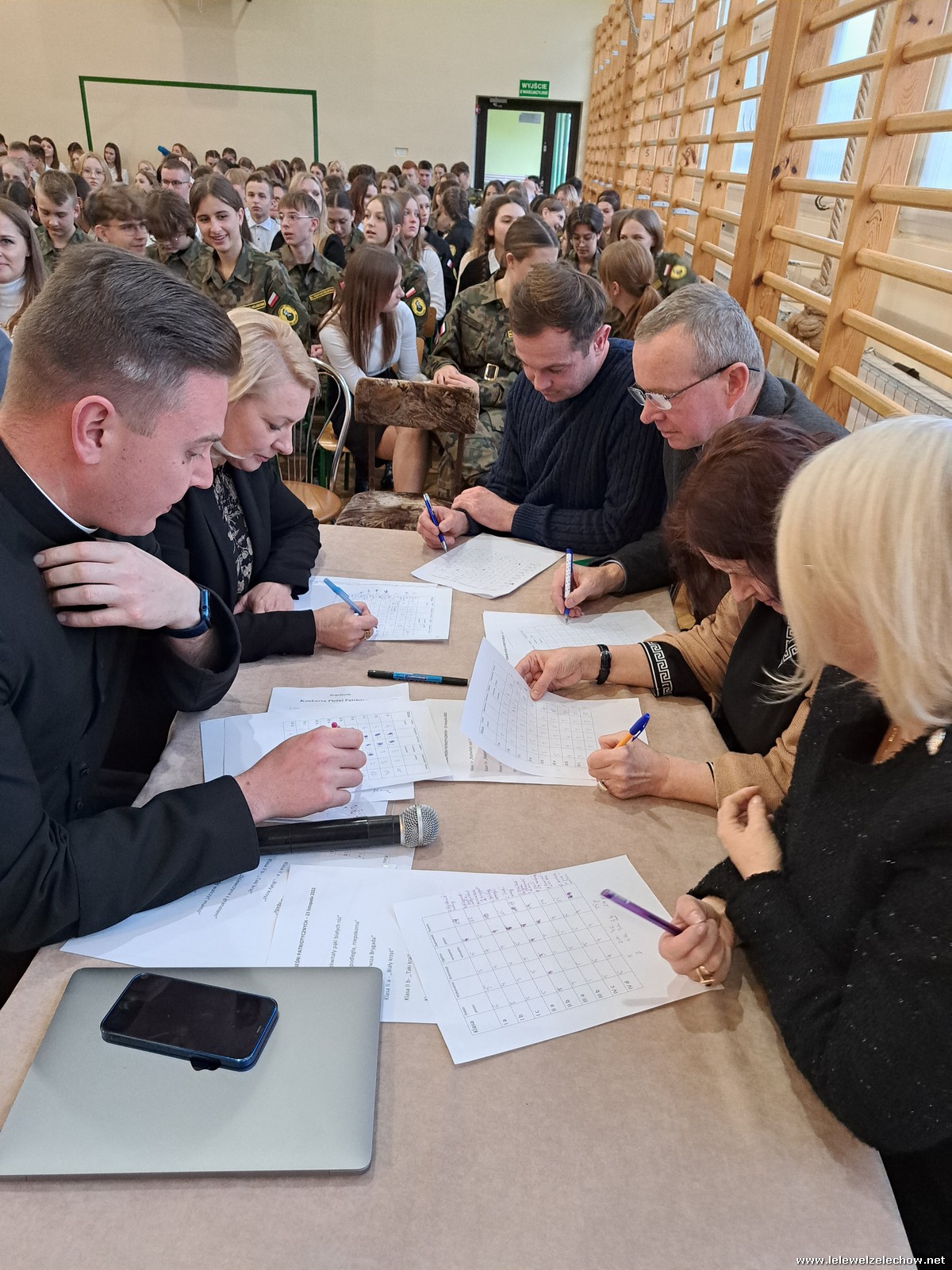 Konkurs Pieśni Patriotycznych to wieloletnia tradycja naszej szkoły. Jest nawet starszy od Święta Szkoły, bo odnotowano tego typu konkurs już w roku 1980! Po krótkiej przerwie został przywrócony przez Samorząd Uczniowski i od tej pory jest przez niego organizowany. Podobnie było w tym roku. Nad sprawnym przebiegiem i organizacją całości wydarzenia czuwały Patrycja, Oliwia D. i Oliwia J. przy nieocenionym wsparciu chłopców z 3b zajmujących się nagłośnieniem.