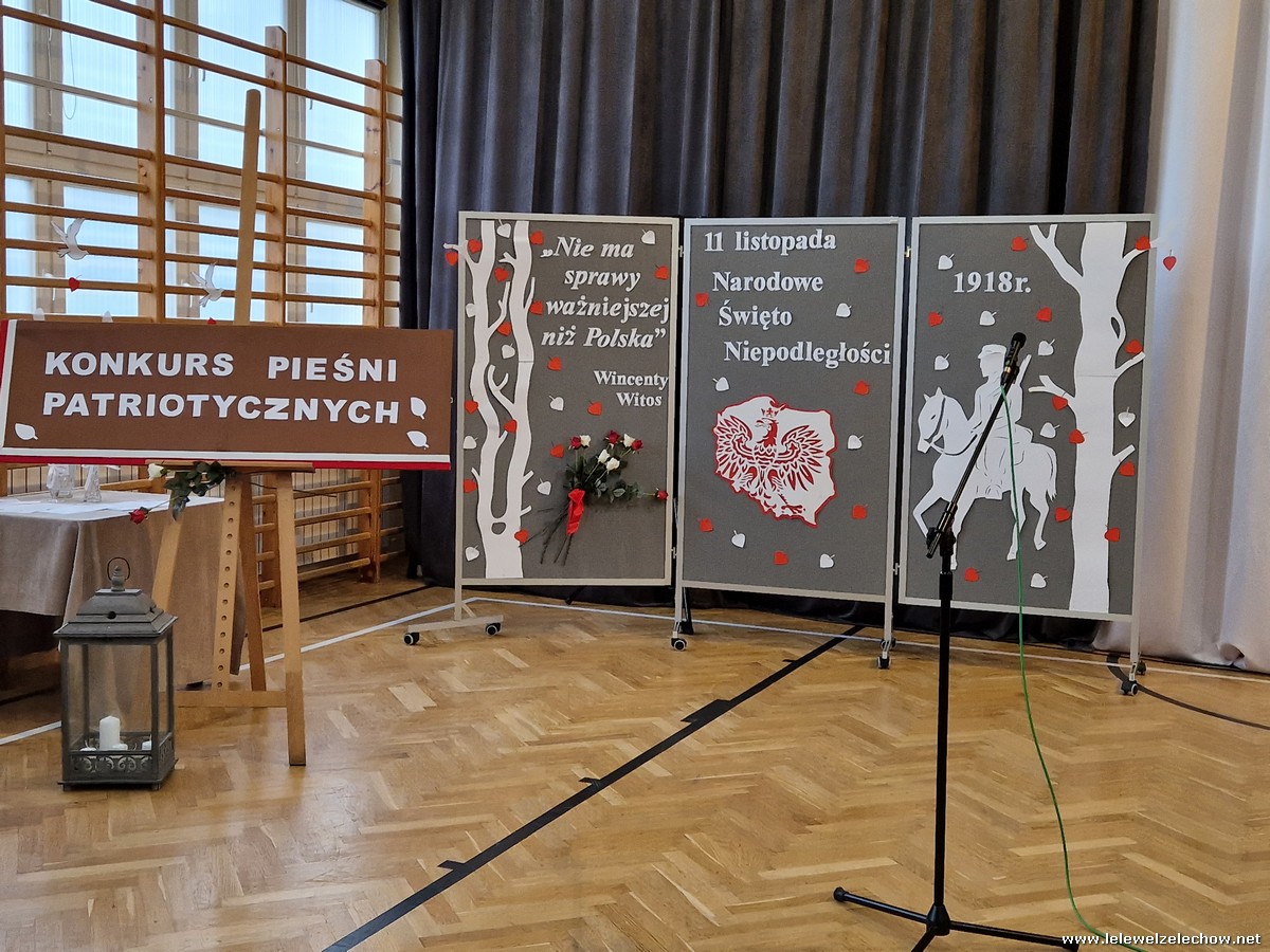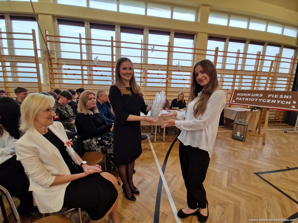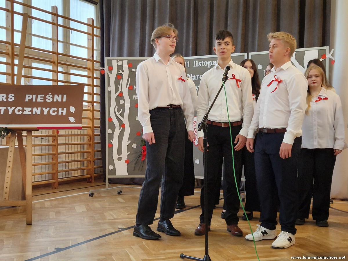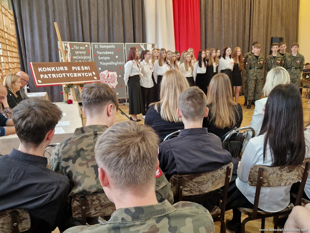 8 listopada odbył się coroczny Konkurs Pieśni Patriotycznych. Każda z klas zaprezentowała się wspaniale ale zwycięzca mógł być tylko jeden! Jury jednogłośnie oceniło najwyżej występ klasy 3a, która wykonała utwór ,,Dziś idę walczyć mamo”. Drugie miejsce zajęła klasa 4a z utworem ,,Niepodległa, niepokorna”. Na trzecim miejscu uplasowała się klasa 1a wykonując utwór ,,Dziewczyna z granatem”. Zdobywcy trzech pierwszych miejsc otrzymali z rąk pani Dyrektor Sylwii Tomaszek dyplomy i puchary. Pani Dyrektor pogratulowała zwycięzcom pięknych wykonań oraz podziękowała za udział wszystkim pozostałym klasom.