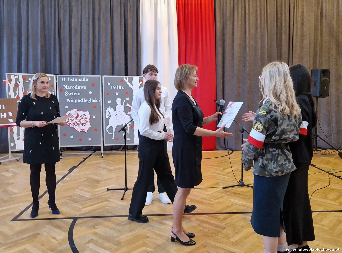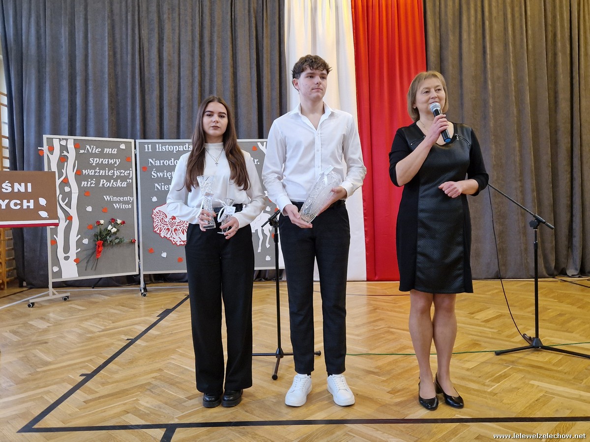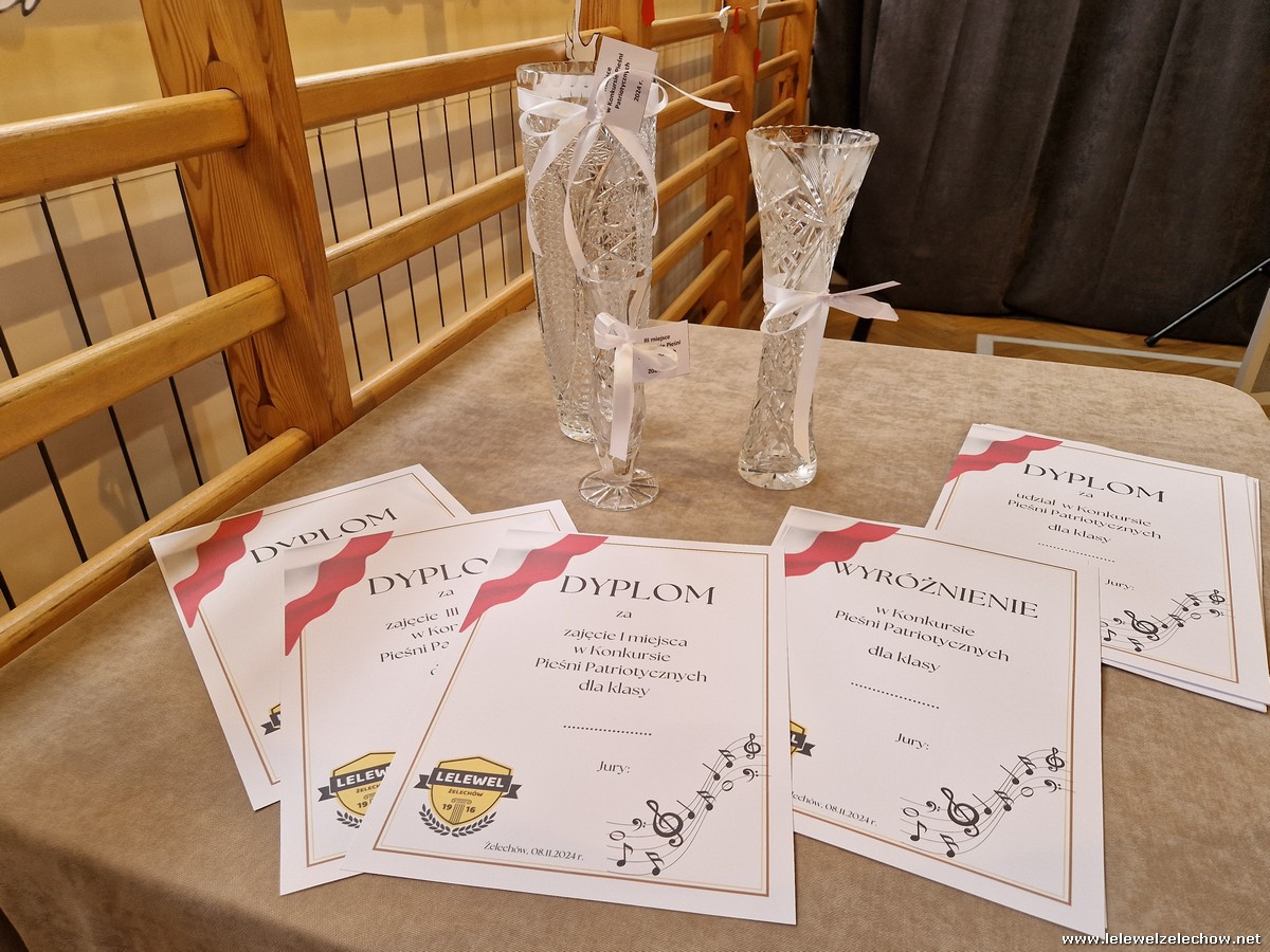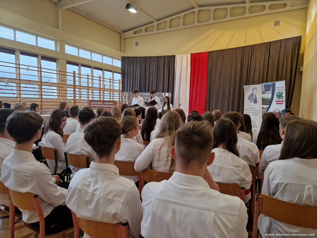 8 listopada odbył się coroczny Konkurs Pieśni Patriotycznych. Każda z klas zaprezentowała się wspaniale ale zwycięzca mógł być tylko jeden! Jury jednogłośnie oceniło najwyżej występ klasy 3a, która wykonała utwór ,,Dziś idę walczyć mamo”. Drugie miejsce zajęła klasa 4a z utworem ,,Niepodległa, niepokorna”. Na trzecim miejscu uplasowała się klasa 1a wykonując utwór ,,Dziewczyna z granatem”. Zdobywcy trzech pierwszych miejsc otrzymali z rąk pani Dyrektor Sylwii Tomaszek dyplomy i puchary. Pani Dyrektor pogratulowała zwycięzcom pięknych wykonań oraz podziękowała za udział wszystkim pozostałym klasom.