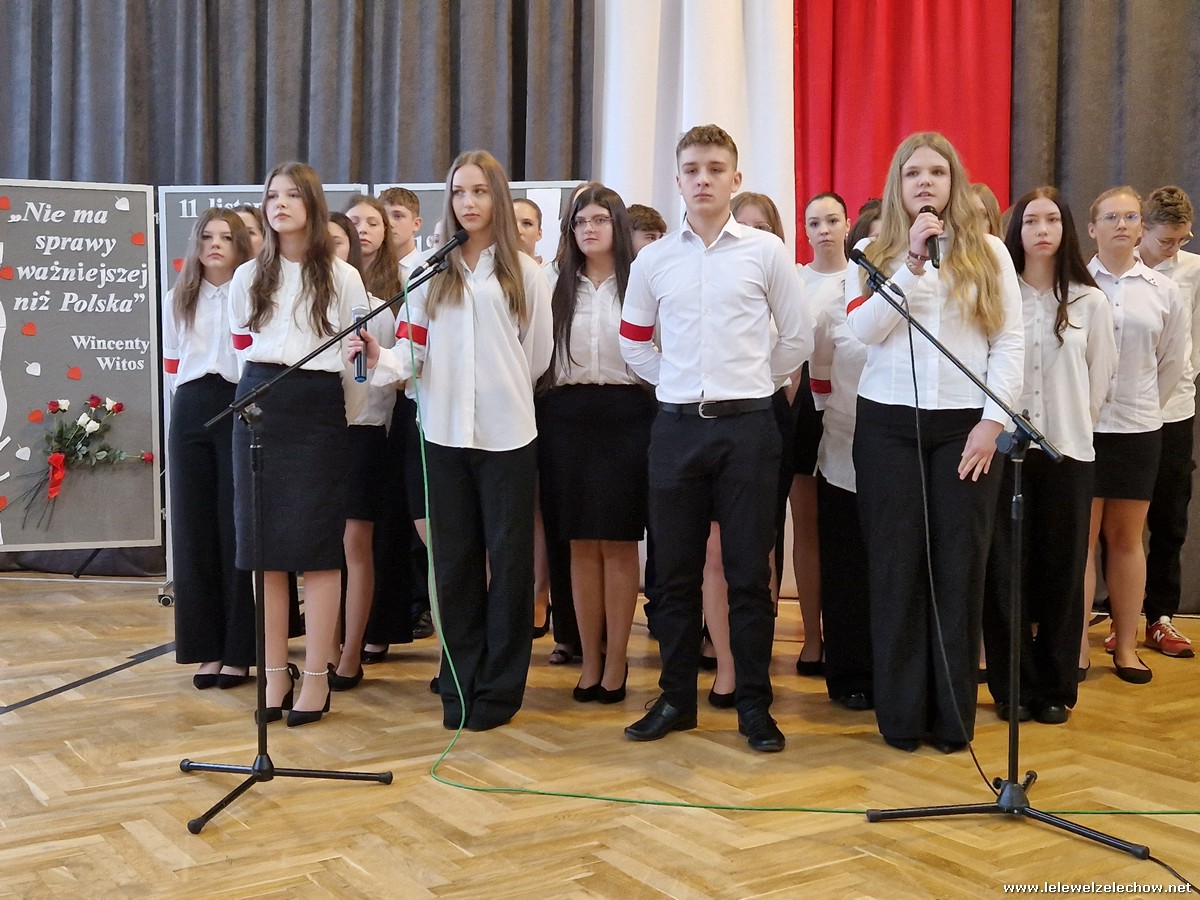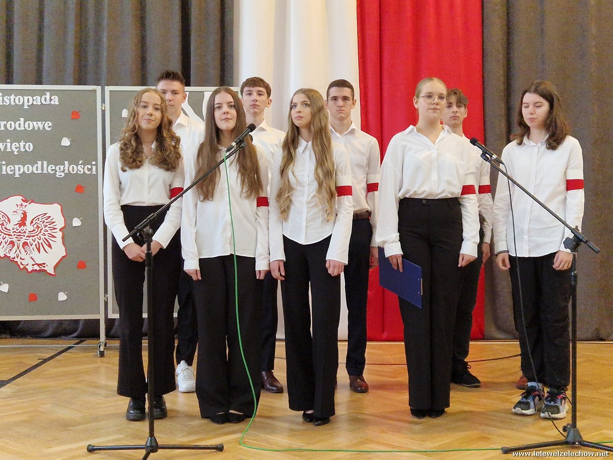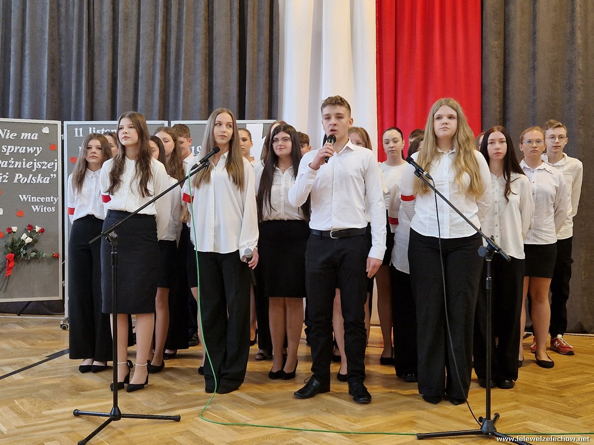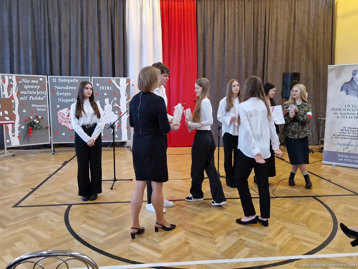 8 listopada odbył się coroczny Konkurs Pieśni Patriotycznych. Każda z klas zaprezentowała się wspaniale ale zwycięzca mógł być tylko jeden! Jury jednogłośnie oceniło najwyżej występ klasy 3a, która wykonała utwór ,,Dziś idę walczyć mamo”. Drugie miejsce zajęła klasa 4a z utworem ,,Niepodległa, niepokorna”. Na trzecim miejscu uplasowała się klasa 1a wykonując utwór ,,Dziewczyna z granatem”. Zdobywcy trzech pierwszych miejsc otrzymali z rąk pani Dyrektor Sylwii Tomaszek dyplomy i puchary. Pani Dyrektor pogratulowała zwycięzcom pięknych wykonań oraz podziękowała za udział wszystkim pozostałym klasom.