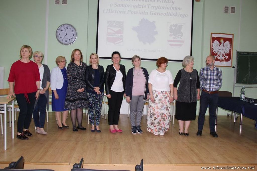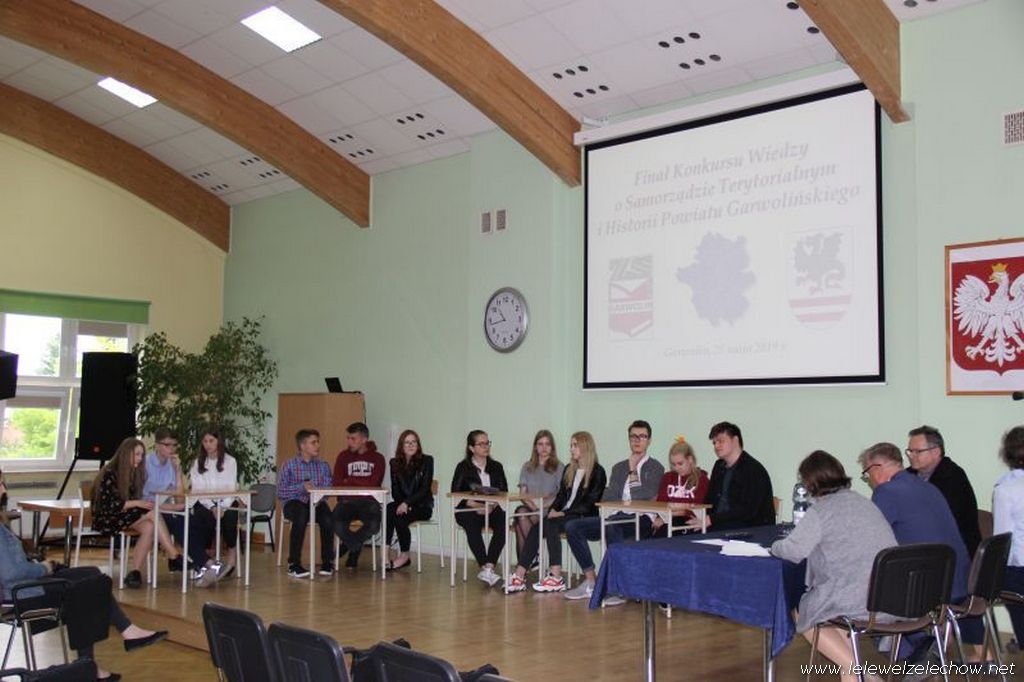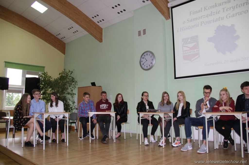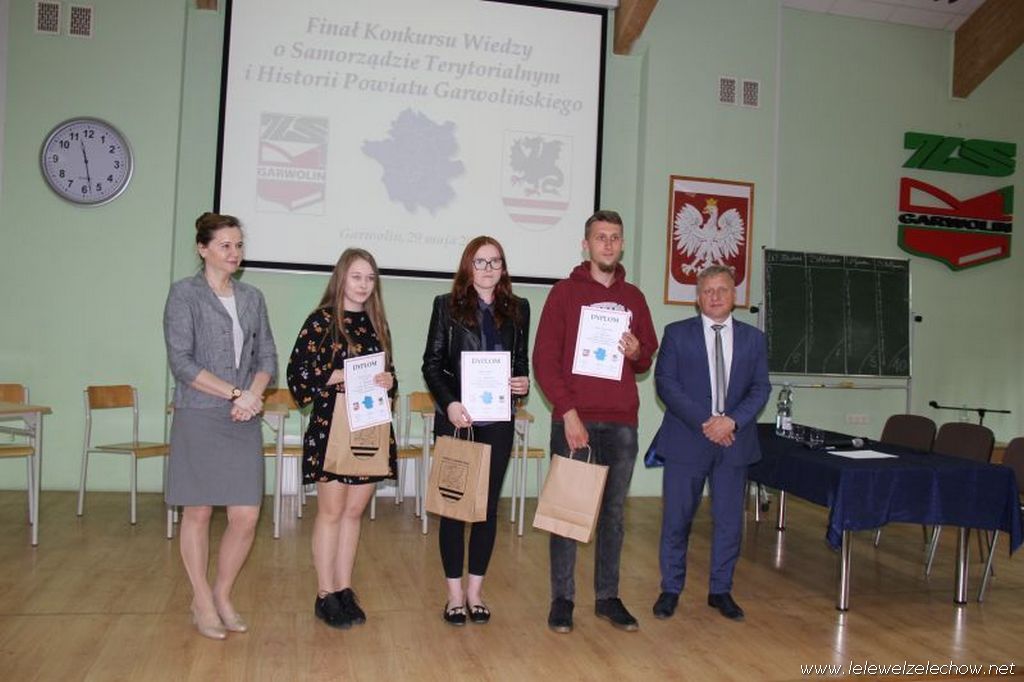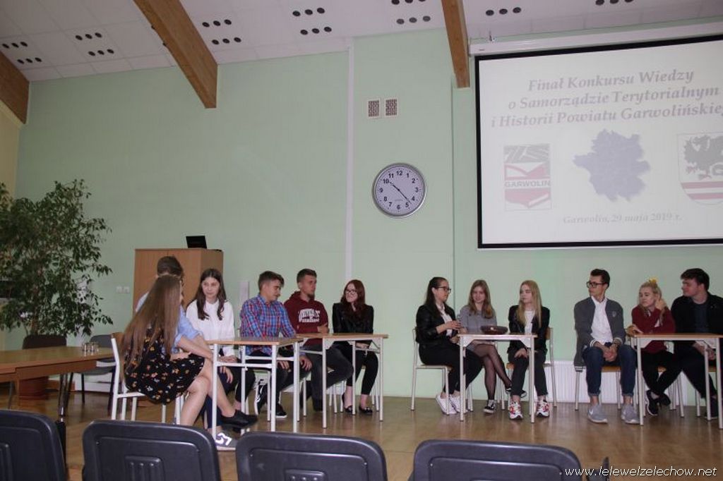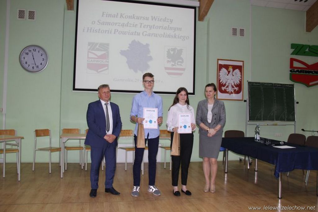 29 maja drużyna liceum w składzie : Angelika Miszkurka, Gabriela Kaszuba, Jędrzej Kowalski uczestniczyła w Finale Konkursu Wiedzy o Samorządzie Terytorialnym i Historii Powiatu Garwolińskiego. Po etapie pisemnym znajdowali się na pierwszym miejscu. W zaciętej rywalizacji etapu ustnego niestety nie udało się zająć miejsca na podium, jednak każdy z uczestników zajął czołowe miejsca w kategorii indywidualnej: Angelika Miszkurka, Jędrzej Kowalski - 1 miejsce, Gabriela Kaszuba - 3 miejsce. Uczniów do konkursu przygotowała Pani Urszula Kobielus.