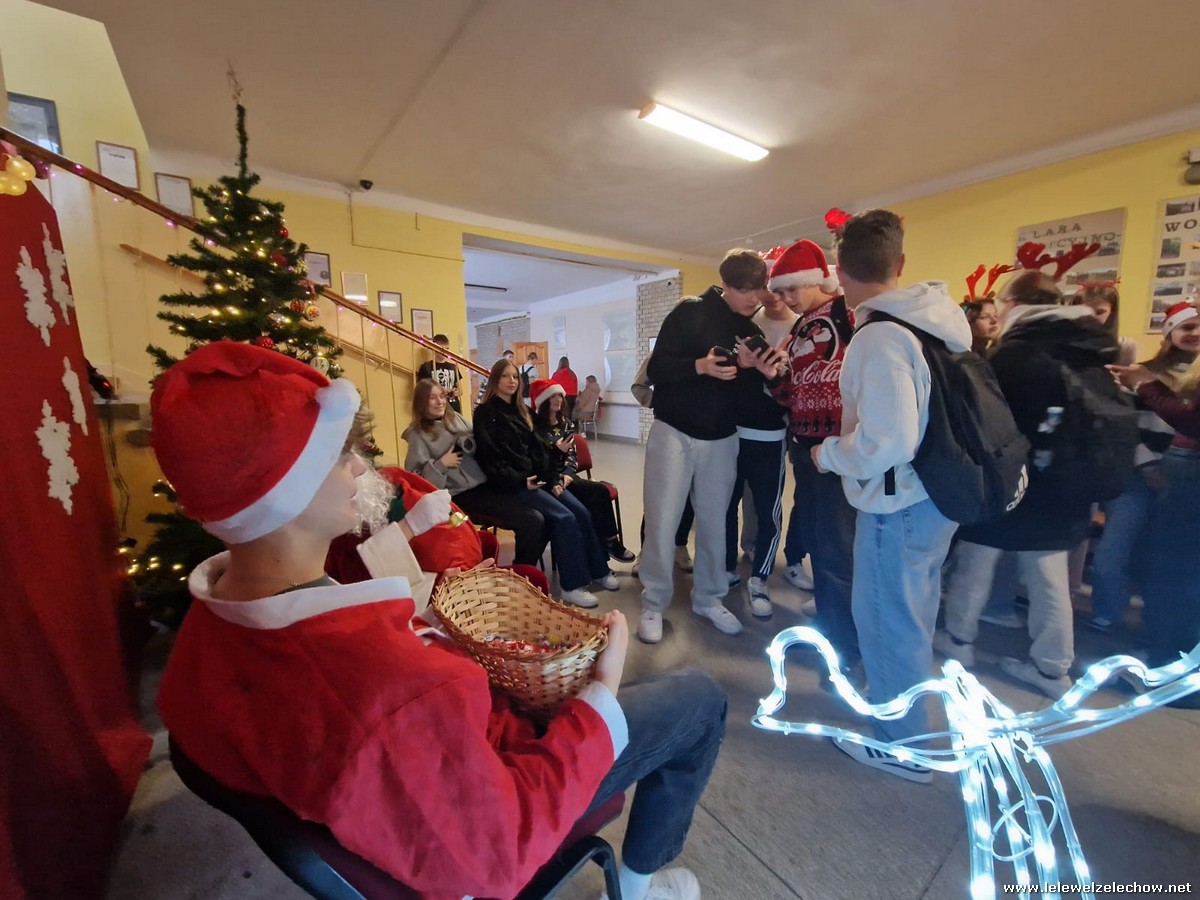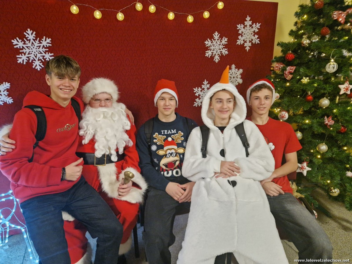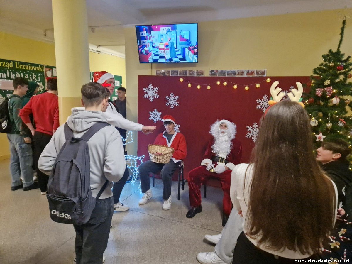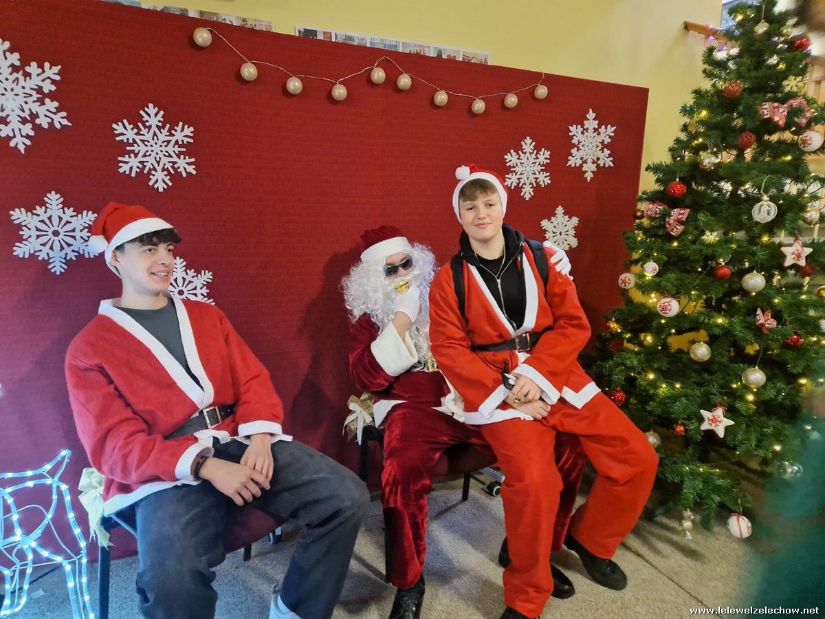 Jednak jeden był prawdziwy i to do niego garnęli się uczniowie i...kadra Równie oblegana była mikołajkowa ścianka Zapraszamy na fotorelację Mikołajki w LELEWELU cz.2