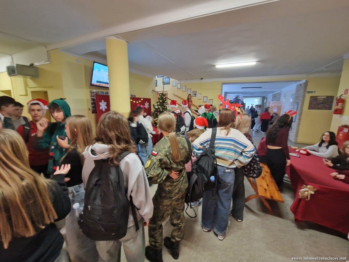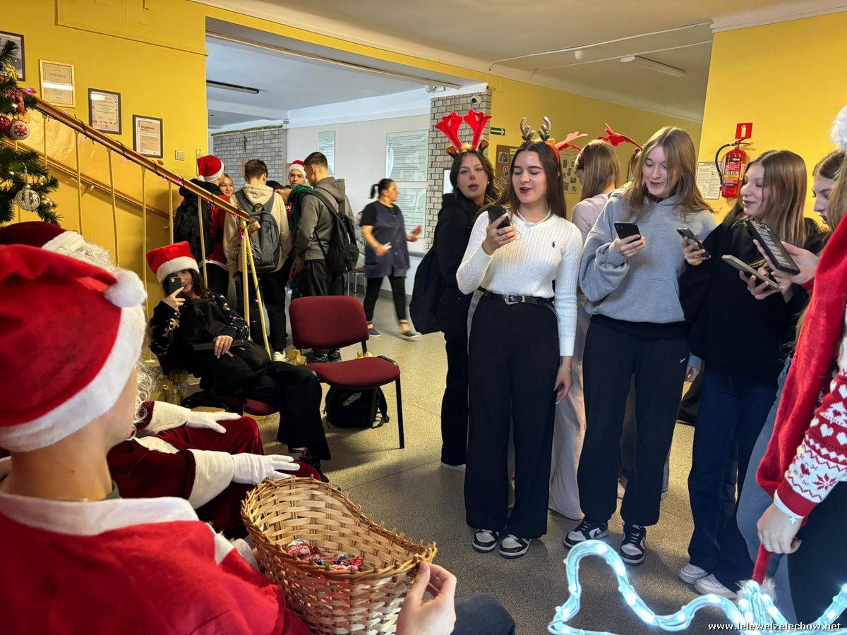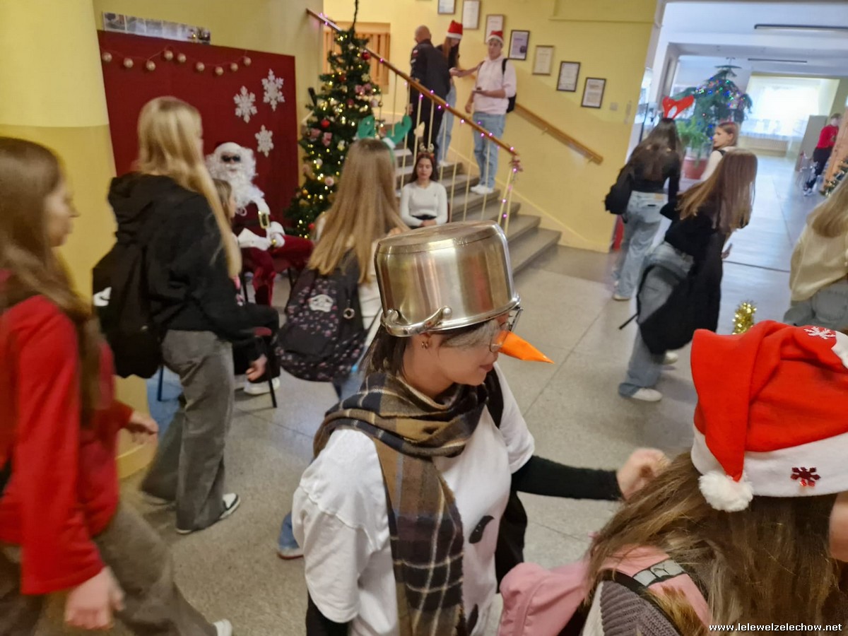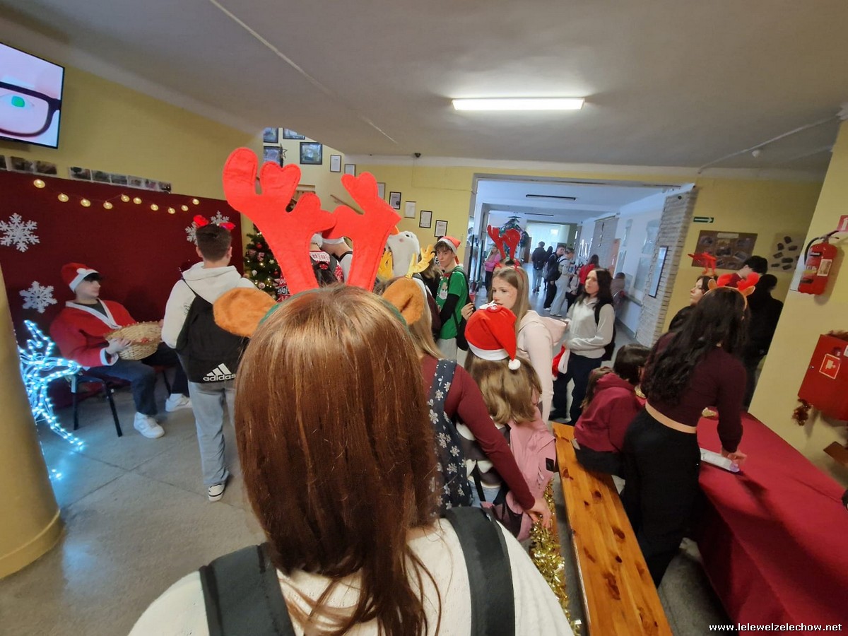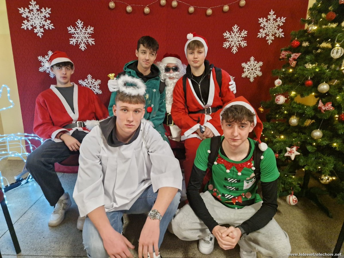 Jednak jeden był prawdziwy i to do niego garnęli się uczniowie i...kadra Równie oblegana była mikołajkowa ścianka Zapraszamy na fotorelację Mikołajki w LELEWELU cz.2