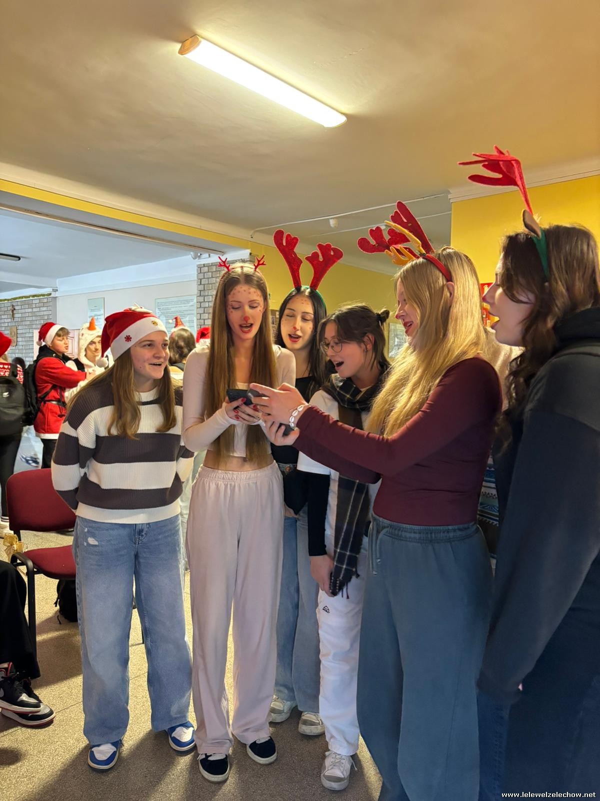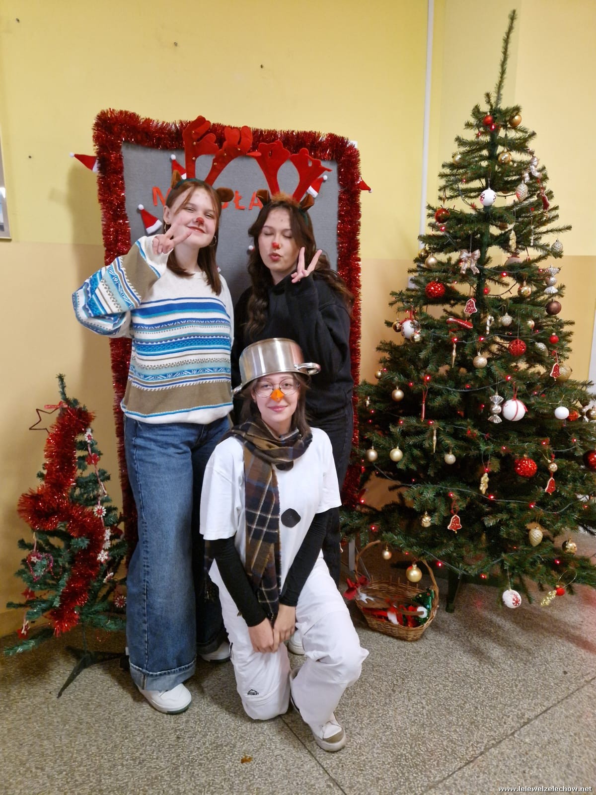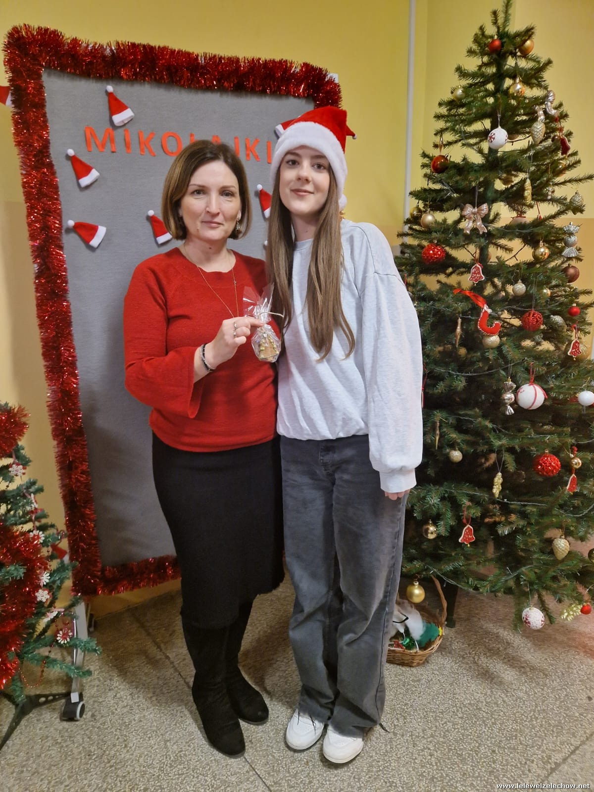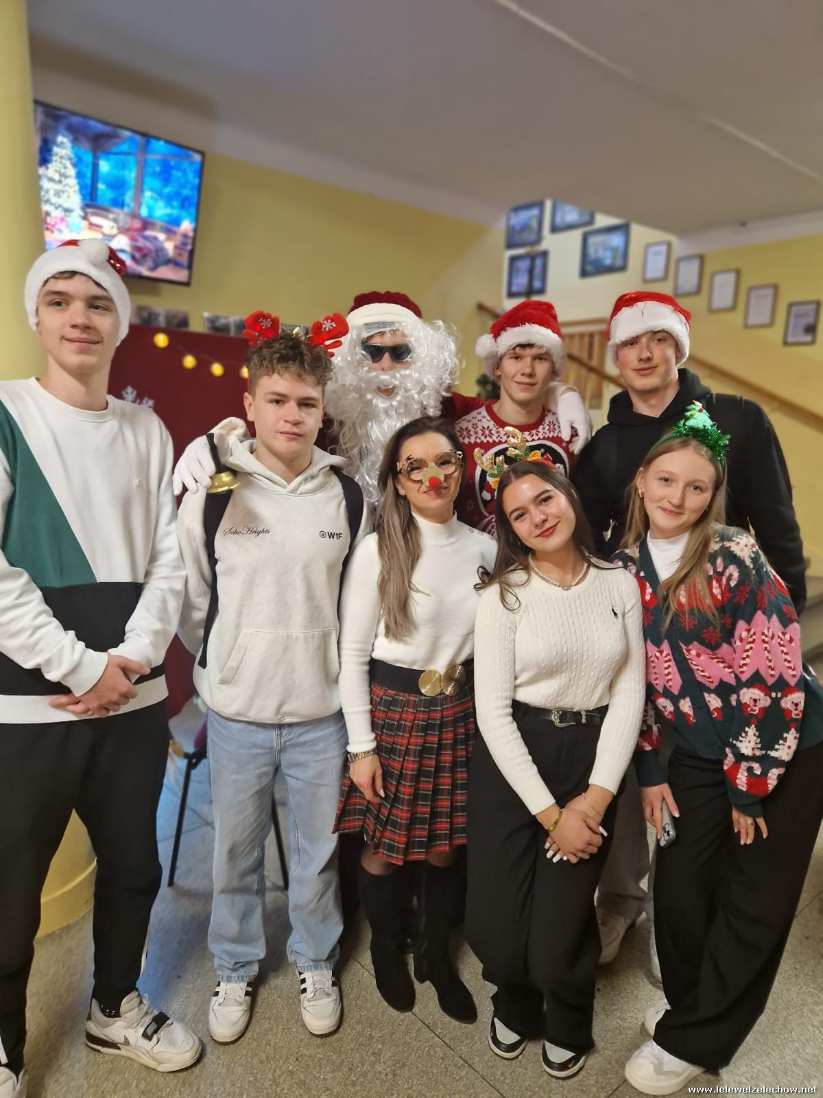 Jednak jeden był prawdziwy i to do niego garnęli się uczniowie i...kadra Równie oblegana była mikołajkowa ścianka Zapraszamy na fotorelację Mikołajki w LELEWELU cz.2