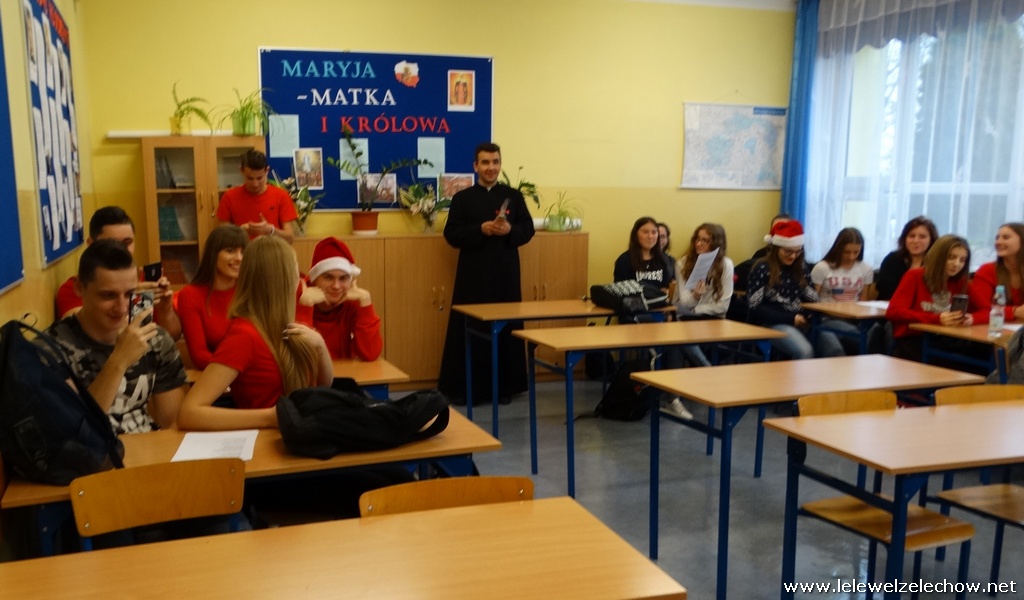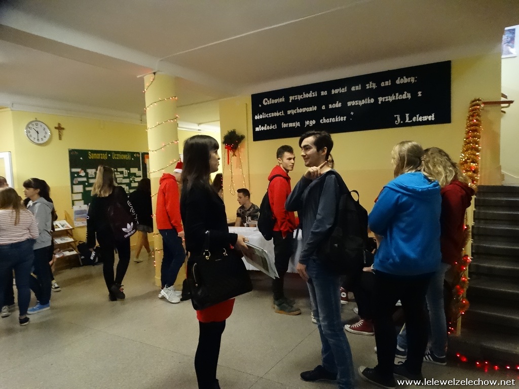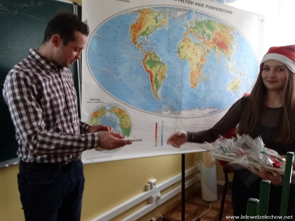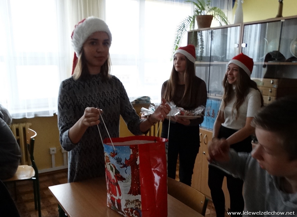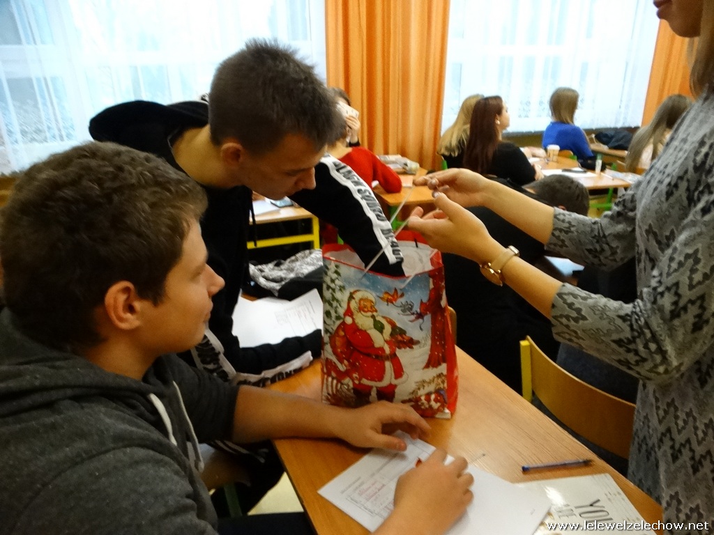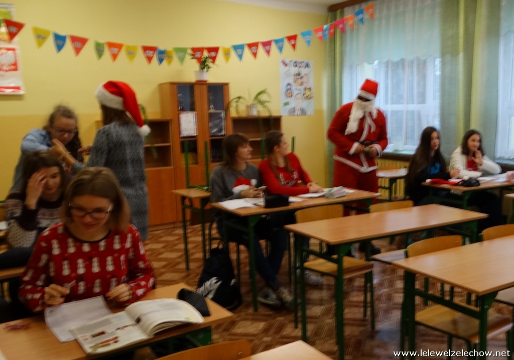Samorząd Uczniowski z okazji Mikołajek przygotował moc atrakcji. Był oczywiście Mikołaj, który ,,grzecznym dzieciom” rozdawał cukierki a nauczycieli obdarowywał piernikowymi choinkami przygotowanymi przez Angelikę, Weronikę i Gabrysię.