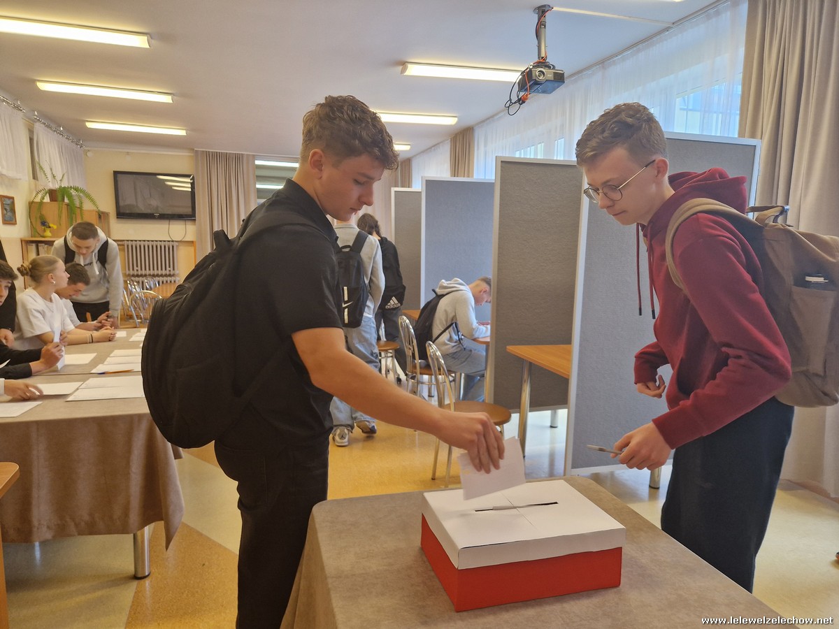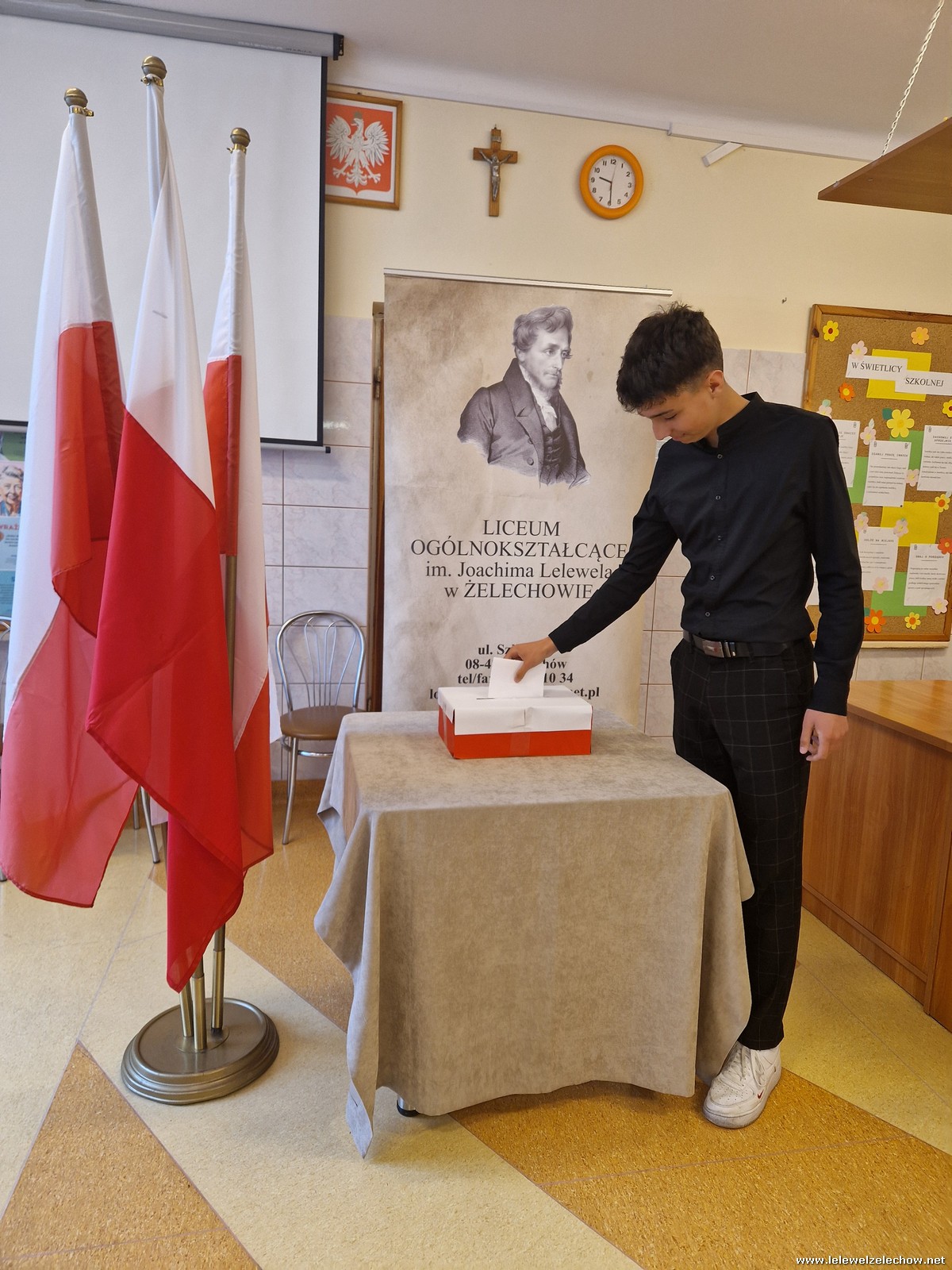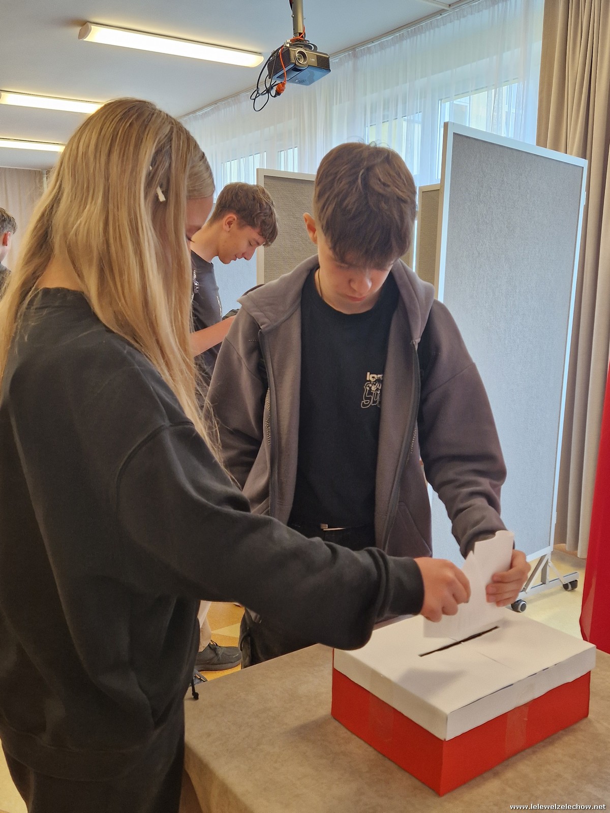 Szkolne wybory przygotowali i przeprowadzili uczniowie klasy 2c, w ramach projektu z wos. Koordynatorem szkolnej akcji była pani Urszula Kobielus.