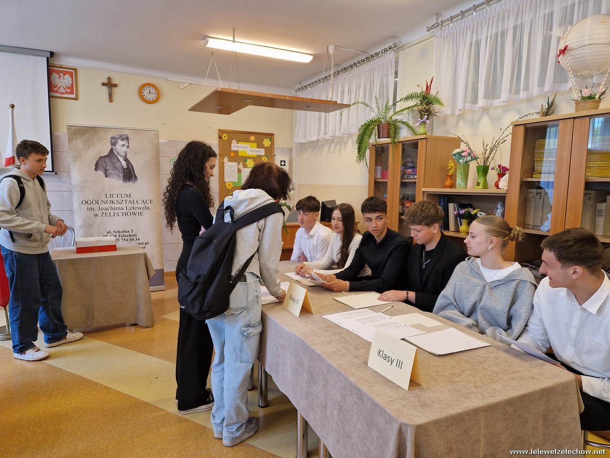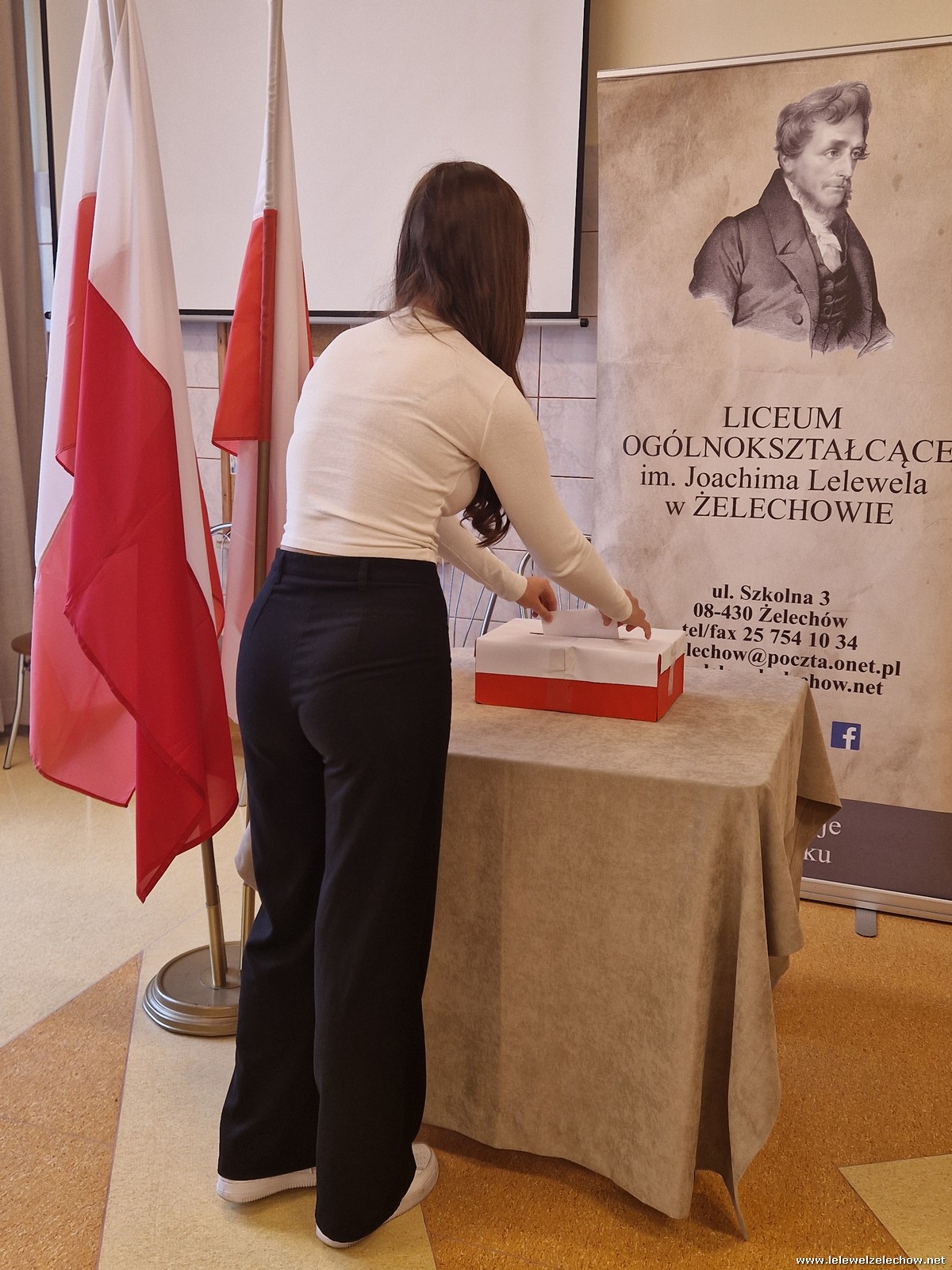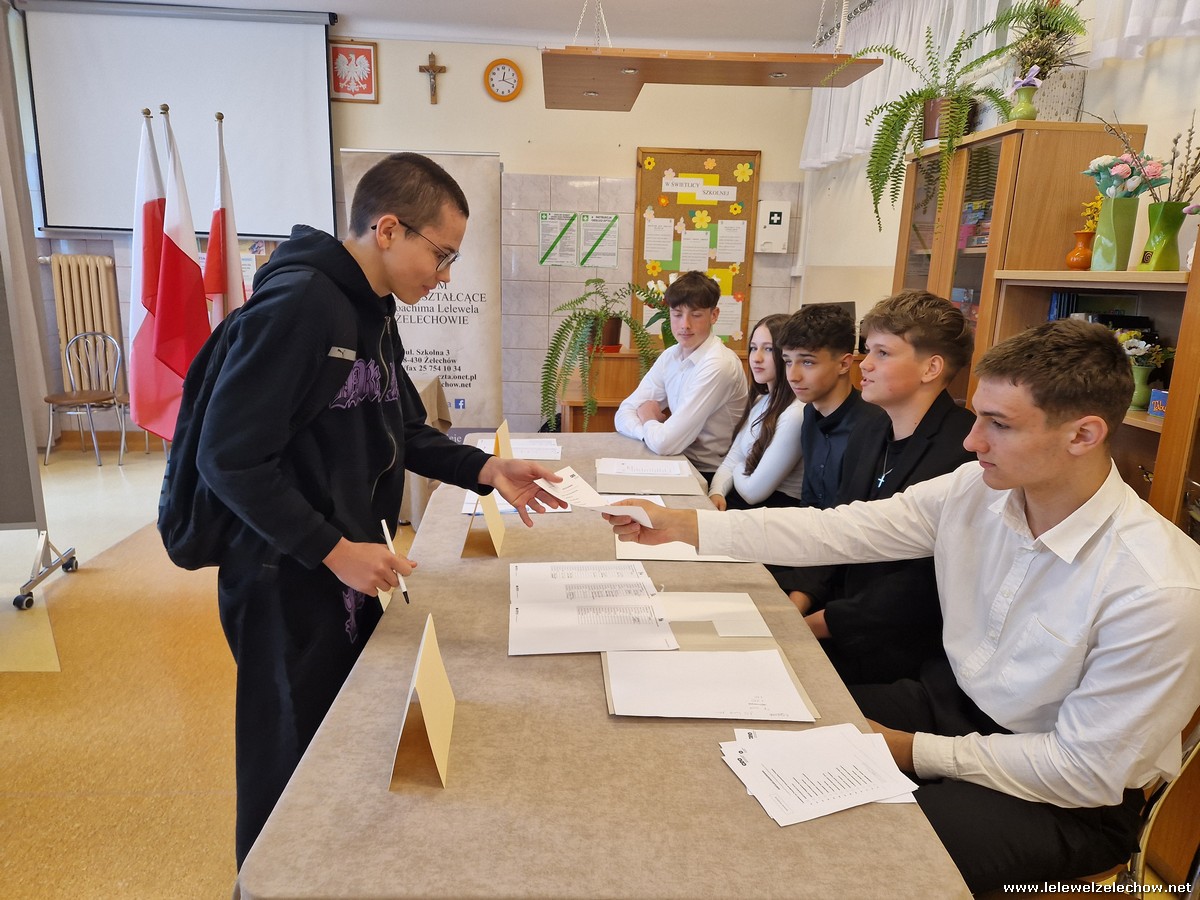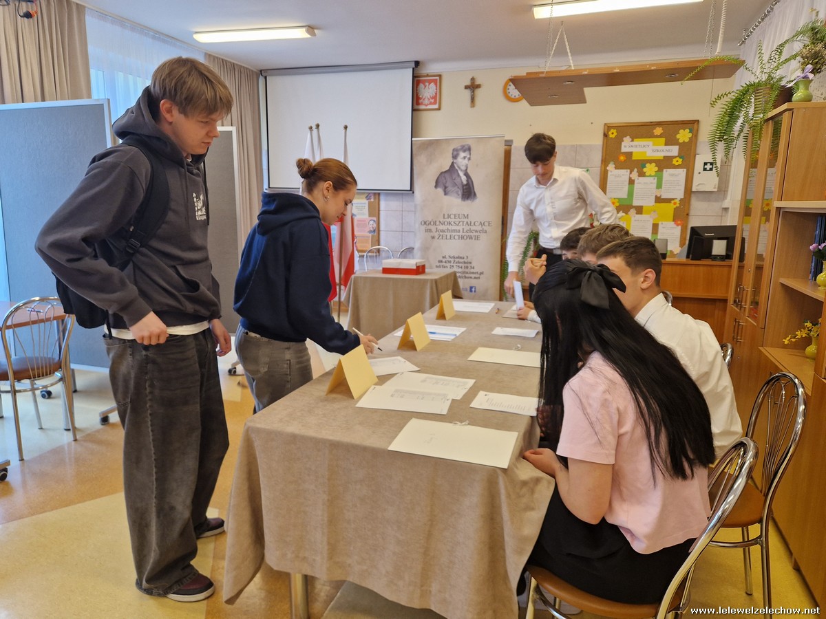 Szkolne wybory przygotowali i przeprowadzili uczniowie klasy 2c, w ramach projektu z wos. Koordynatorem szkolnej akcji była pani Urszula Kobielus.