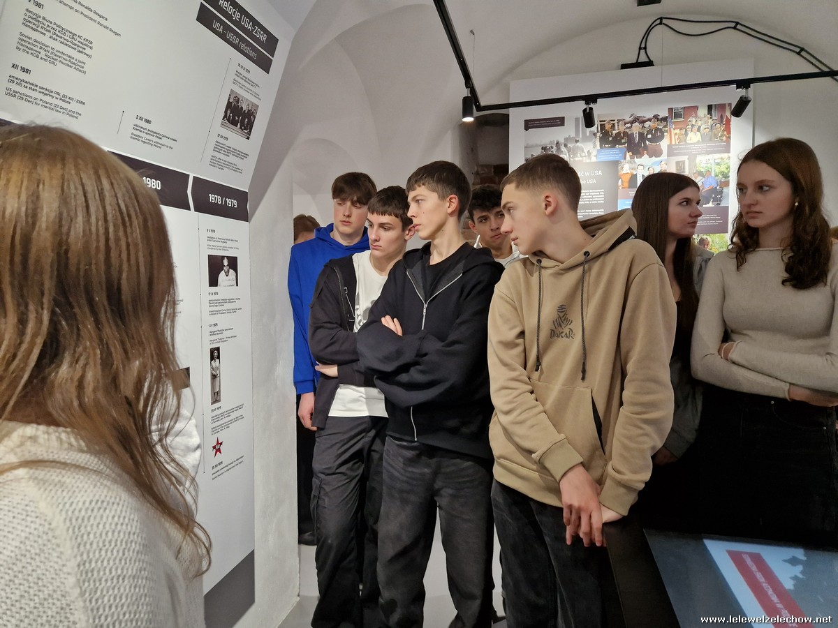Klasa 2c w ramach swojego wyjazdu do Warszawy odwiedziła Muzeum Zimnej Wojny im. Generała Ryszarda Kuklińskiego. Muzeum jest zlokalizowane na Starym Mieście przy ul. Jezuickie 1. To tu w okresie PRL znajdował się posterunek milicji, w którym pobito śmiertelnie maturzystę Grzegorza Przemyka. Muzeum Zimnej Wojny to jedyne takie muzeum, które pokazuje rywalizację dwóch bloków w okresie zimnej wojny z polskiej perspektywy. Niezwykle ciekawy przekaz przewodnika i aktywizowanie młodzieży podczas zwiedzania, dawało pełne zaangażowanie uczniów podczas tej lekcji muzealnej. Ciekawe zbiory, ważne przesłanie i nowoczesna forma prezentacji zbiorów uczyniła wizytę w tym muzeum niezwykle wartościową. Polecamy!