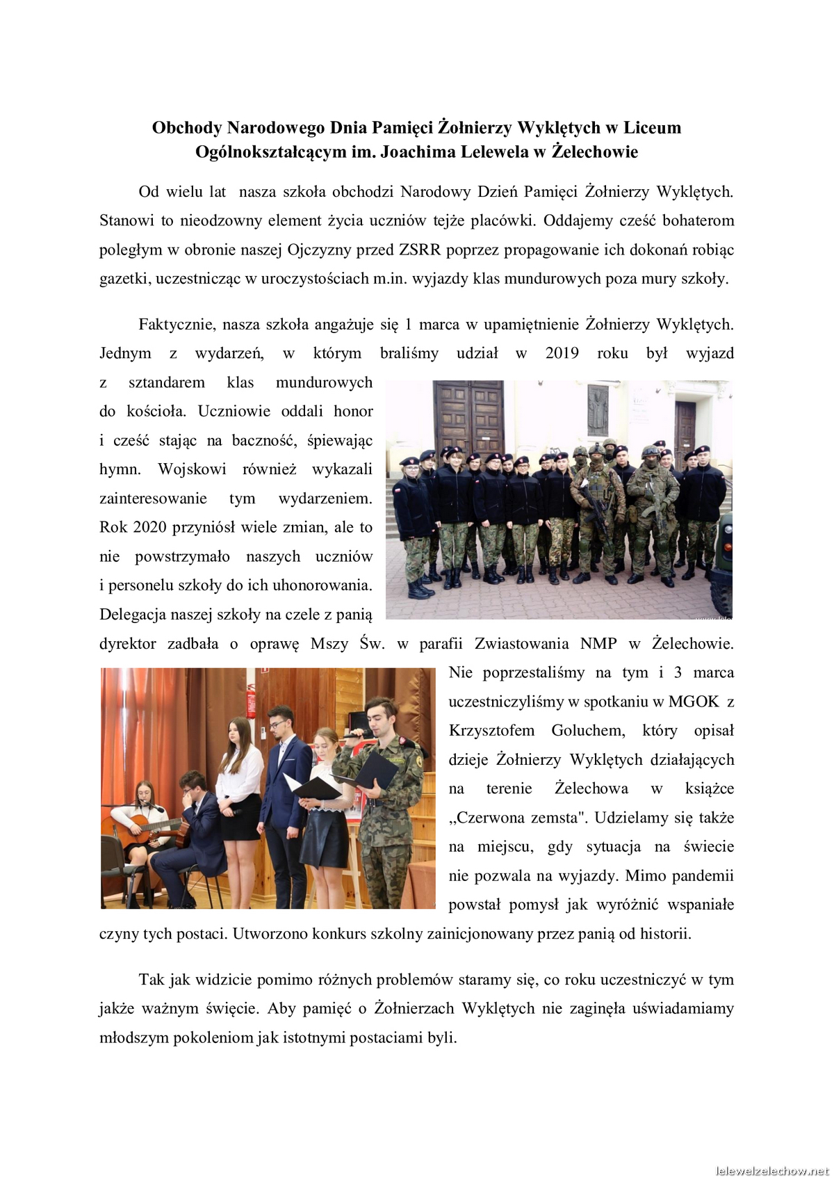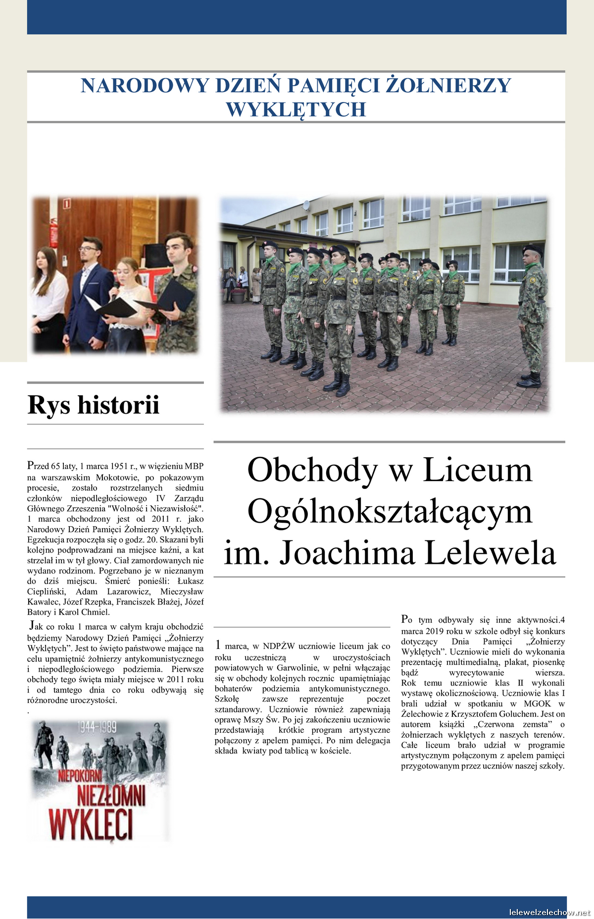 Wszystkie działania związane z upamiętnieniem Żołnierzy Wyklętych można zobaczyć na szkolnym facebooku: @samorzadlelewel