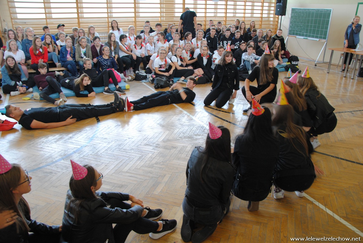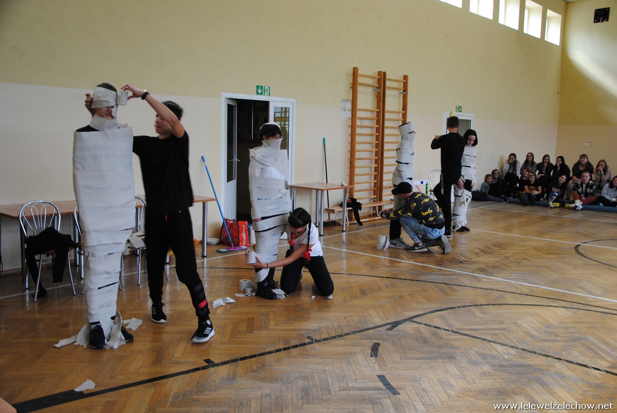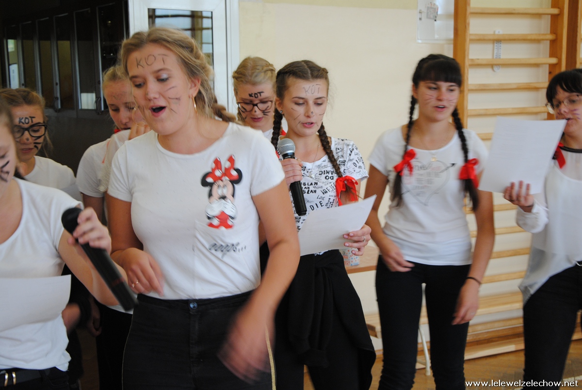 Aby umilić uczniom klas pierwszych pobyt w nowej szkole drugoklasiści zorganizowali otrzęsiny, do których tzw. kotki musiały się przygotowywać kilka dni. Zadania narzucone przez starszych kolegów wymagały nieco odwagi, ale nie były trudne. Kto się jednak nie podporządkował, musiał za karę zjeść posiłek – niespodziankę, który mógł smakować tylko osobom o specyficznym smaku Na szczęście wszyscy przeżyli i mogli wziąć udział w finale otrzęsin. Z tej to okazji kreatywni drugoklasiści przygotowali pierwszakom aż 10 konkurencji, w których młodsi koledzy musieli się wykazać kreatywnością, zwinnością, wiedzą, umiejętnościami muzycznymi i tanecznymi. Rywalizacja miedzy klasami była bardzo wyrównana. Przez dwie godziny konkursowych zmagań kotki starały się sprostać wymaganiom i zadaniom. Wszystko po to, aby zostać przyjętym do społeczności Lelewela. Złożona przez pierwszoklasistów przysięga ostatecznie to potwierdziła.