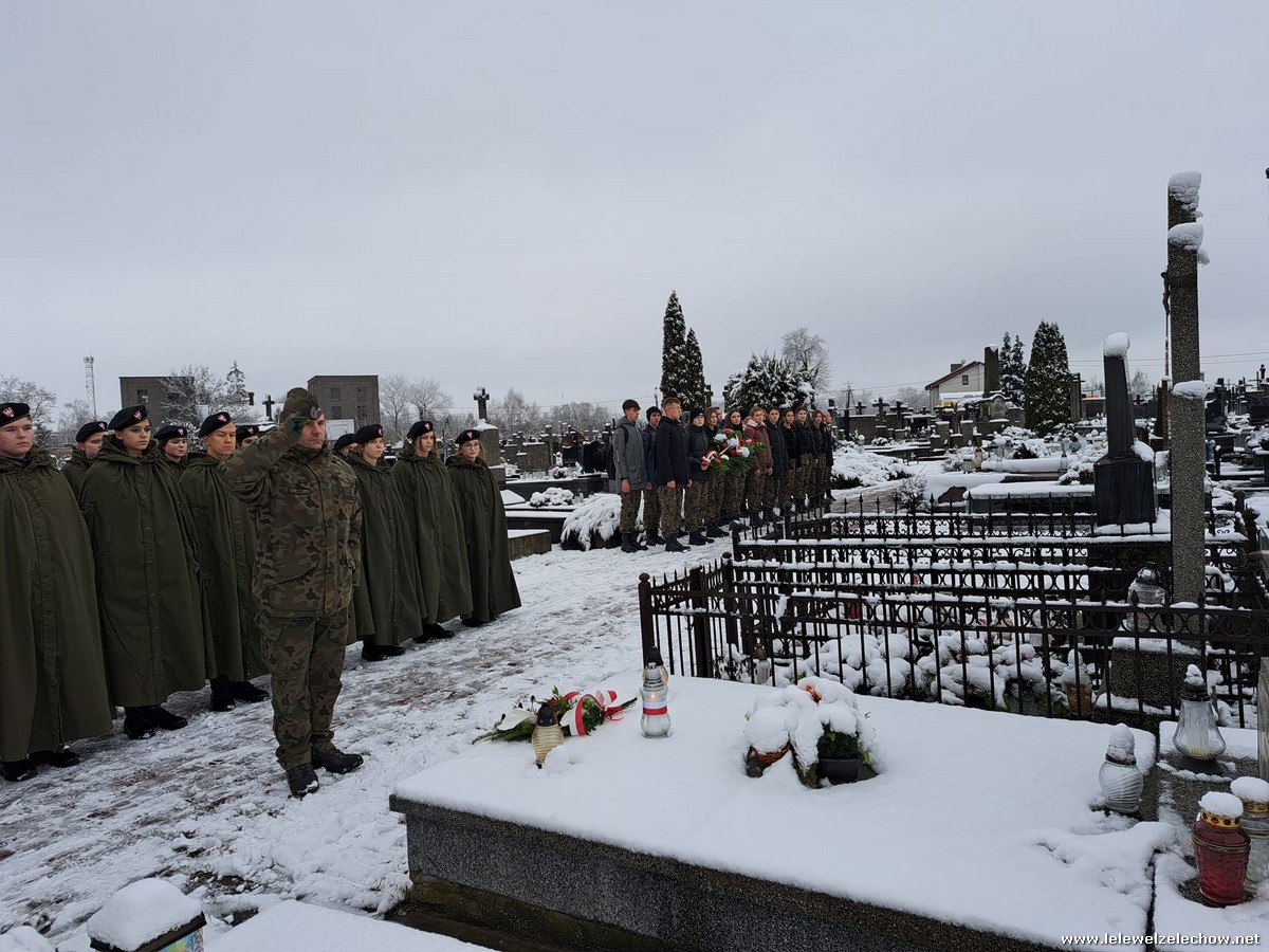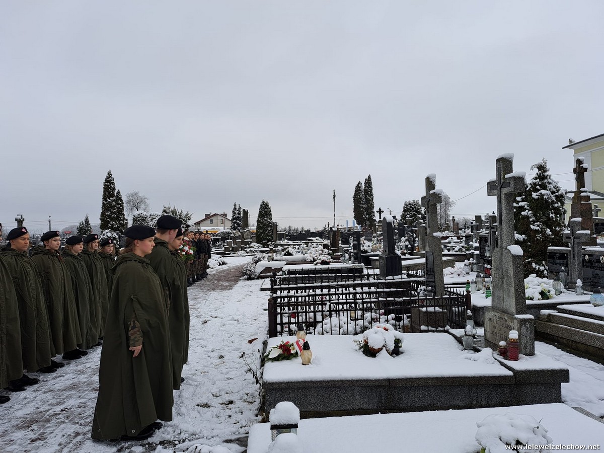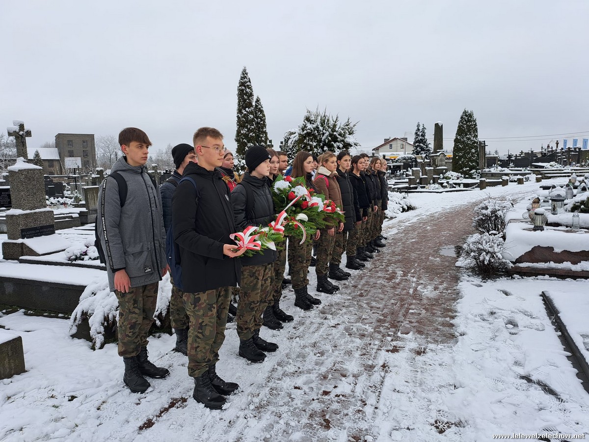 W zimowej scenerii nasi mundurowi z klas I oddali cześć powstańcom styczniowym. Kadeci złożyli kwiaty i zapalili znicze na grobach osób związanych z wydarzeniami roku 1863 ziemi żelechowskiej. Na cmentarzu odczytano również Apel pamięci. Następnie pod pomnikiem Romualda Traugutta uczniowie wraz z opiekunami złożyli kwiaty.