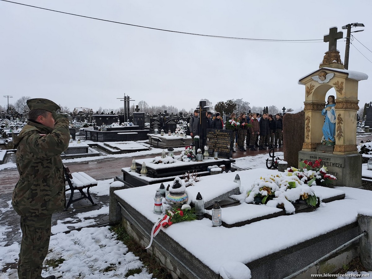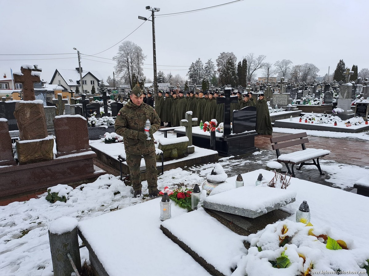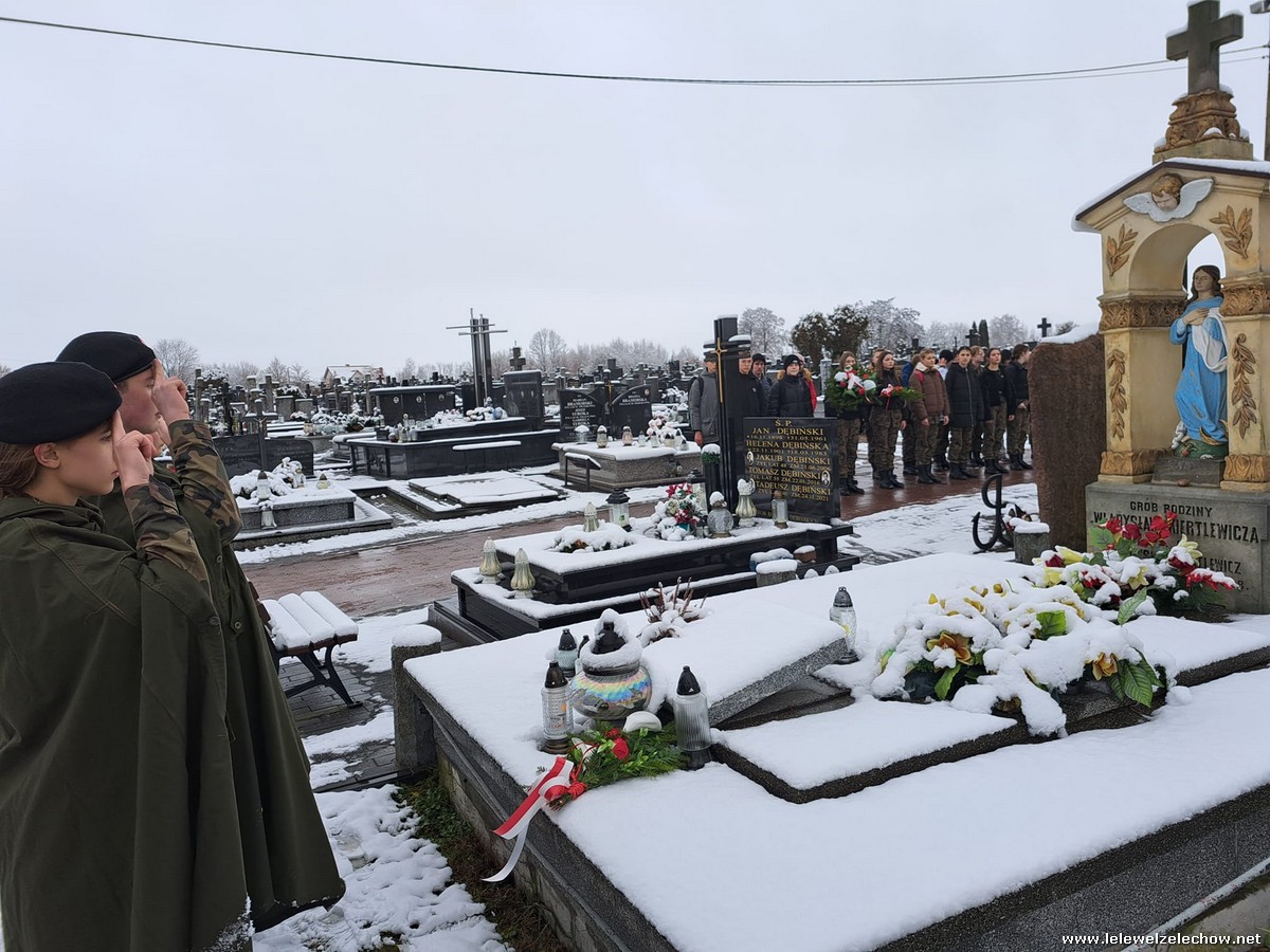 W zimowej scenerii nasi mundurowi z klas I oddali cześć powstańcom styczniowym. Kadeci złożyli kwiaty i zapalili znicze na grobach osób związanych z wydarzeniami roku 1863 ziemi żelechowskiej. Na cmentarzu odczytano również Apel pamięci. Następnie pod pomnikiem Romualda Traugutta uczniowie wraz z opiekunami złożyli kwiaty.