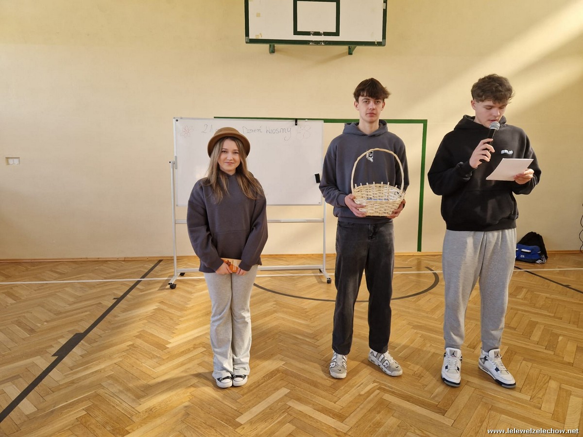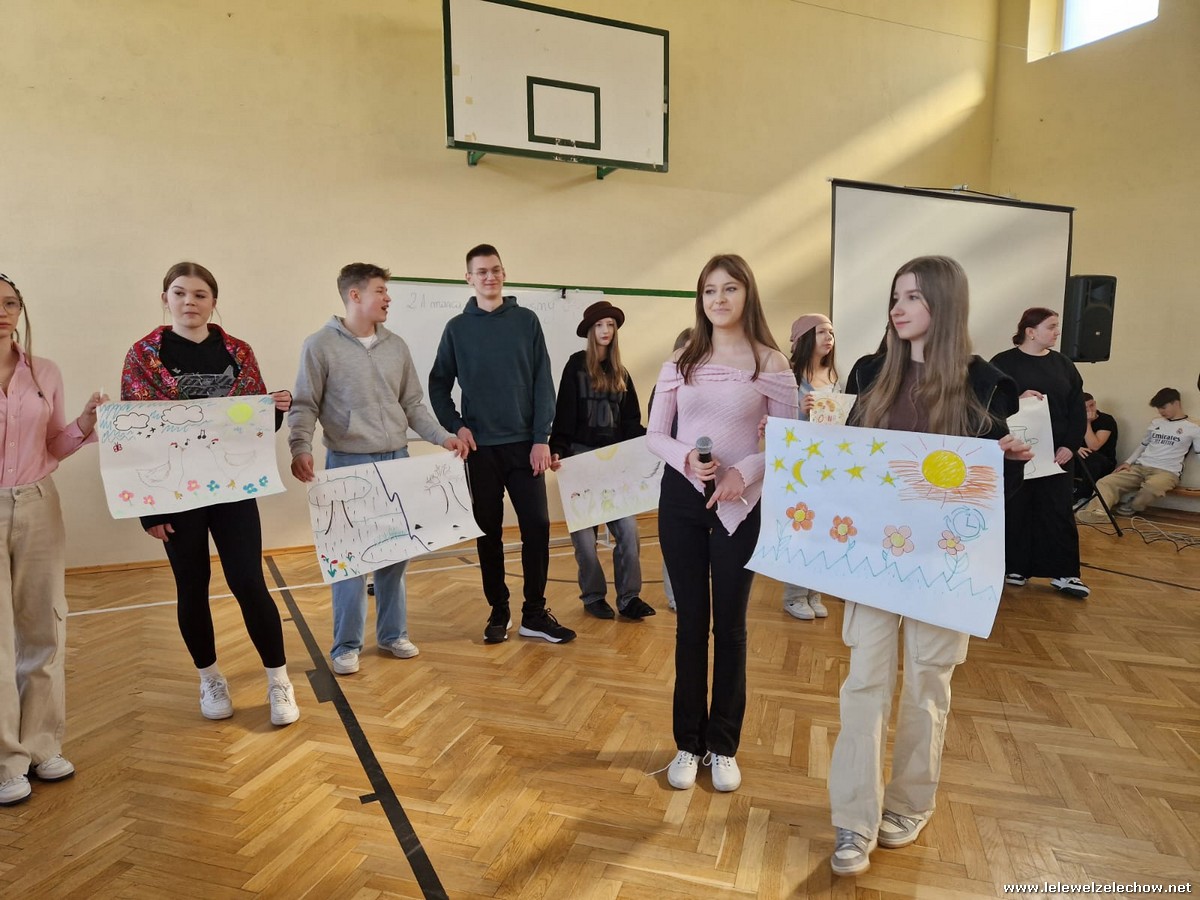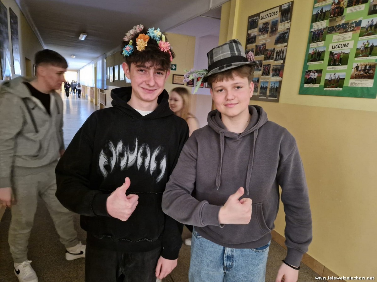 Samorząd Uczniowski jak co roku zaprosił licealistów do wspólnej zabawy. Było rysowanie przysłów o wiośnie, tworzenie wiosennych fryzur, wykonanie Marzanny oraz klasowy Kahoot z wiedzy o szkole W poszczególnych kategoriach zwyciężyli: najładniejsza fryzura -2c, najciekawiej zaprezentowane przysłowie-2a, najatrakcyjniejsza Marzanna - 2b, Kahoot - 3c. Dodatkowo wszystkie klasy wylosowały określone nakrycie głowy, najlepiej z tego zadania wywiązała się klasa 3a