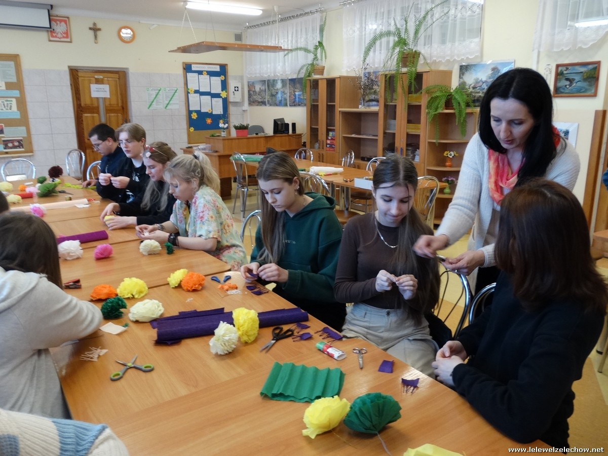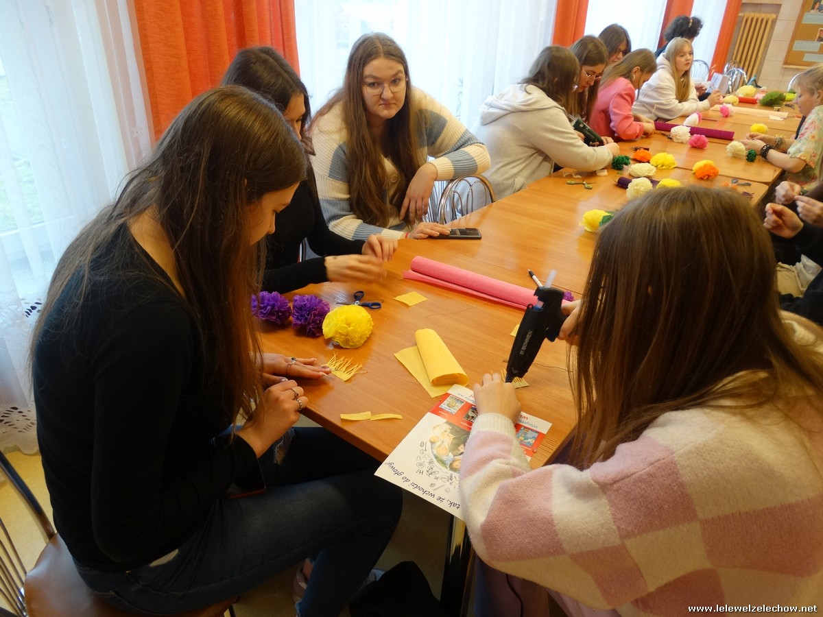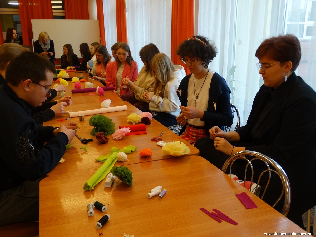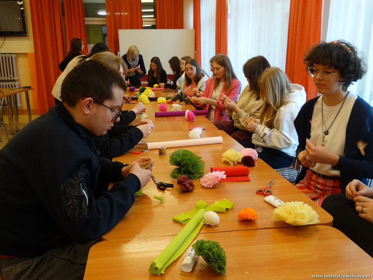 Pierwszy Dzień Wiosny w naszej szkole to także nietypowe zajęcia. Nauczyciele oraz uczniowie organizowali różne aktywności, odmienne od tych realizowanych na codzień w ramach standardowych lekcji. W świetlicy szkolnej odbywały się warsztaty bibułkarskie. Uczniowie tworzyli piękne wiosenne kwiaty i palmy. Część osób skusiła się na warsztaty malarskie, które poprowadziła uczennica klasy 3b - Amelia. Na zajęciach z historii uczniowie klasy 1a przypisywali własne teksty znanym z dziejów najnowszych postaciom a uczennice klasy 2b tworzyły pierwsze strony ,,brukowej” prasy poświęcone bohaterom nowożytności. W szkole i na terenie przyszkolnym odbywały się bardzo emocjonujące podchody, które zorganizowała i przeprowadziła dla pozostałych uczniów klasa 1a. Zwieńczeniem Dnia Wiosny były rozgrywki w piłkę nożną chłopców na boisku “Orlik”.